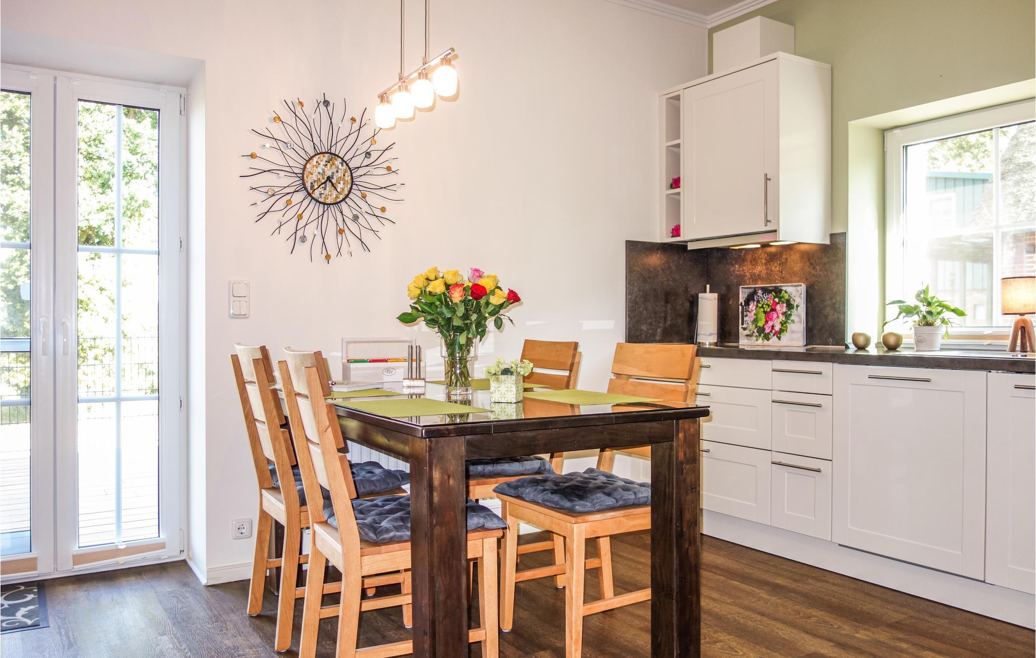 Dette feriehus ligger i Krautsand nær Drochtersen, i grønne omgivelser, kun 2 km fra floden Elben. De lyse og nænsomt indrettede værelser bringer ny energi og gør et hjemligt indtryk. Nyd godt af det flotte badeværelse med gulvvarme og wellnessafdeling. Huset er fuldt udstyret og er ideel til et par og et barn op til 2 år. Fra stuen kommer I ud på den åbne terrasse med havemøbler til afslappende timer udendørs. Når vejret er godt, kan I nyde dagens første kaffe i solen og afslutte dagen her med udsigt til omgivelserne.