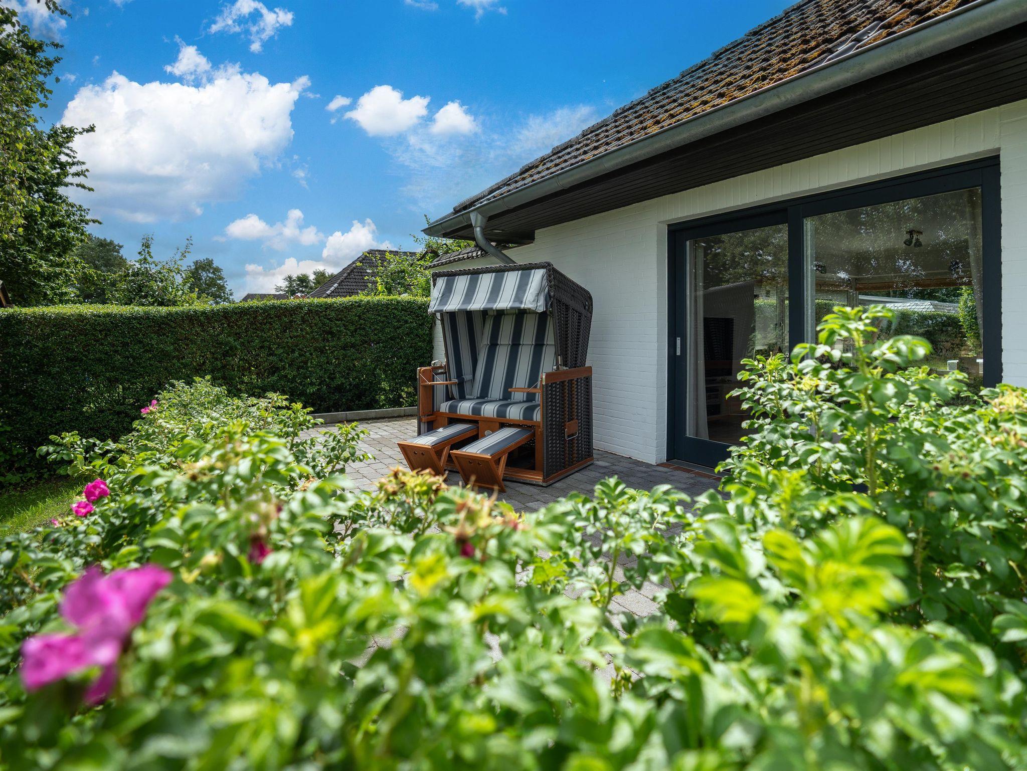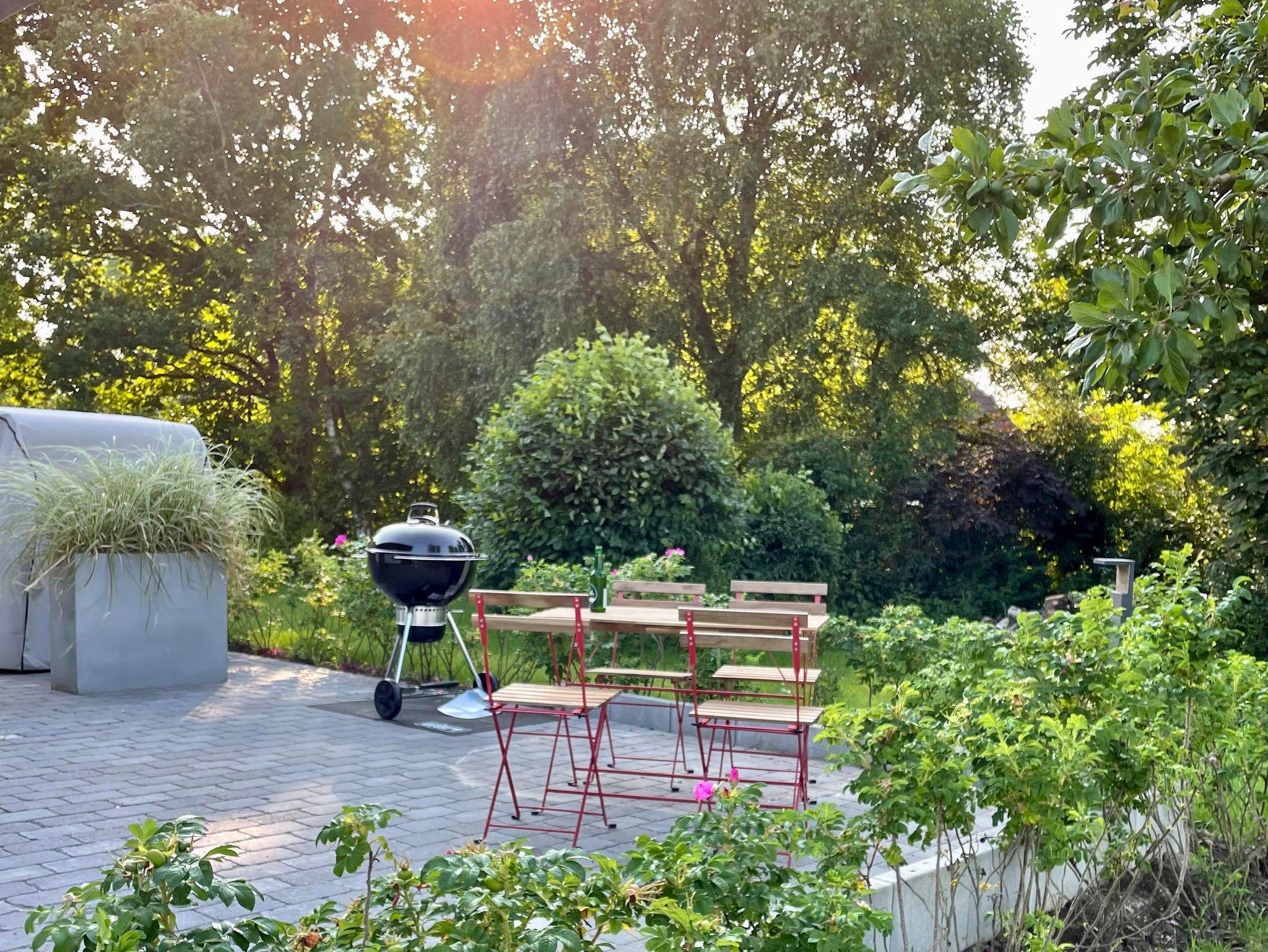 Der Garten mit der ca. 1900qm großen Fläche und einer zur Wohnung gehörenden Terasse und Strandkorb mit Gemeinschafts-Gartengrill stehen zum Sonnen und Entspannen zur Verfügung.