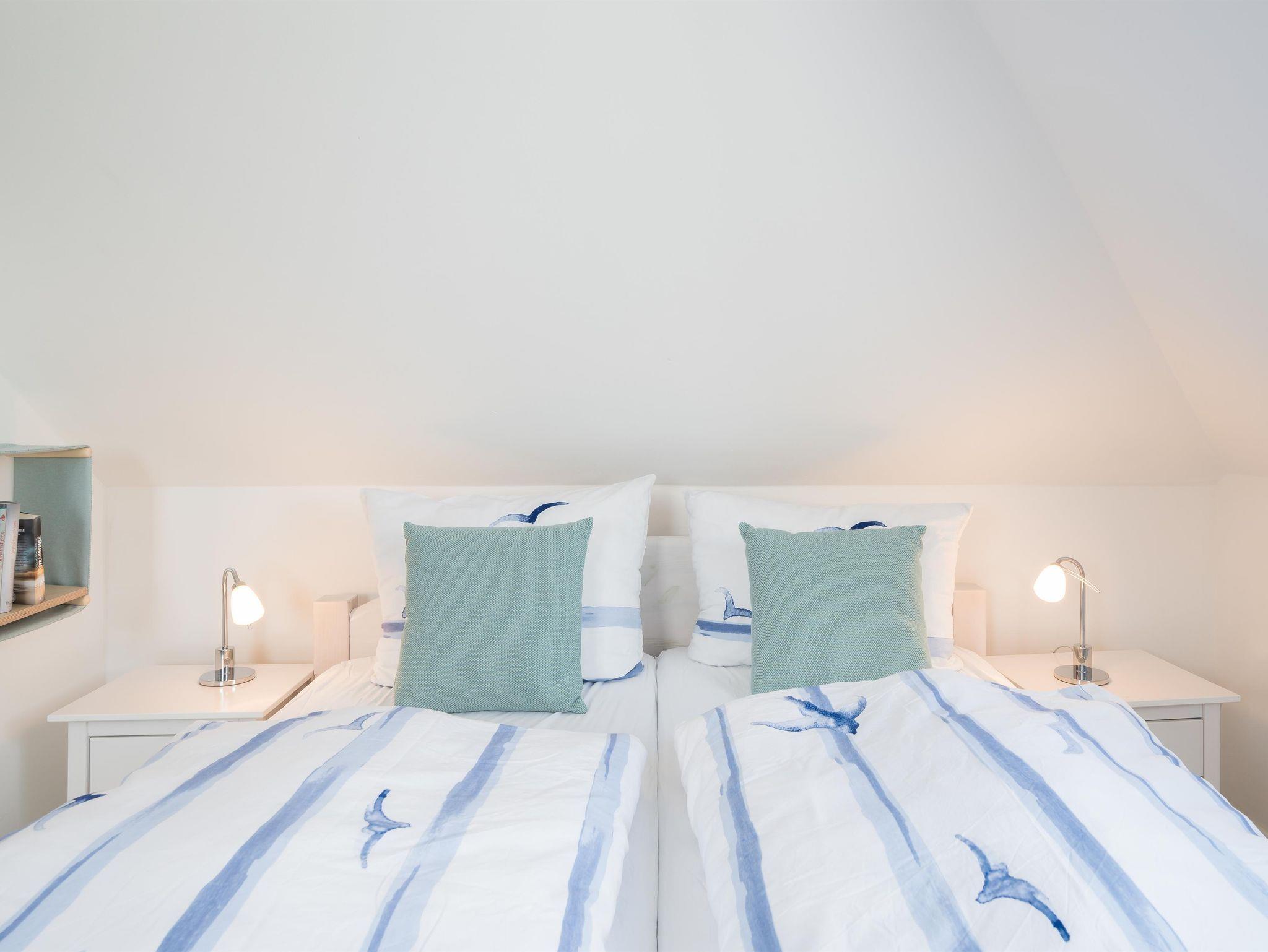 Davon ein Schlafzimmer mit Doppelbett und ein Schlafzimmer mit zwei Einzelbetten. Das Badezimmer mit integriertem Radio hat eine Dusche mit Falttüren, Toilette und Einzelwaschbecken. Eine offene, im amerikanischen Stil hergerichtete Küche mit Geschirrspüler, flüsterleisem Kühlschrank, Mikrowelle und Frühstücktresen lädt zum entspannten Start in den Tag oder auch zum Abendessen zaubern daheim ein.