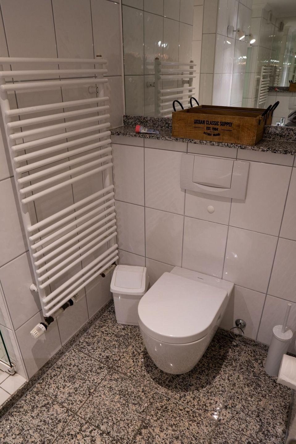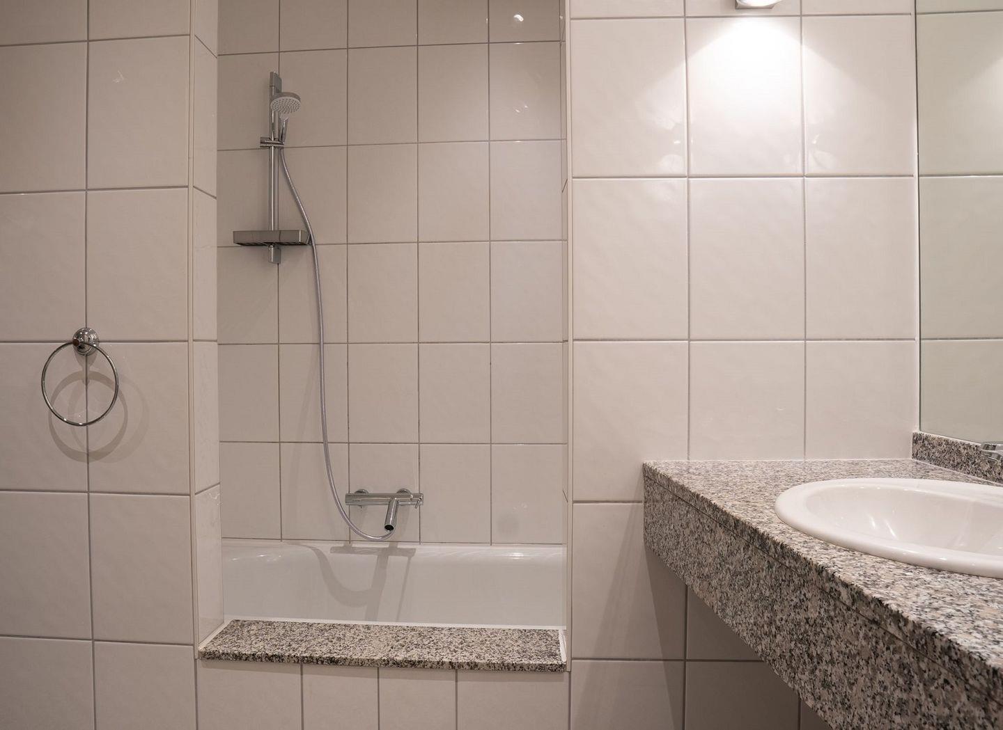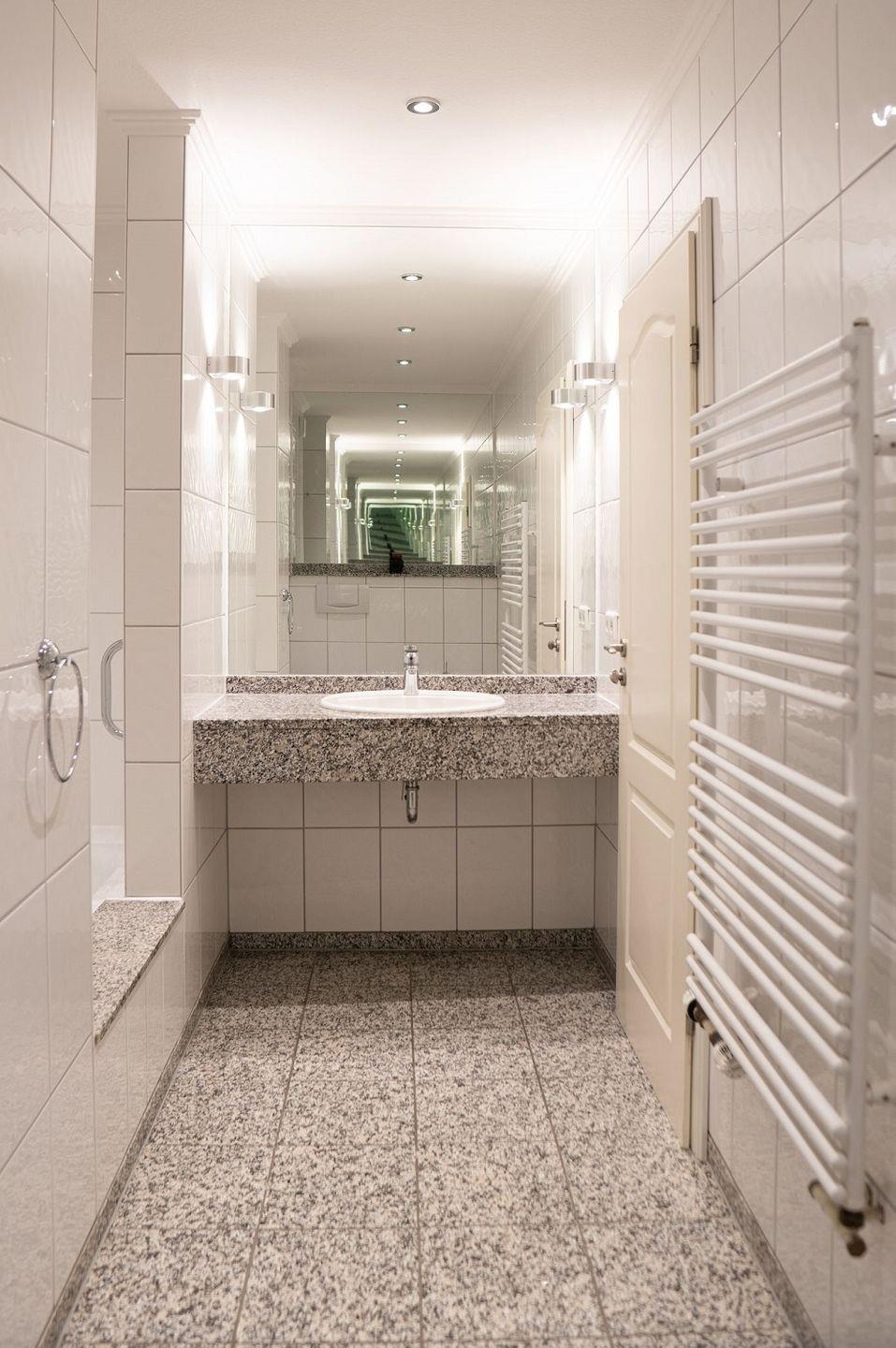Das zweite Badezimmer befindet sich im Erdgeschoss und hat eine geräumige Dusche.
