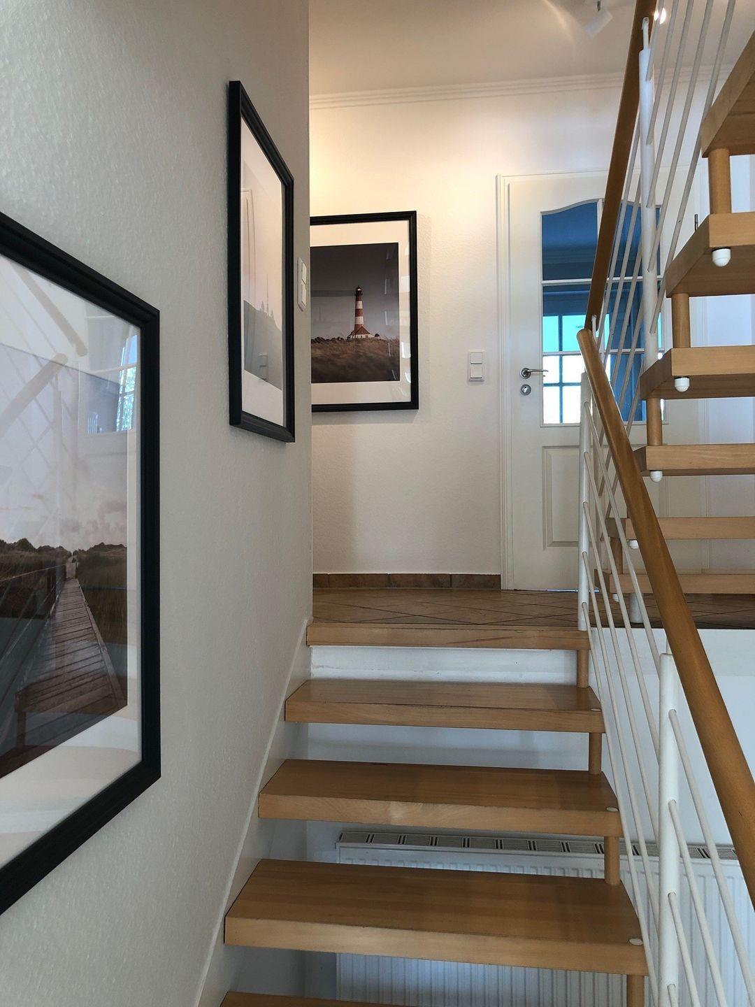 Das Reetdachhaus ist im Stil eines landestypischen Haubarges errichtet worden und liegt zurückgesetzt direkt in Welt. Das Haus selber ist in 4 individuelle Reihenhäuser unterteilt, die auf der Rückseite einen individuellen Gartenteil besitzen; vor dem Haus befindet sich eine große Rasenfläche, die von allen Häusern gemeinsam genutzt werden kann. Ein Stellplatz ist selbstverständlich auch vorhanden. Im Parterre befinden sich die Küche mit Essbereich und Wohnbereich mit Kamin. In der 1. und 2. Etage liegen die Schlaf- und Badezimmer.