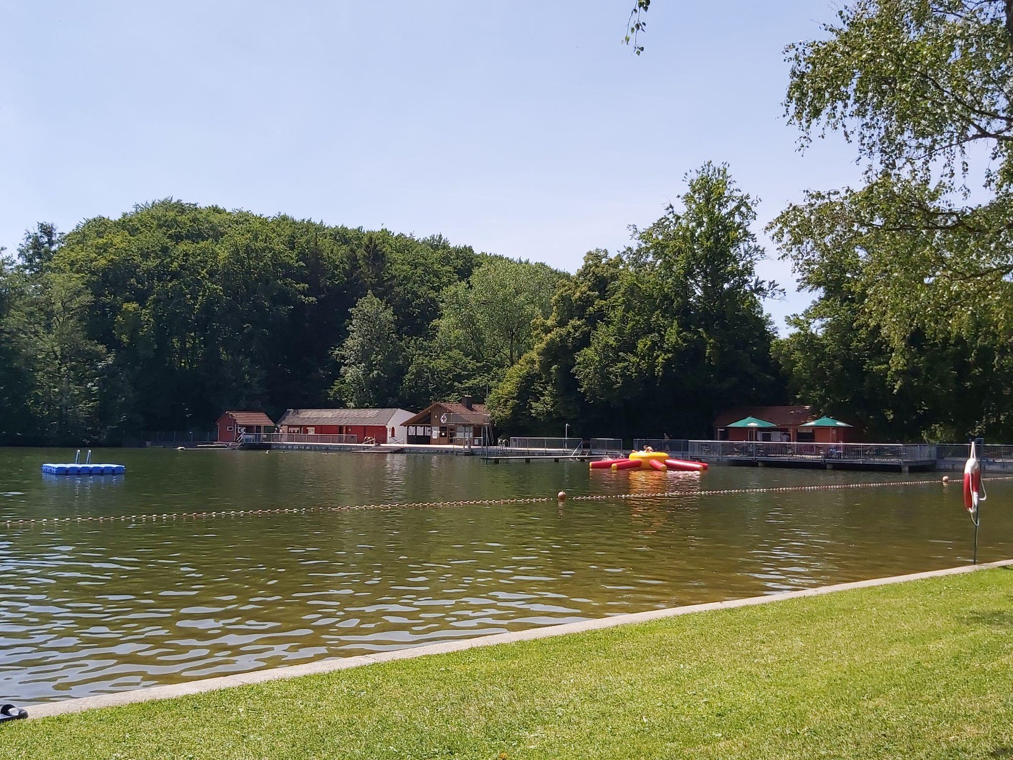 Resort "Campingpark Wemding". 50 houses in the resort. Outside the resort, 2 km from the centre of Wemding, 50 m from the lake. For shared use: slide, outdoor shower, beach volleyball, children's playground, bathing place. In the complex: WiFi, kiosk. 400 m long motor access to the house. Central parking spaces. Supermarket 2 km, restaurant 2 km, bus stop "Johannisgraben-Wemding" 2.2 km, railway station "Nördlingen" 20 km, thermal baths "Treuchtlingen" 21 km. Tennis 1 km, minigolf 50 m, riding stable 1 km, ice rink 500 m. Nearby attractions: Nördlingen / Rieskrater-Museum 19 km, Dinkelsbühl 43 km, Legoland Günzburg 80 km, Playmobil-FunPark bei Nürnberg 100 km, Augsburg 70 km, München 130 km. Well-known lakes can easily be reached: Altmühlsee 35 km, Brombachsee 40 km. Please note: suitable for families. Residence with electric gates. Access to the house only possible between 7 am and 10 pm. Dogs are not allowed on the beach and sunbathing lawn. Kiosk only open from mid may to mid september.
