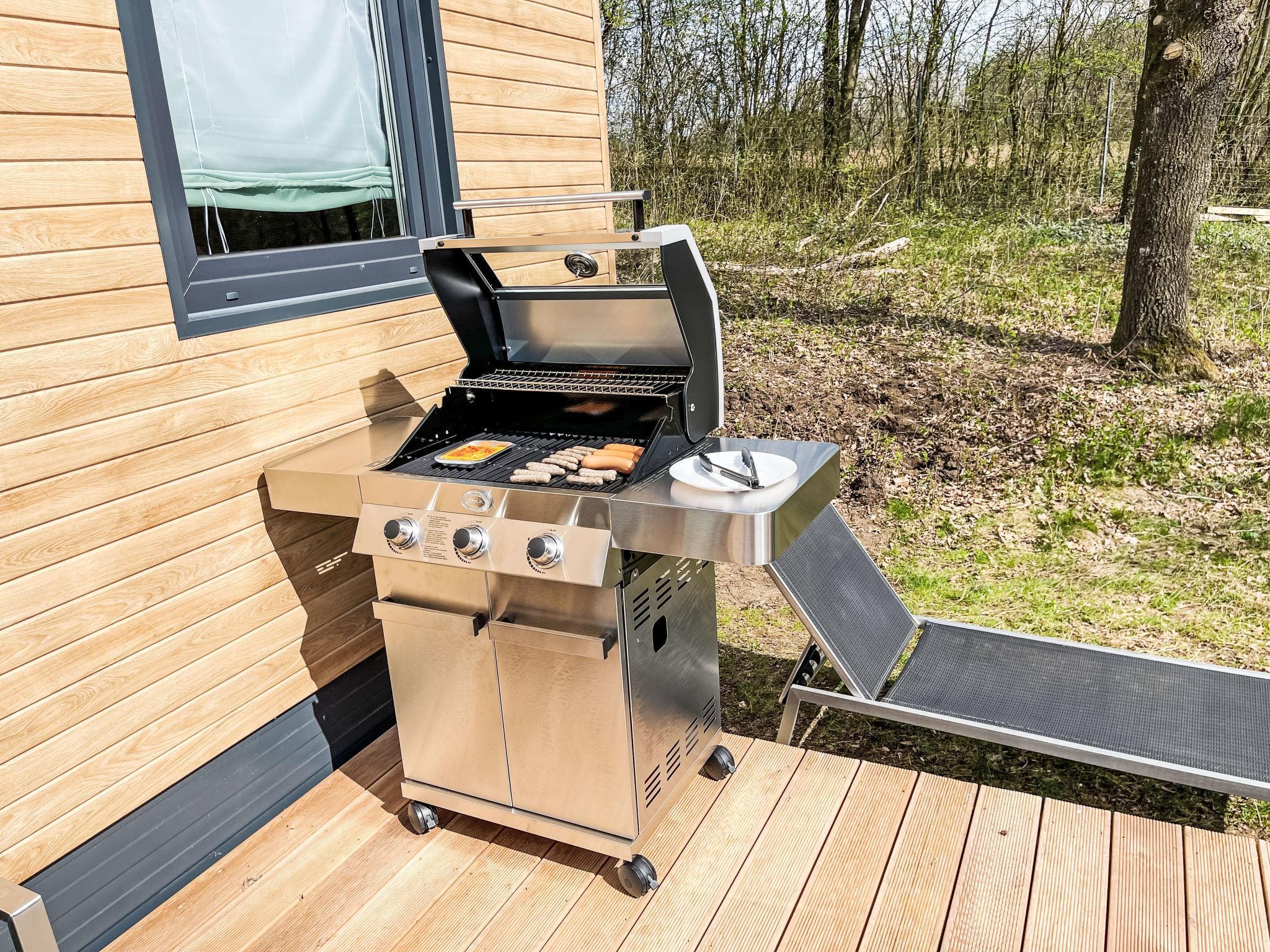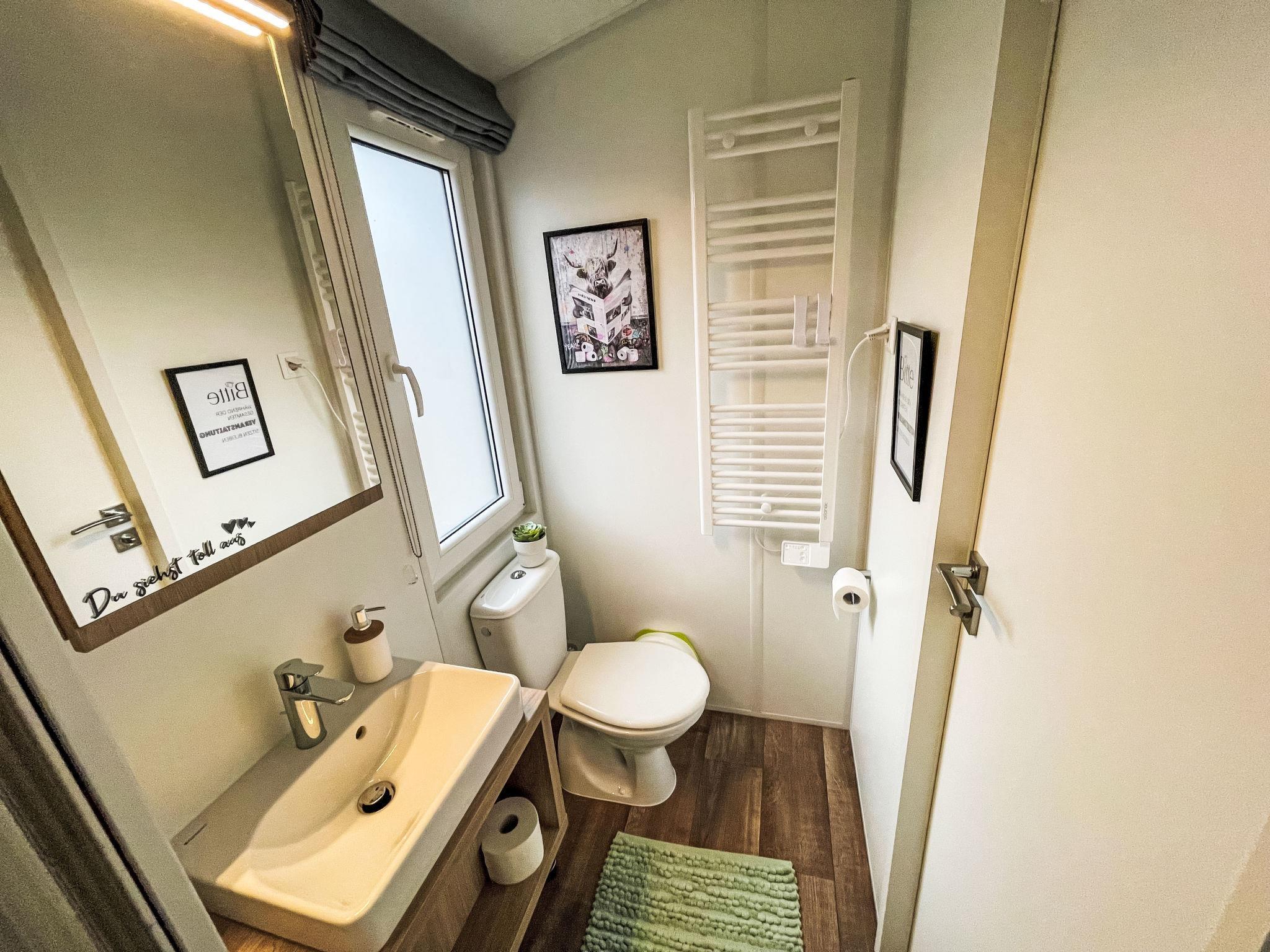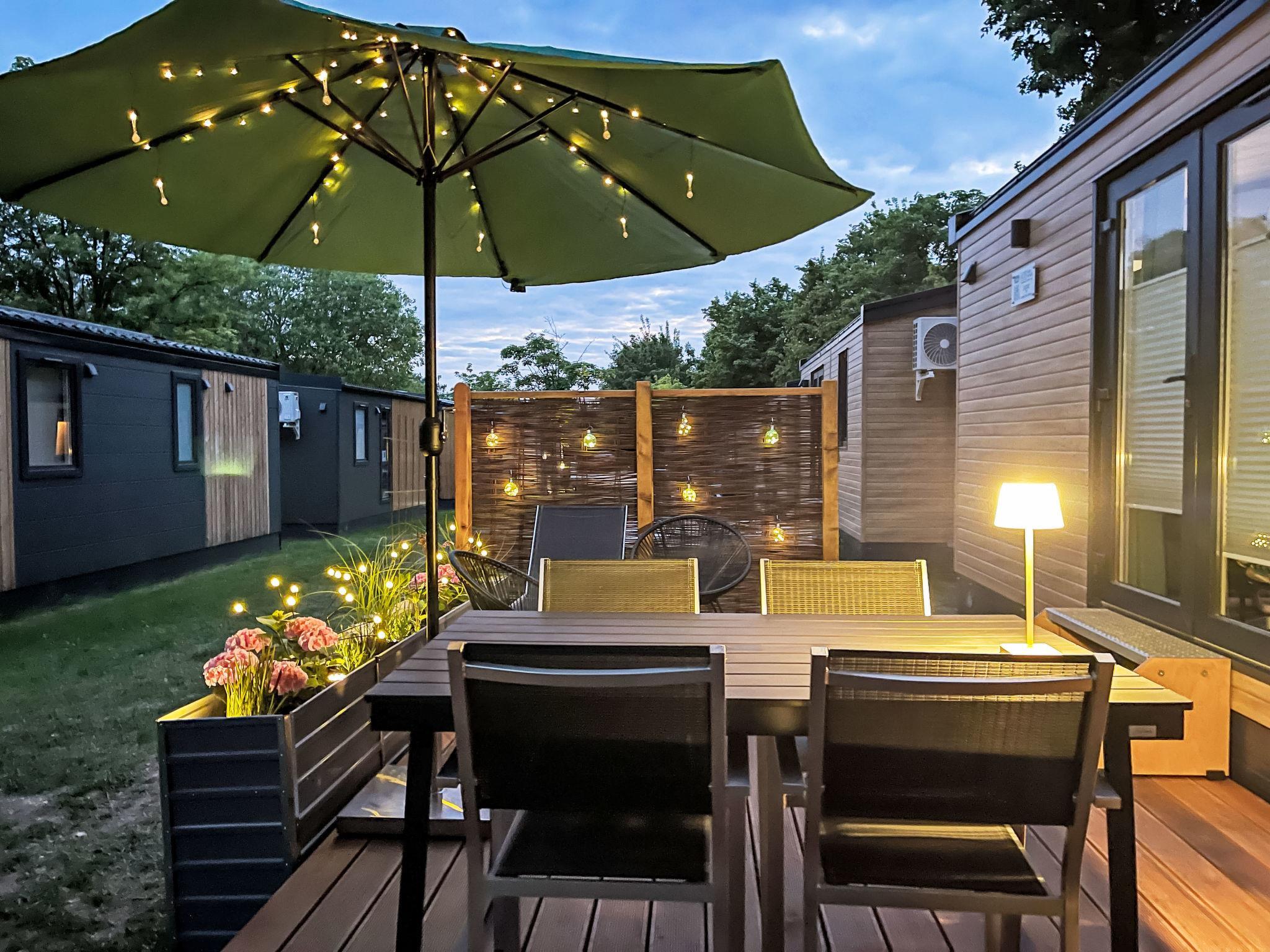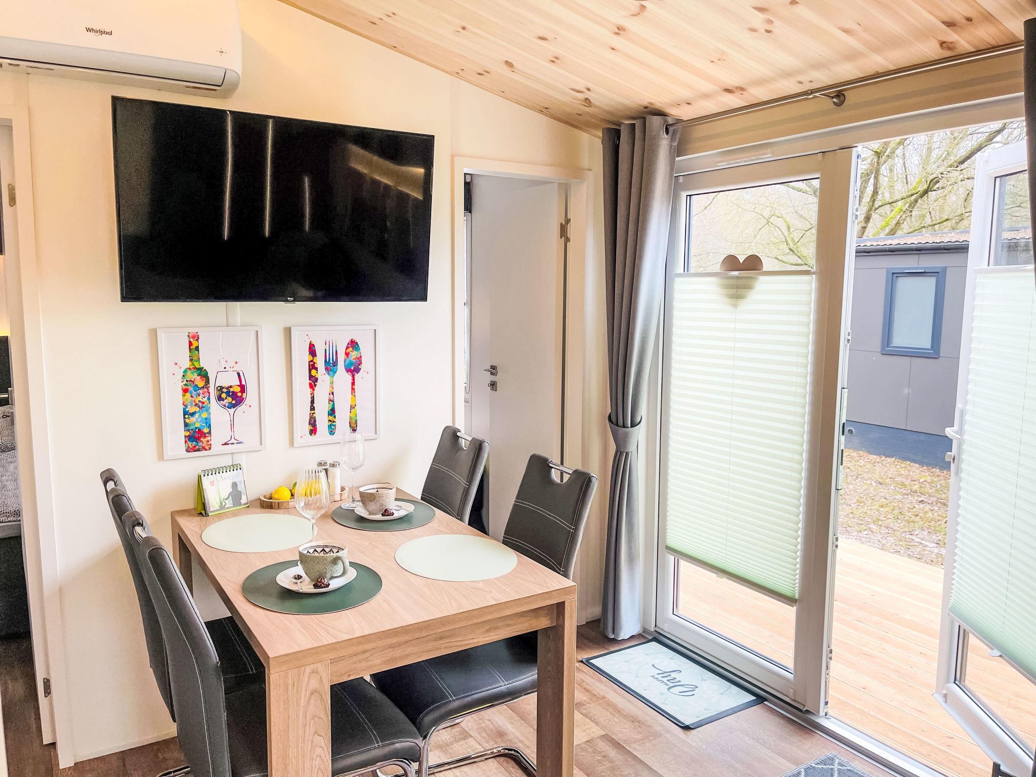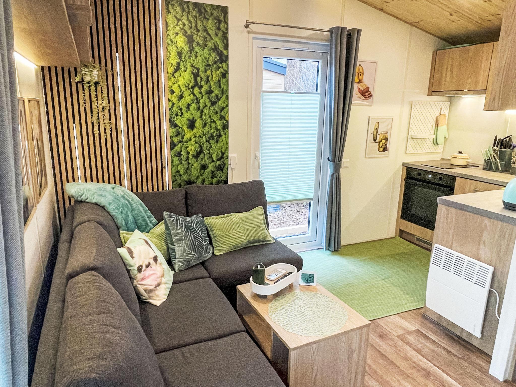 "Tiny Haus Tiny Moments", 3-room mobile home 31 m2. Cosy furnishings: living/dining room with 1 sofabed, dining table and satellite TV (flat screen). Exit to the terrace. 1 room with 1 double bed (160 cm, length 200 cm), satellite TV. 1 room with 2 beds (80 cm, length 200 cm), satellite TV. Kitchenette (oven, dishwasher, 2 induction hot plates, toaster, kettle, electric coffee machine). Shower/WC. Electric heating, air-conditioning. Terrace. Terrace furniture, barbecue (portable). Facilities: mosquito net. Please note: non-smokers only. Note: The Wi-Fi connection may be limited depending on capacity.