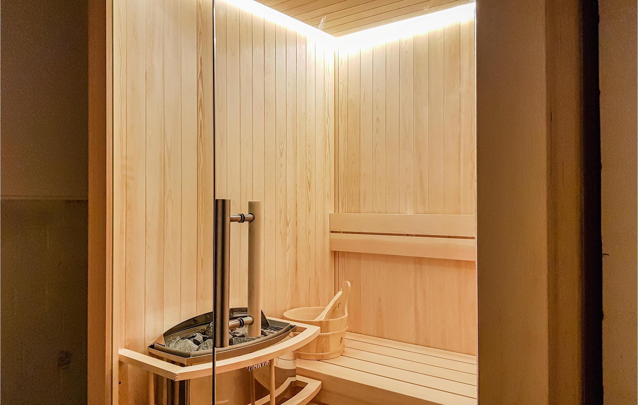 Dette feriehus tilbyder et åbent køkkenalrum med moderne udstyr, der leder ind i stuen og således sikrer at I kan nyde hinandens samvær mens der laves mad. En terrasse foran stuen giver mulighed for at slappe af og nyde den friske luft. De tre soveværelser tilbyder plads til fem personer. Der er også to badeværelser, hvoraf det ene er udstyret med et luksuriøst badekar, som inviterer dig til at komme helt ned i gear. Saunaen (benyttes mod betaling) sikrer afslapning og velvære selv på kolde dage.