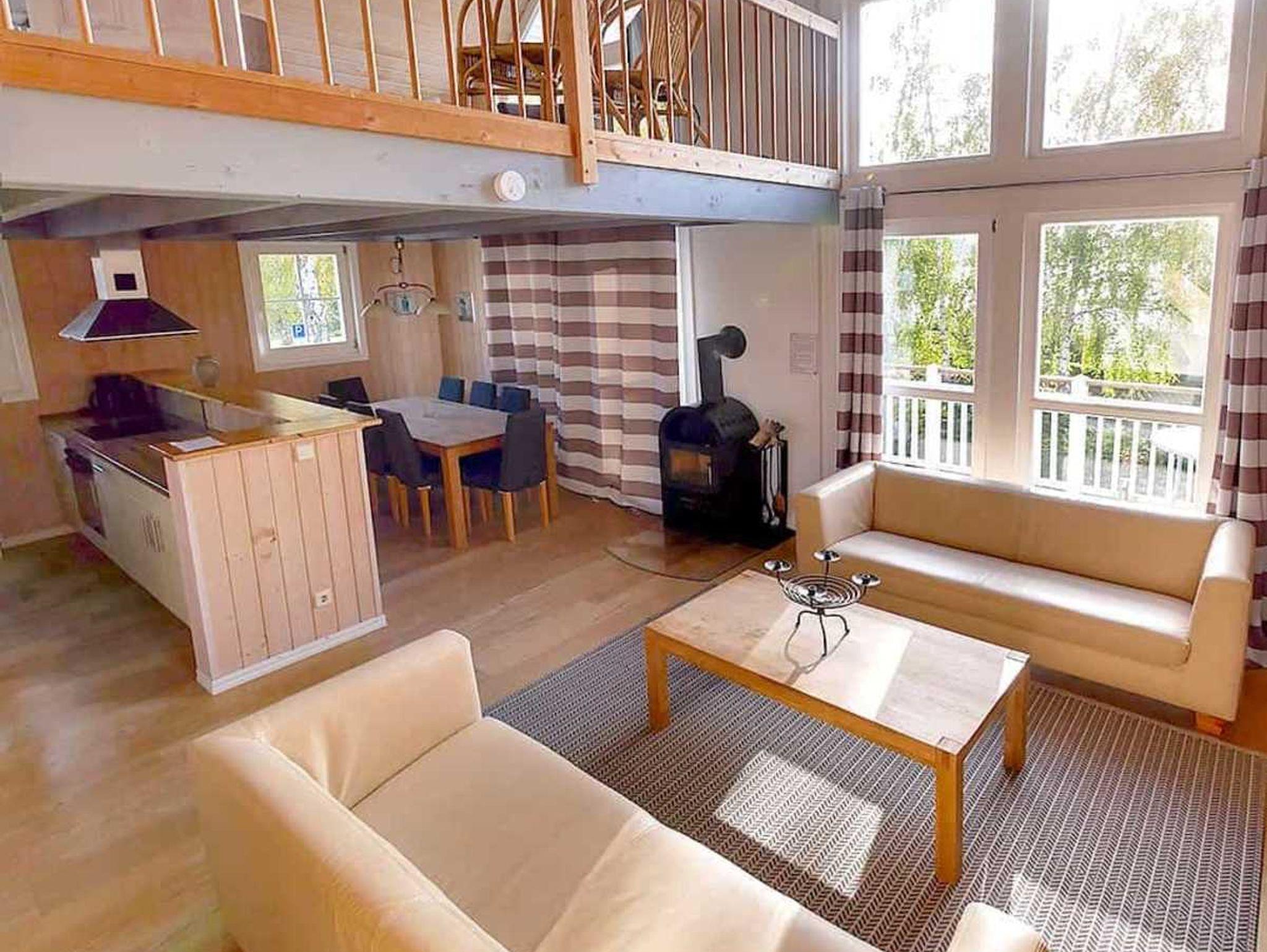 Die Apartment-Häuser bestehen aus jeweils 4 Einzel-Apartments. Unser Kapitän befindet sich in der oberen Etage auf zwei Ebenen. Man erreicht es über eine eigene Außentreppe. Auf 110 m² Wohnfläche mit 4 Schlafzimmern, Whirlpool und Sauna können es sich 8 Personen bequem machen. Von zwei Balkonen hat man einen schönen Blick auf den Hafen vorne oder den Scharmützelsee nach hinten. Ein großer Gemeinschaftsgarten lädt zum Spielen oder Grillen ein.