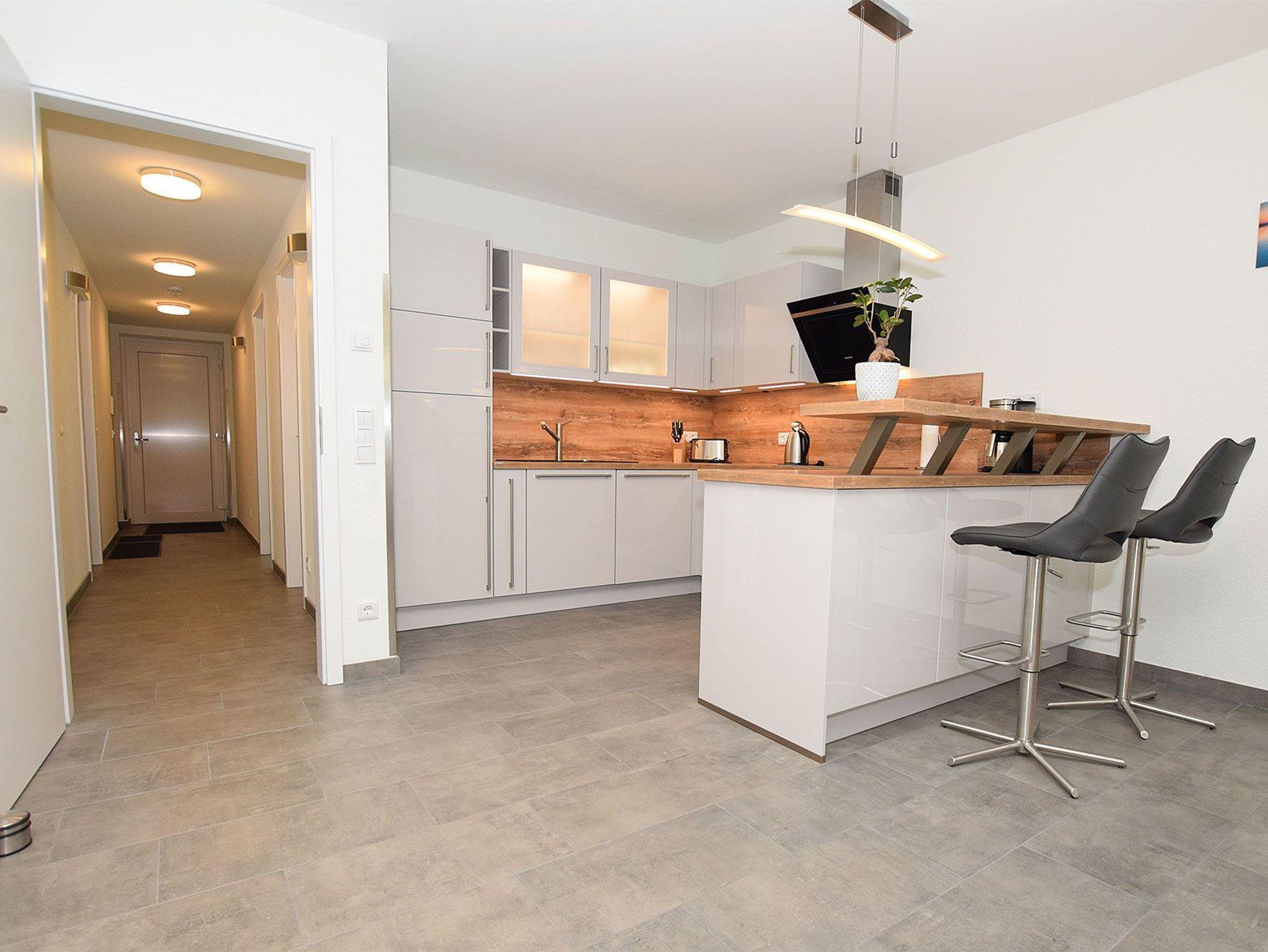 • Einbauküche mit Spülmaschine, Herd mit Backofen, Mikrowelle, Kühl-Gefrierkombination, Kaffeemaschine, Wasserkocher, Toaster, Geschirr und Gläser für 6 Gäste
