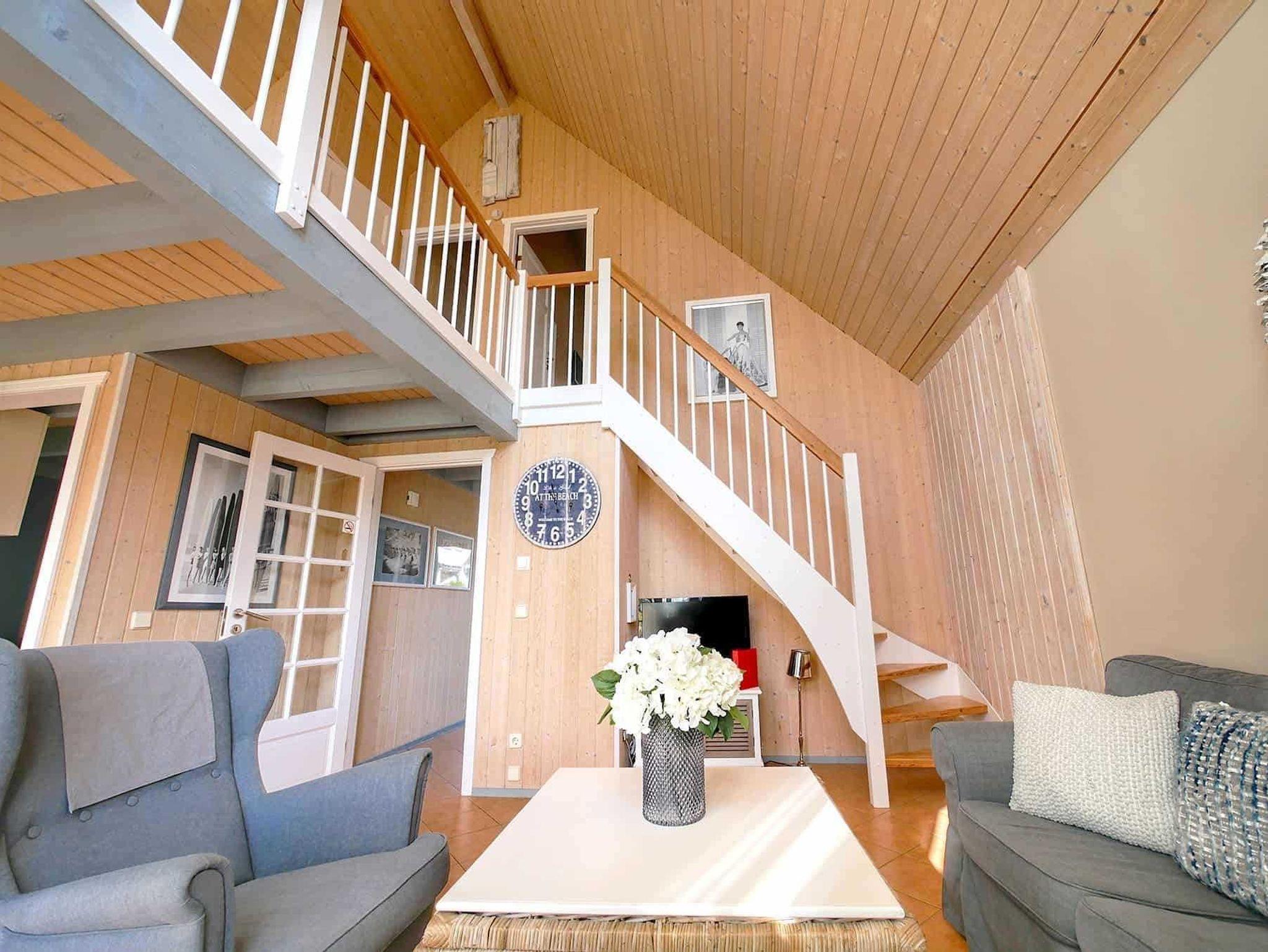 Auf einer Halbinsel im Hafen liegen diese Doppelhaus-Typen mit 98 m² Wohnfläche für 6+2 Personen auf zwei Ebenen. Durch eine offene Galerie mit Schlafsofa können hier 8 Personen übernachten.Die Terrasse führt direkt auf das Gartengrundstück und von der Galerie aus haben Sie einen direkten Zugang zum Balkon.Unsere Fotos zeigen Beispiele individuell unterschiedlicher Einrichtungen