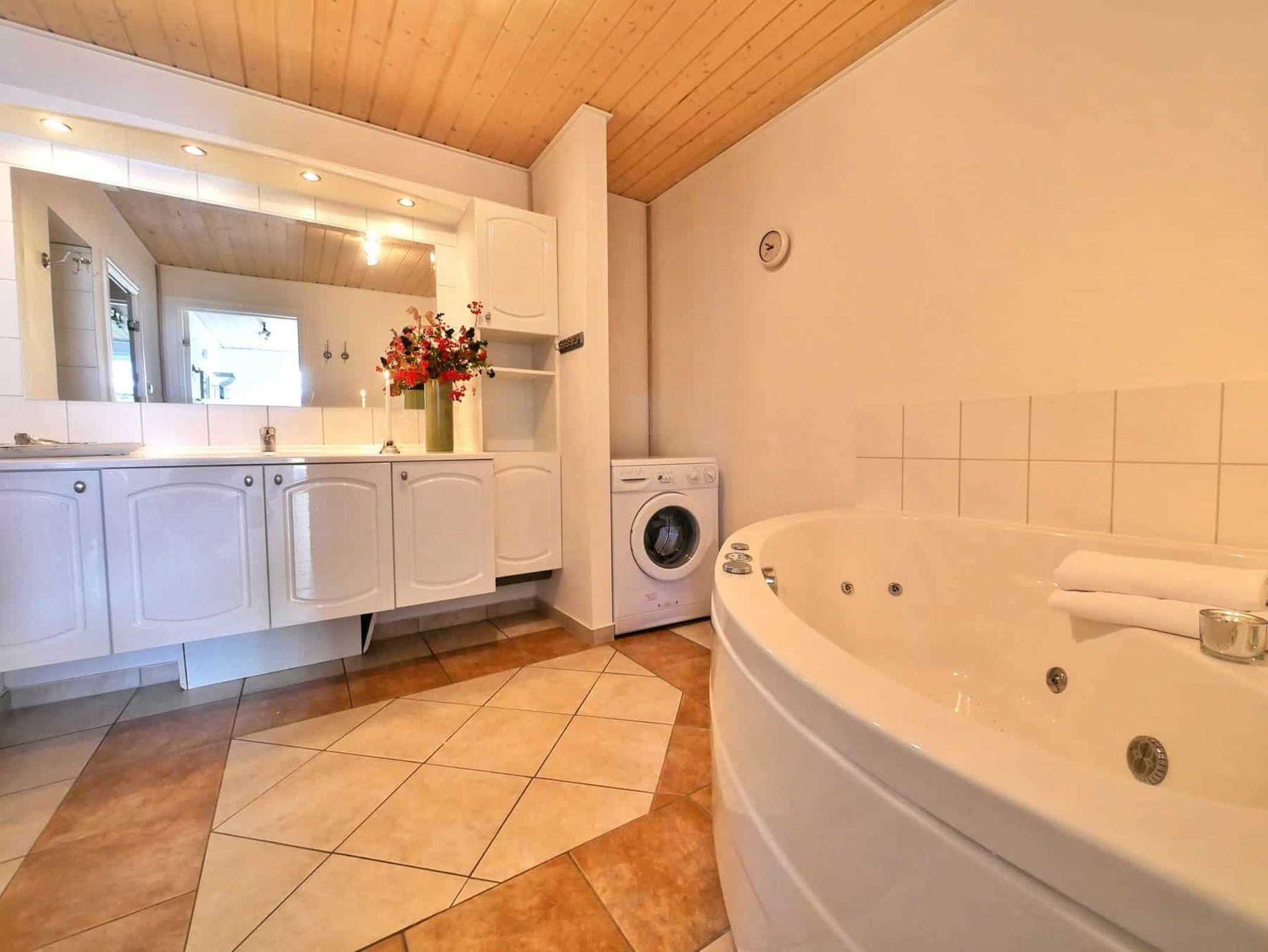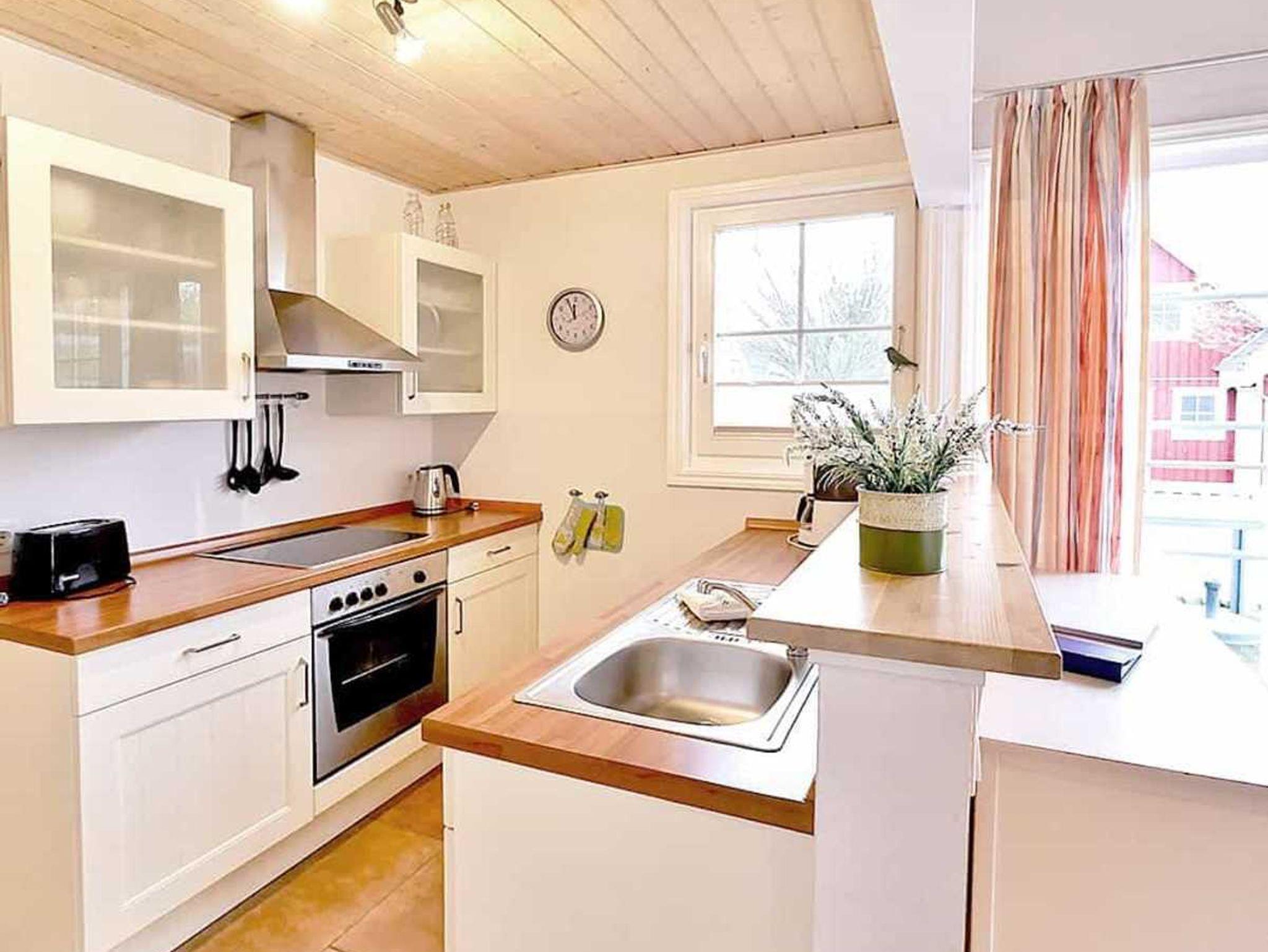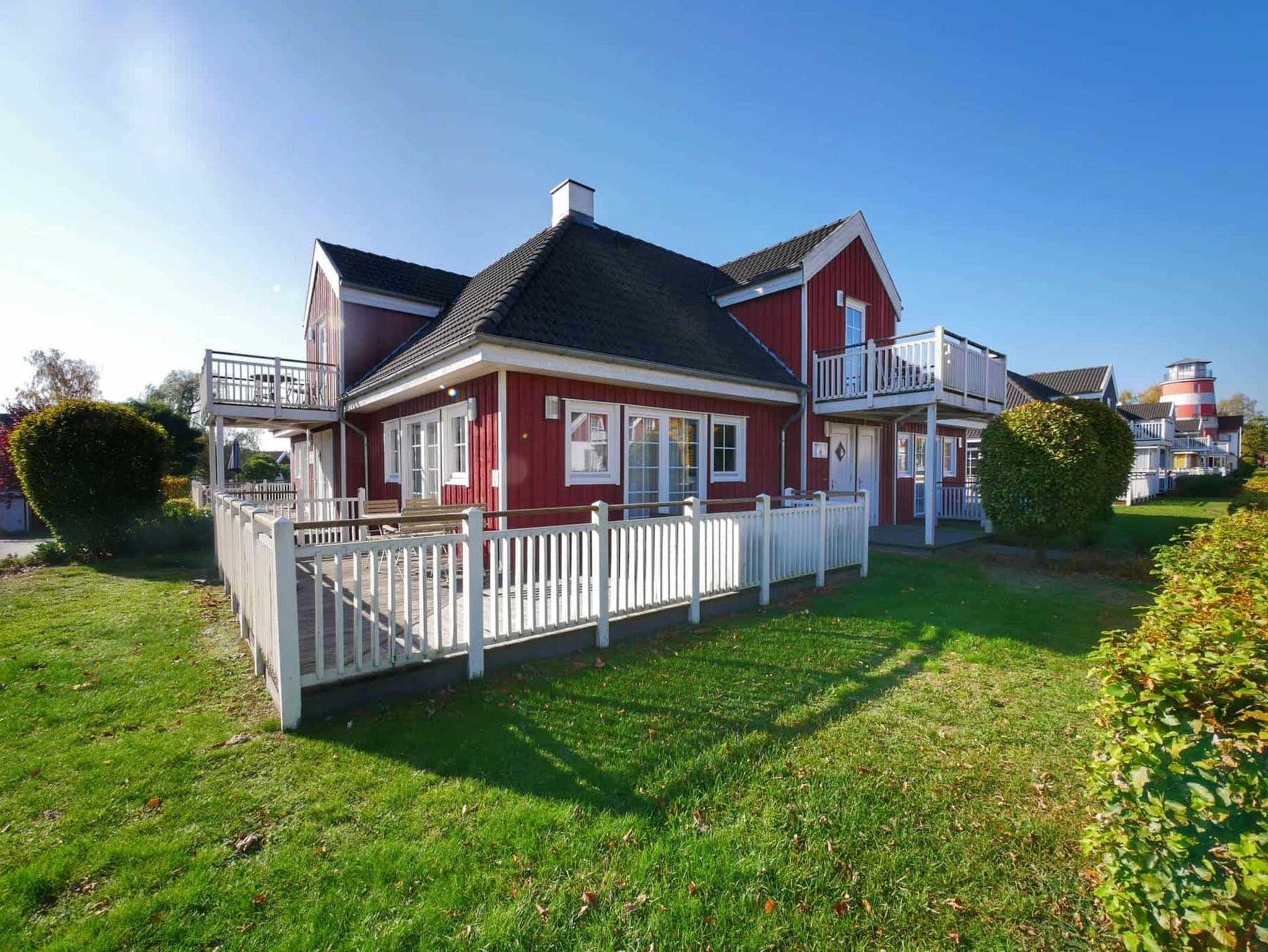 Das Ferienhaus besteht aus jeweils 4 Apartments. Das zweietagige Ferienhaus Kajüte bietet auf ca. 80m² Platz für 4 Personen mit 2 Schlafzimmern, Whirlpool und Sauna. Von einem der Schlafzimmer ist der Balkon zu erreichen.
