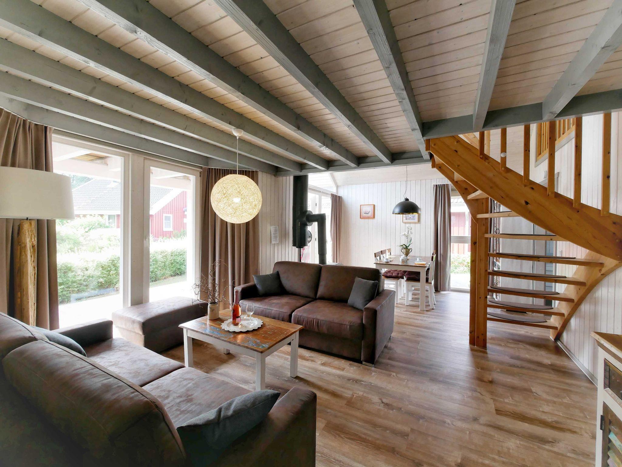 Dieser Haustyp bietet Familien auf 90 m² und zwei Ebenen viel Platz für den Urlaub. Das Haus hat auf beiden Ebenen Dusche und WC. Unsere Fotos zeigen Beispiele individuell unterschiedlicher Einrichtungen