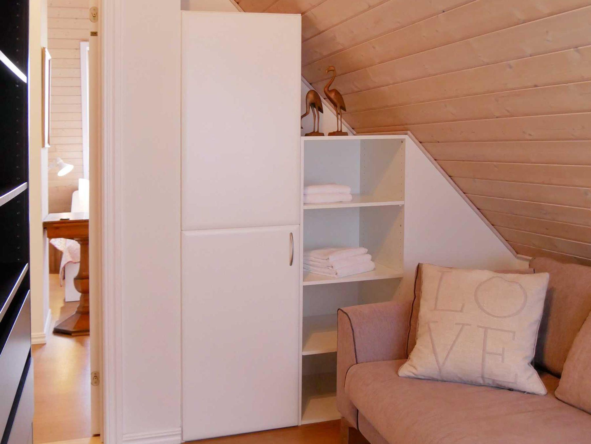 Das Reiheneckhaus besteht aus jeweils 4 Apartments. Das Reiheneckhaus Kajüte XL bietet auf ca. 80 m² Platz für bis zu 4+1 Personen. Zwei gemütliche Schlafzimmer mit Doppelbetten sowie eine offene und helle Galerie mit zusätzlicher Schlafmöglichkeit für ein Kind bieten ausreichend Raum. Die Galerie lädt zudem als gemütlicher Leseplatz oder ruhiger Rückzugsort zum Verweilen ein. Von einem der Schlafzimmer gelangen Sie direkt auf den Balkon. Für dieses Ferienhaus sind die Kosten für Strom, Wasser und Gas inklusive.