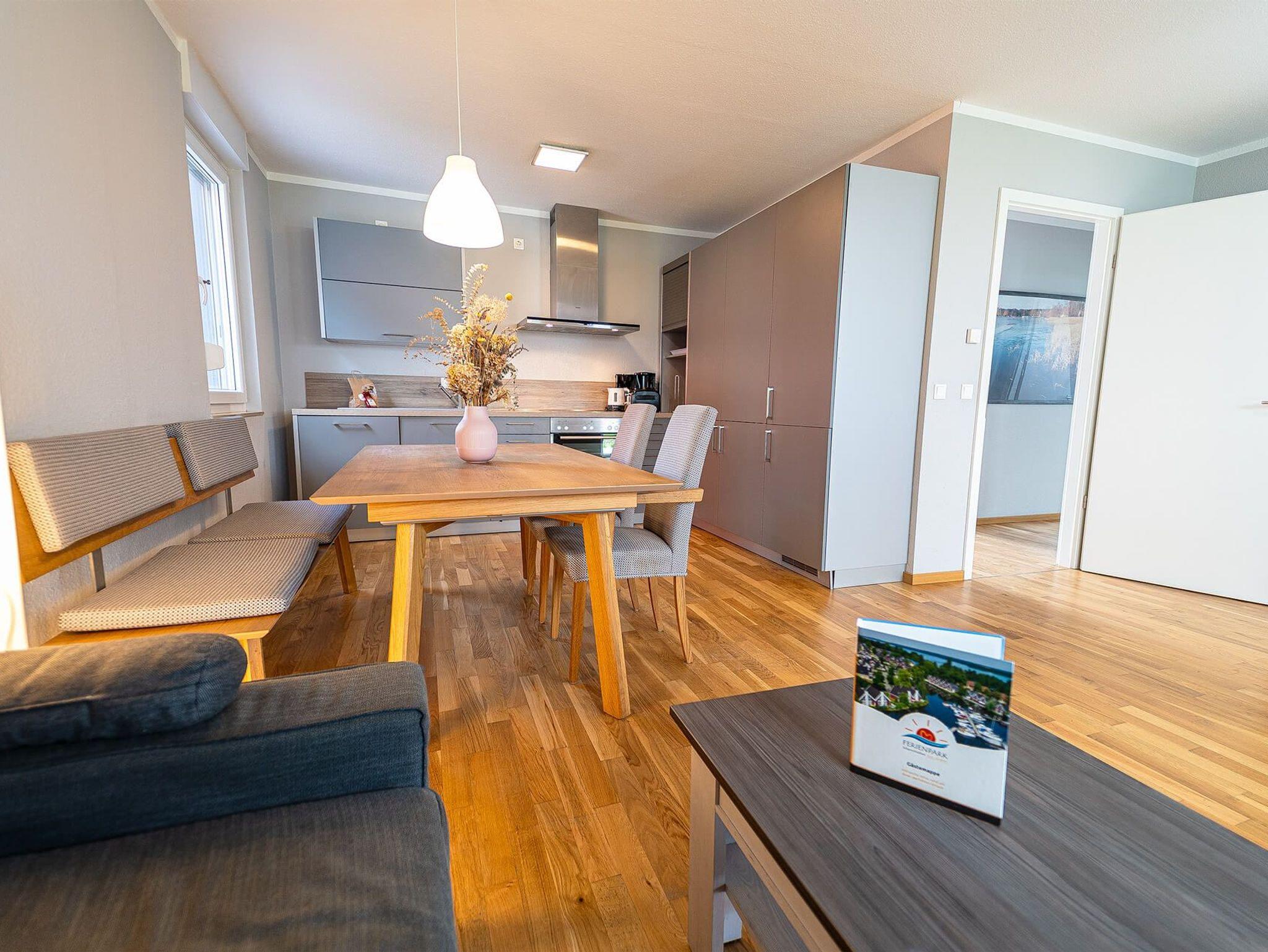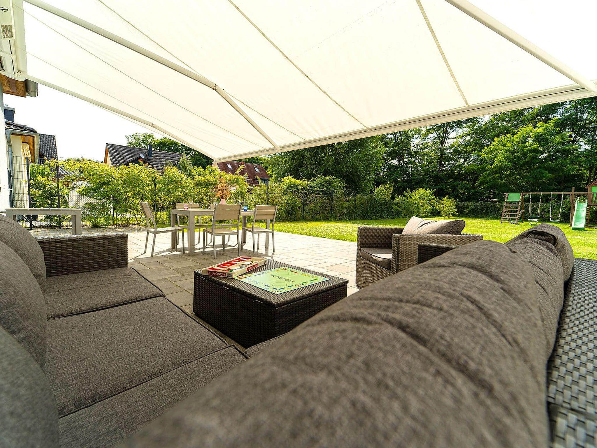Das freistehende Gartenidyll Luisenaue 31e bietet auf einer Ebene Platz für 4 Personen und ist ideal für Familien mit Kindern. Besonders der großzügig angelegte Garten mit einem Spielgerät für Kinder sowie eine Terrasse mit Markise und Terrassenheizung verlängern das Wohlfühlerlebnis. Das Ferienhaus verfügt über ein Schlafzimmer mit Doppelbett und einem Kinderzimmer mit Etagenbett. Eine Aufbettung für 1 Person ist auf dem Schlafsofa im Wohnzimmer möglich.