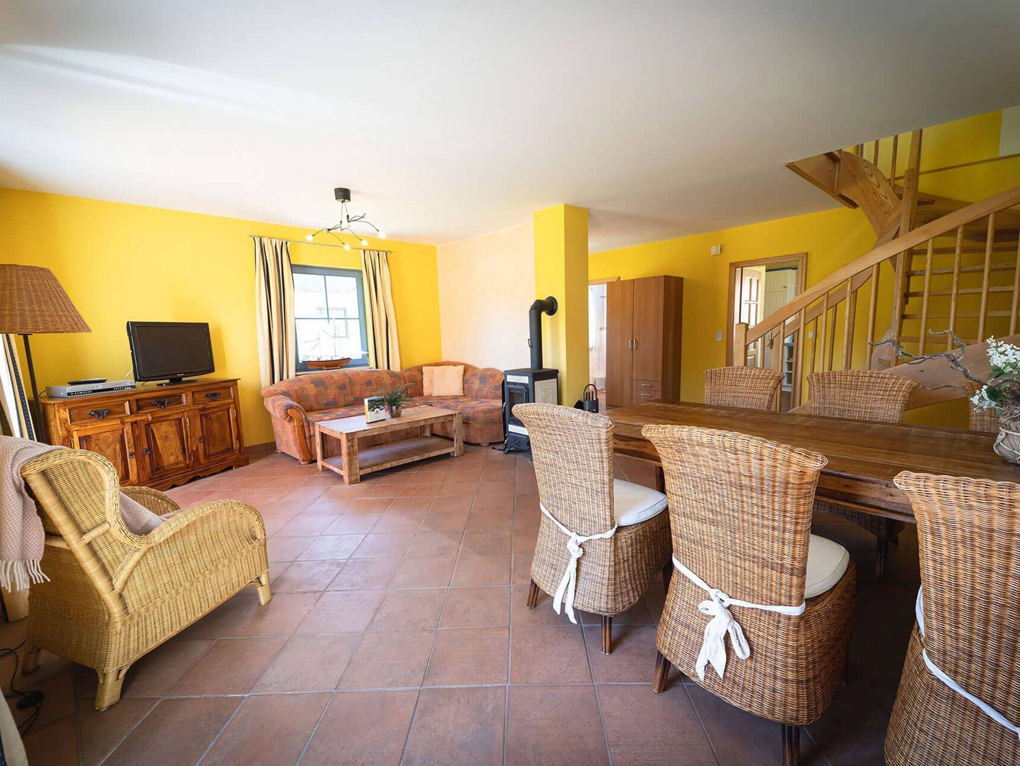 Das freistehende Reethaus mit eigenem Garten bietet Familien mit bis zu 6 Personen auf ca. 100 m² und zwei Ebenen viel Platz für den Urlaub. Die beiden Schlafzimmer mit je einem Doppelbett und einem Einzelbett befinden sich im Obergeschoss. Die Nebekosten für Strom, Wasser und Gas sind für dieses Ferienhaus inklusive.