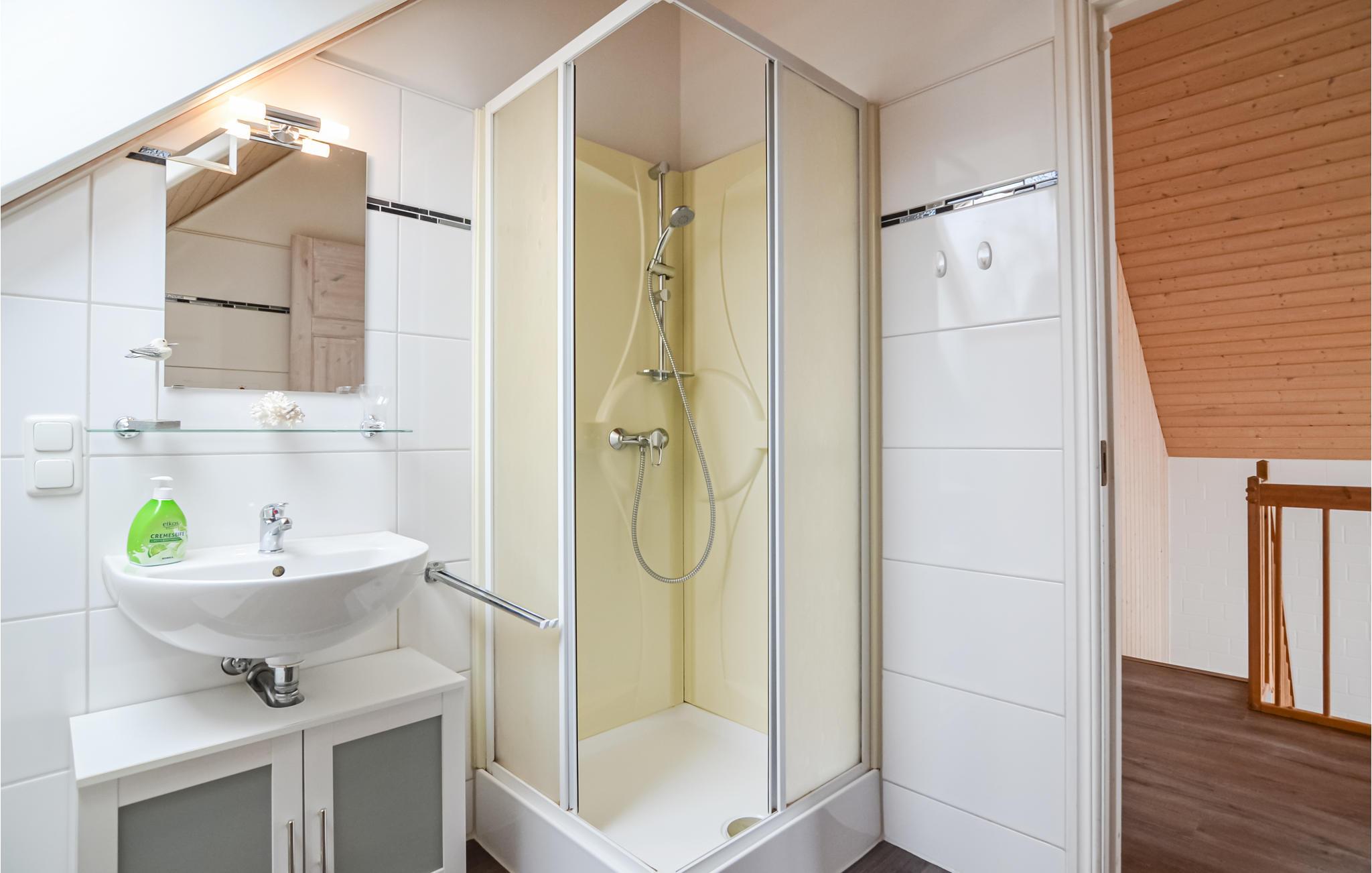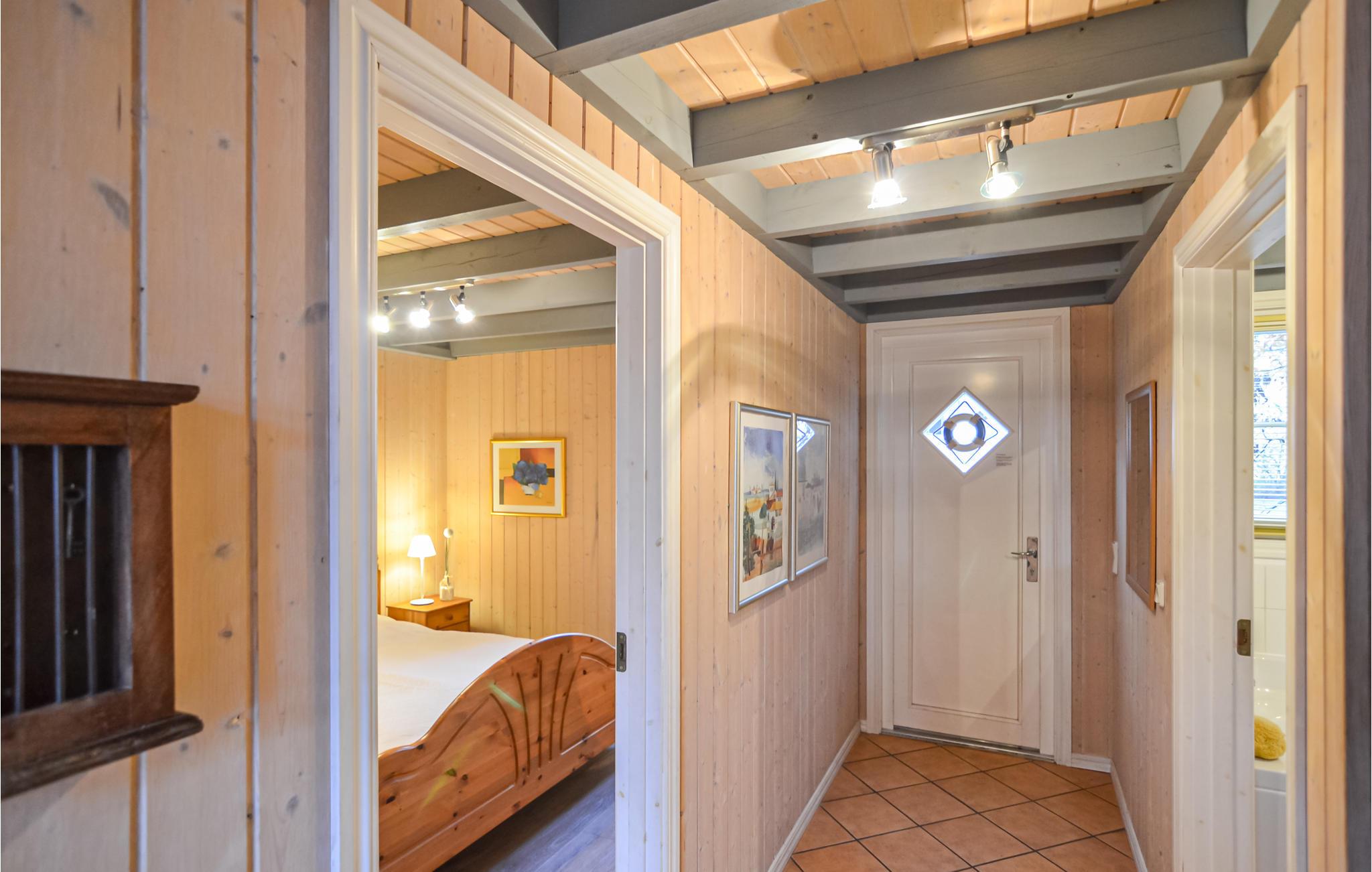 Fra stuen, der integrerer et fuldt udstyret køkken og en hyggelig spiseplads, tilgår I den rummelige altan med udsigt over Scharmützelsee. Her kan I starte dagen stille og roligt med jeres morgenmad eller slappe af efter en lang dag ude. Der er også et komfortabelt møbleret soveværelse med en dobbeltseng og et badeværelse med boblebad og sauna til afslapning i stueetagen.
