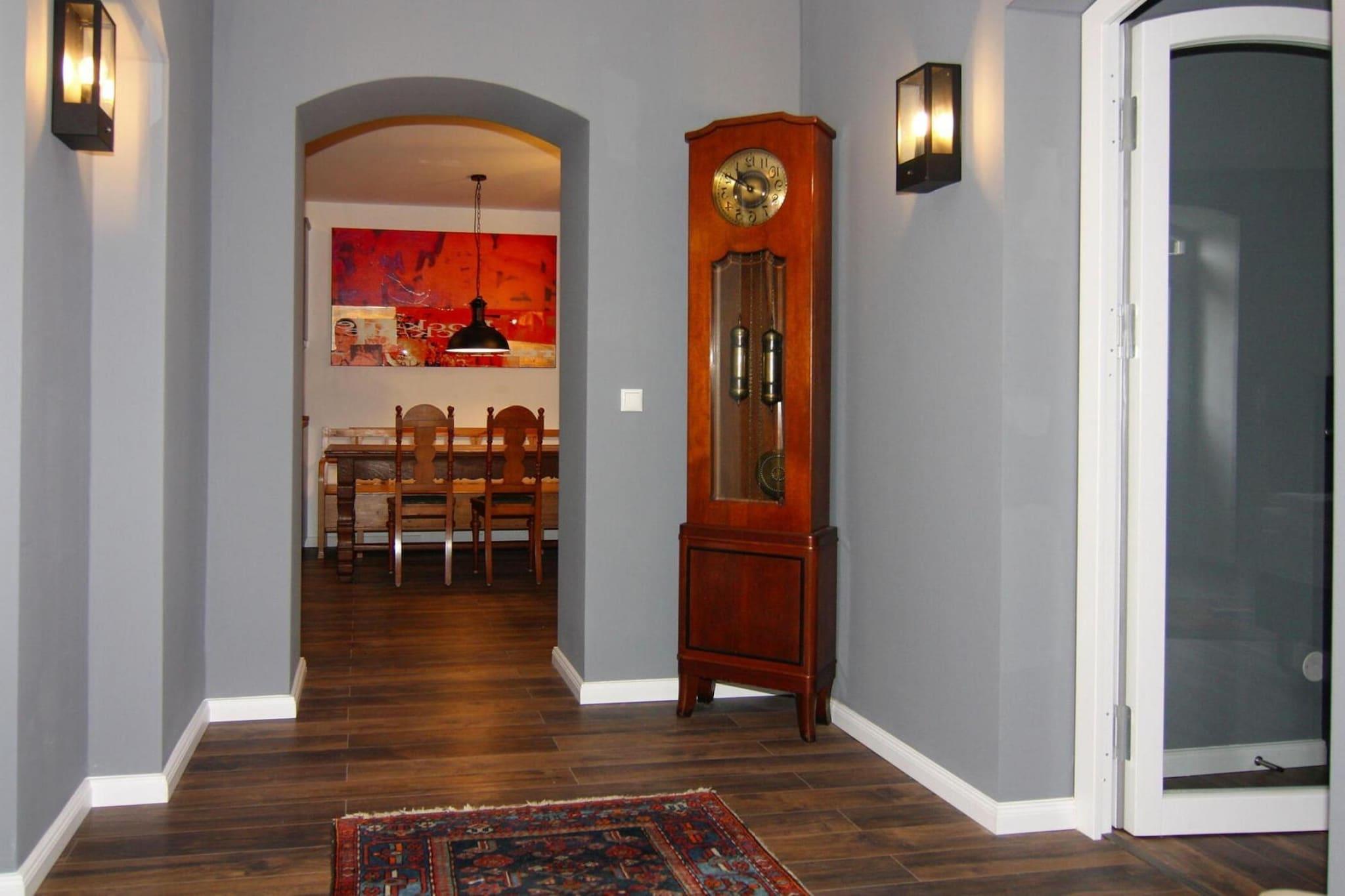Eksklusivt feriehus med WiFi for op til 8 personer på en svag skråning på Schlosshotel Wendorfs grund ved Schwerin. Med 289 kvadratmeter boligareal og yderst behagelig og stilfuld indretning er huset en sand oase af velvære. Huset består af 3 selvstændige enheder, hver med separate indgange. Du kan drage fordel af alle faciliteterne på slotshotellet, som ligger kun 100 meter væk. Nyd for eksempel dyrebare timer i wellness- og skønhedsområdet, lad dig forkæle i restauranten med top gastronomi eller forbedre dit handicap på den nærliggende golfbane. Der er også en professionel ridestald ved foden af slotsparken. Det femstjernede slotshotel Wendorf ligger kun få kilometer fra Schwerin. Omgivet af det charmerende landskab i Mecklenburg Lake District, har du mulighed for at opdage kunst og kultur i hovedstaden og aktivt udforske de smukke naturlandskaber. Detaljer: Forbrugsbaserede energiomkostninger, sengelinned, håndklæder, slutrengøring, rabat på WiFi-greenfee Aktiviteter i nærheden: WINSTONgolf golfbanen, kun 10 minutter væk i bil, er en af de mest attraktive golfbaner i Europa. Som gæst på Schlosshotel får du reduceret greenfee for i alt tre pladser i anlægget. Men omgivelserne omkring slotshotellet byder også på mange muligheder for udendørs aktiviteter. Regionen er skabt til lange cykelture eller hyggelige gå- og vandreture. Udflugter til Schwerin og Rostock eller en dag på stranden ved Østersøen er meget nemme at lave herfra Ikke egnet til personer med nedsat mobilitet
