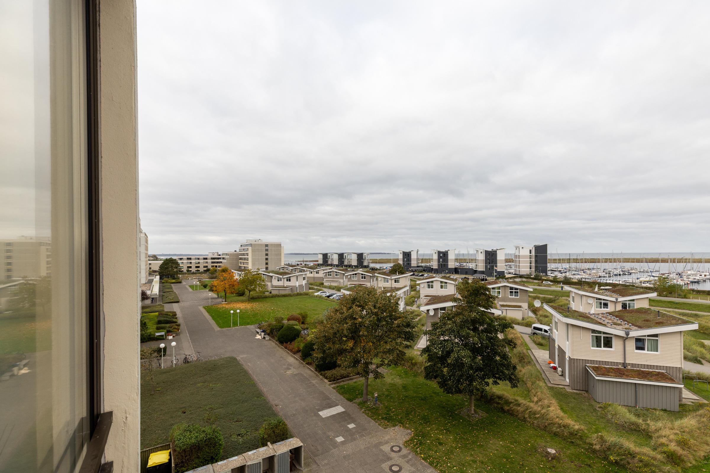 Für diejenigen, die sich gerne mal einen Überblick über den Hafen und die Ostsee verschaffen wollen, ist die gemeinschaftlich genutzte Dachterrasse im 13. Stock genau das Richtige.