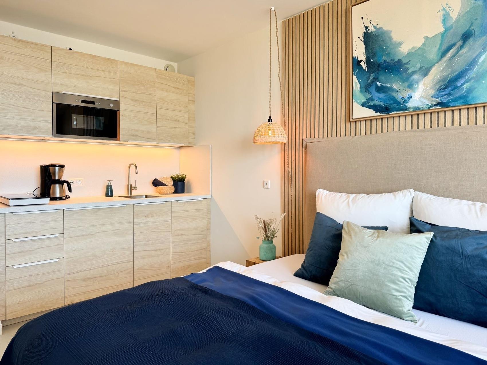 Freuen Sie sich auf ein gemütliches Doppelbett und eine gut ausgestattete Küchenzeile mit Spülmaschine. Während Ihres Aufenthaltes steht Ihnen ein GIGA-CUBE Internetzugang zur Verfügung.