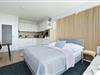 Wohn/Schlafraum: 1 Doppelbett (140x200 cm), Verdunkelung: Plissees