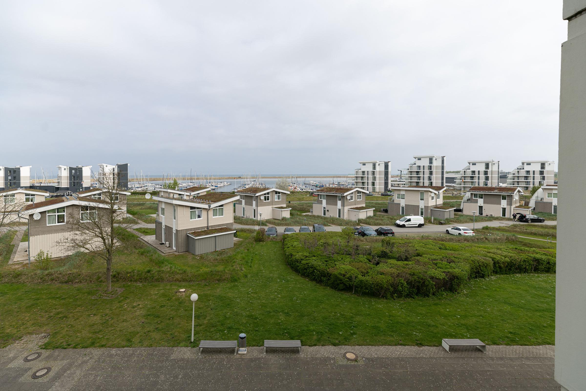 Aufgrund der vorliegenden Bebauung und der Lage im 2. Stock ist zwar kein direkter Meerblick vorhanden, aber zwischen den anderen Ferienhäusern hindurch lässt die Marina mit den Bootsmasten erblicken. Ohnehin ist die Marina und der angrenzende Strand nur einen Katzensprung entfernt.