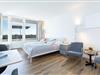 Wohn-/Schlafzimmer: 1 Doppelbett (2x 80x200 cm), Kleiderschrank, Fernseher, Verdunkelung: Vorhänge, Platz für ein Babybett vorhanden