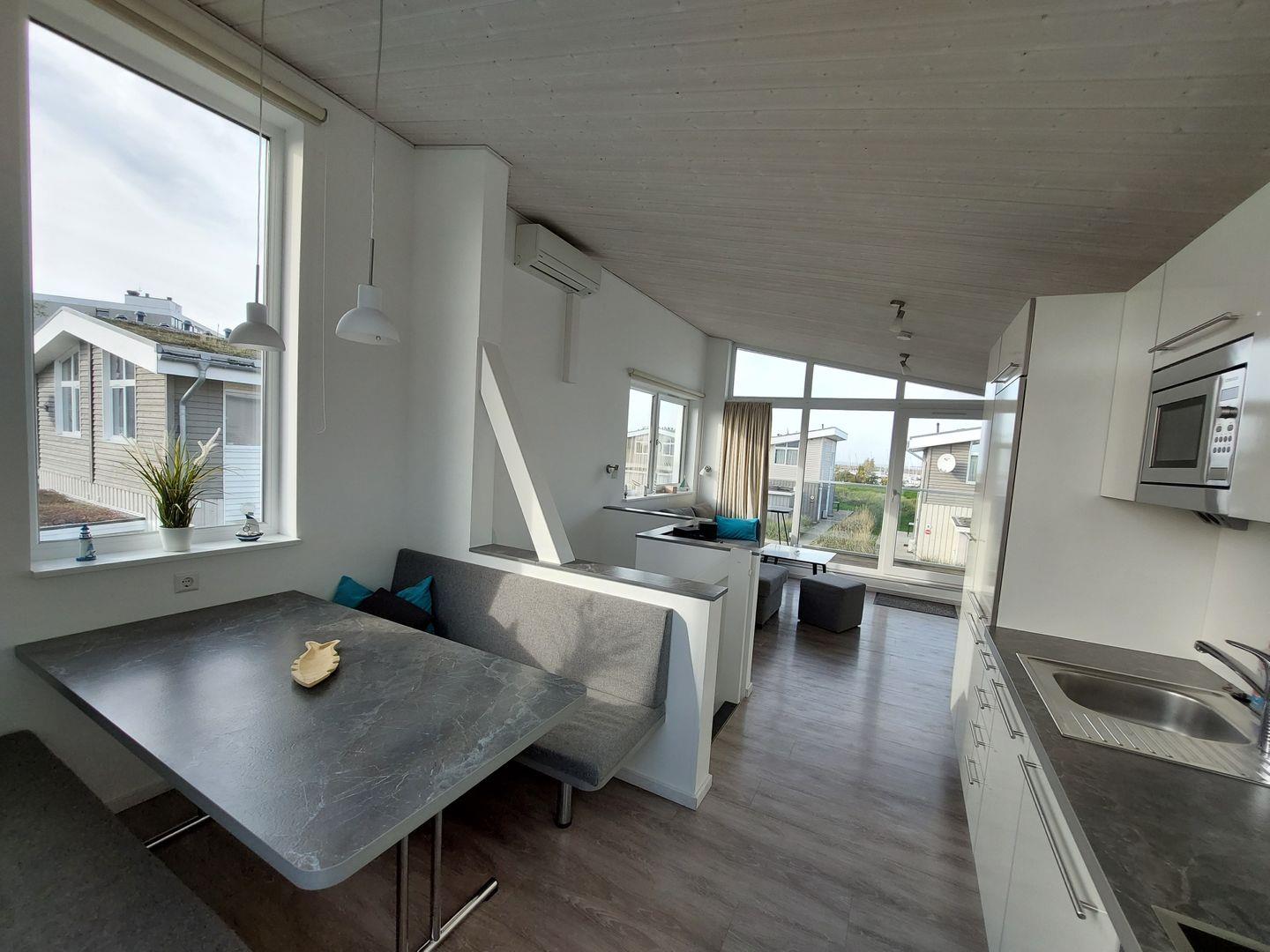 Stilvoll eingerichtete Doppelhaushälfte in unmittelbarer Hafen- und Strandnähe. Für bis zu vier Erwachsene und zwei Kinder bietet dieses Ferienhaus Highlights wie eine Trockensauna, Meerblick, Highspeed-WLAN über Glasfaser, Bioethanol-Kamin und eine traumhafte Umgebung zum Entspannen.