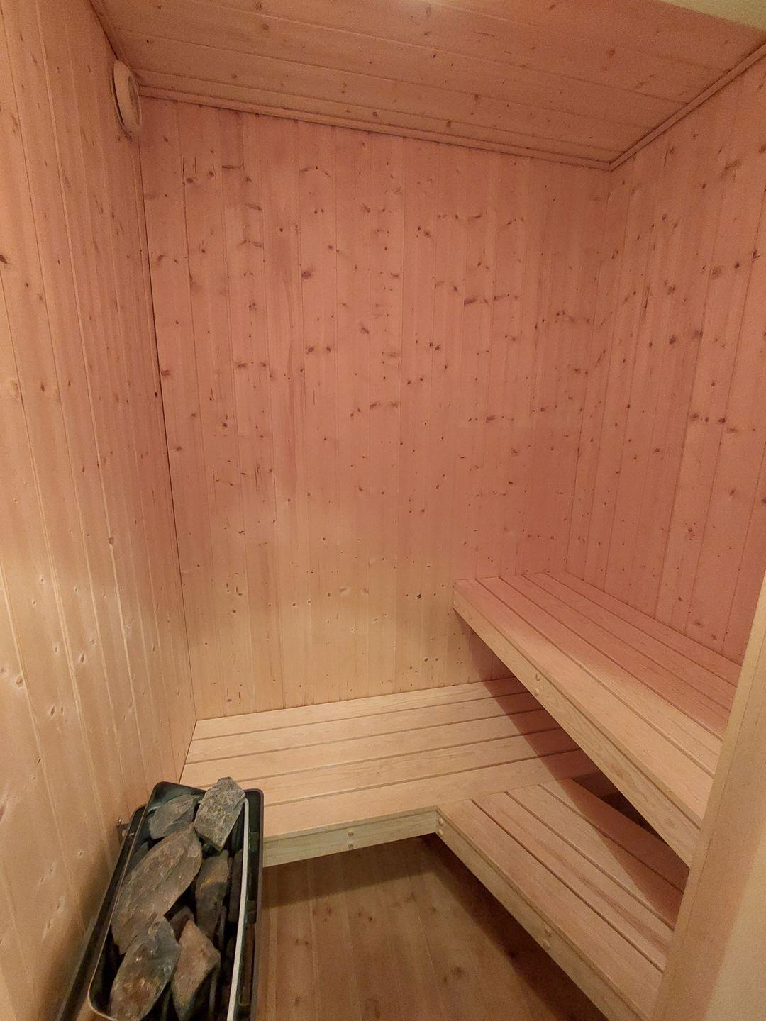 Im Erdgeschoss befinden sich zwei Schlafzimmer. Eines davon bietet zwei zusammengeschobene Einzelbetten (zusammen 180x200cm) und das andere zwei Einzelbetten (je 90x200cm).Eines der Schlafzimmer verfügt über einen TV, sowie beide über verdunkelbare Fenster. Ebenfalls im Erdgeschoss gelegen: das Badezimmer mit angenehmer Fußbodenheizung, ebenerdiger Dusche, WC, Waschbecken und Trockensauna.
