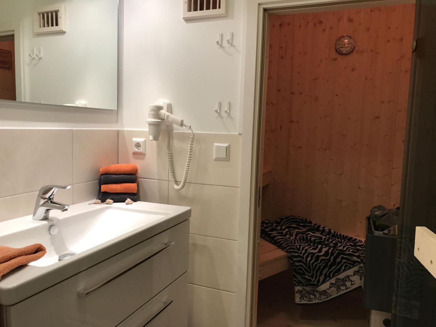 Raumaufteilung: Das Haus verfügt über zwei separate Schlafzimmer, ein Bad mit Fußbodenheizung im mediterranen Stil und eine Sauna für 3 Personen.