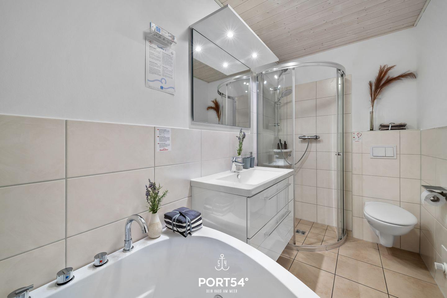 Ebenfalls befindet sich am Haus ein kostenfreier PKW Stellplatz und ein abschließbarer Fahrradschuppen. Ob laue Sommerabende, stürmische Herbstnachmittage oder kühle Wintertage: diese Doppelhaushälfte besticht mit seiner Ausstattung sowie einer naturnahen Umgebung zu jeder Jahreszeit. Vom Balkon aus genießen Sie den Blick Richtung Meer.