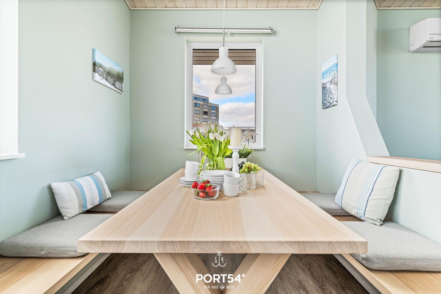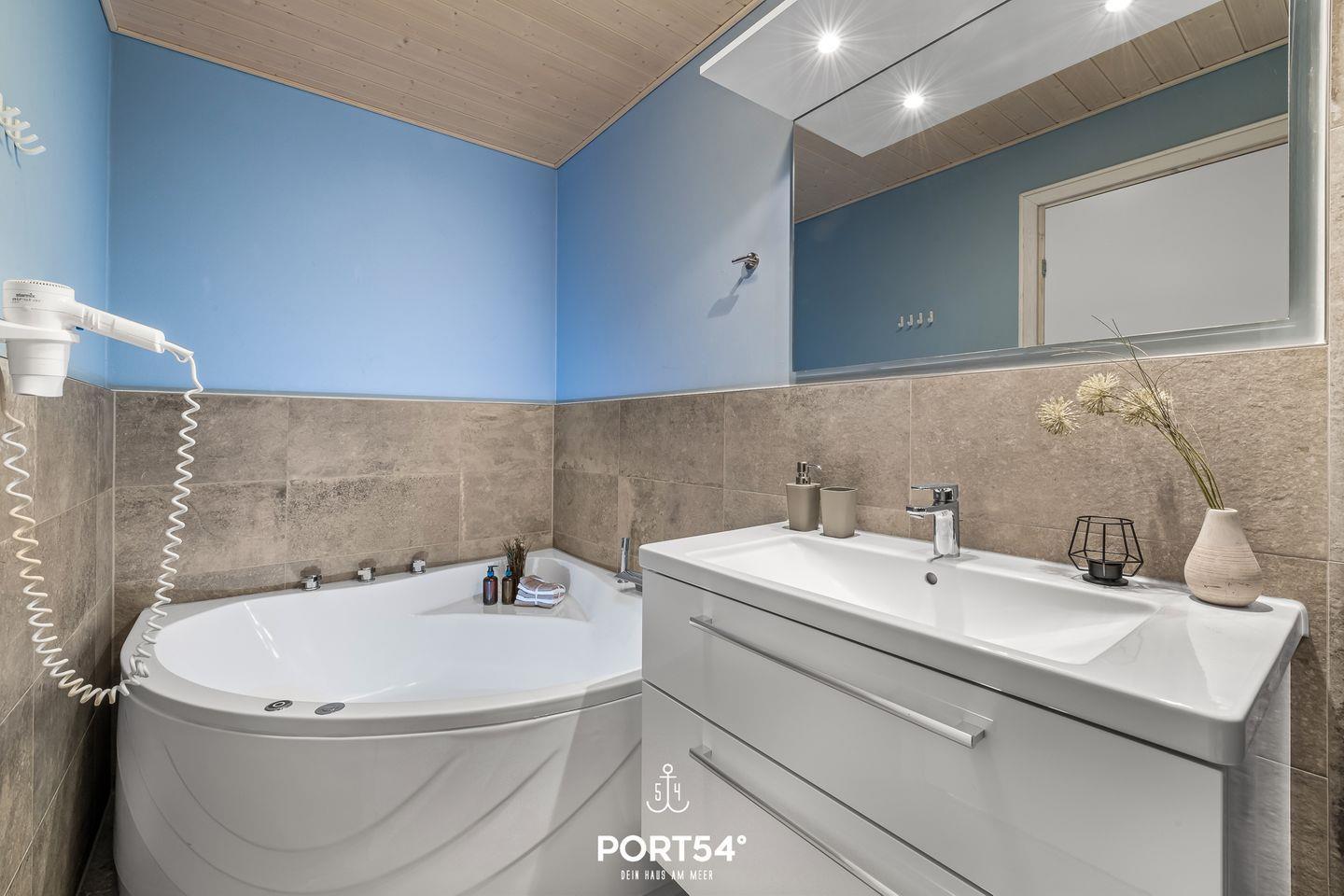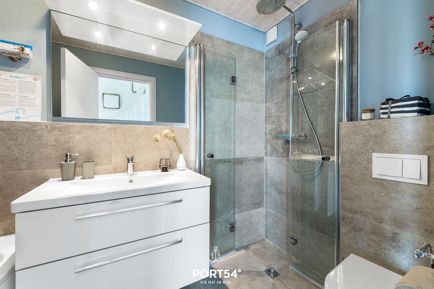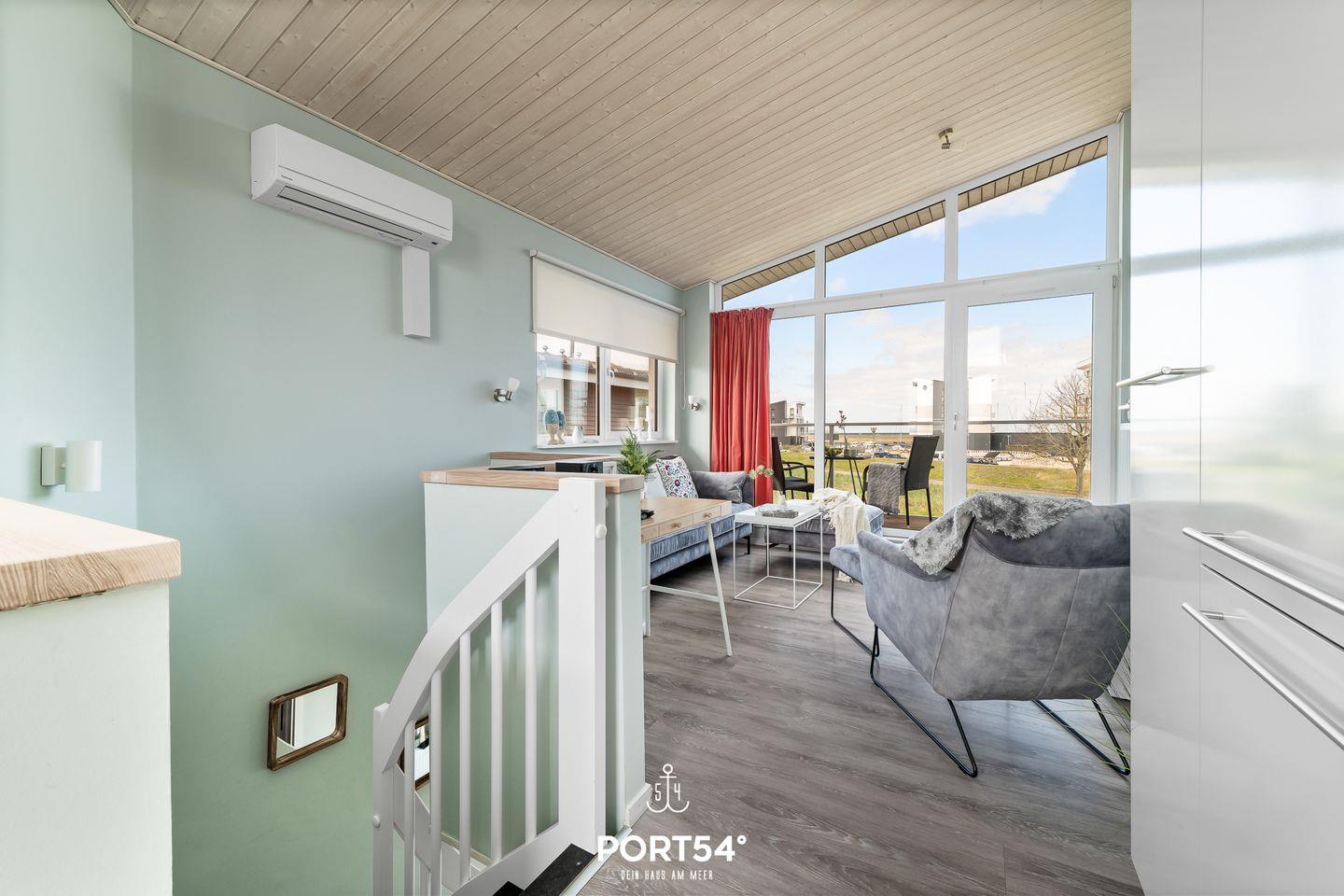 Im Außenbereich laden Sitzmöglichkeiten und Sonnenliegen auf dem Balkon und der Terrasse zum Entspannen ein. Ein Sonnenschirm sowie ein Holzkohlegrill runden die Ausstattung ab. Ebenfalls befindet sich am Haus ein kostenfreier PKW Stellplatz und ein abschließbarer Fahrradschuppen. Ob heiße Sommertage, laue Sommerabende, stürmische Herbstnachmittage oder kühle Wintertage: diese Doppelhaushälfte besticht mit seiner hochwertigen Ausstattung sowie einer naturnahen Umgebung zu jeder Jahreszeit. Vom Balkon aus genießen Sie den Blick Richtung Meer.
