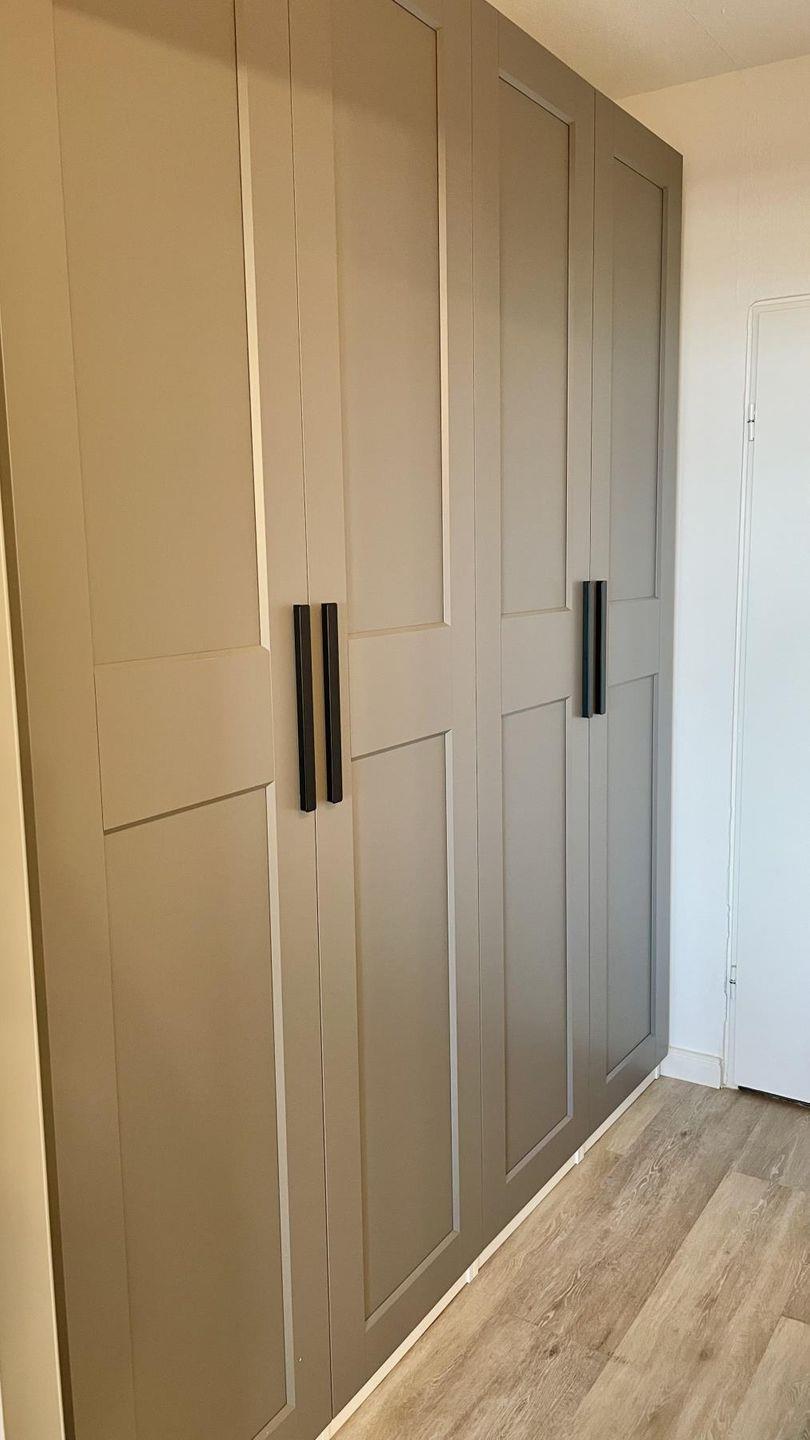 Doppelbett, kleine Küche mit Essplatz, kleiner Flur mit Garderobe, TV,