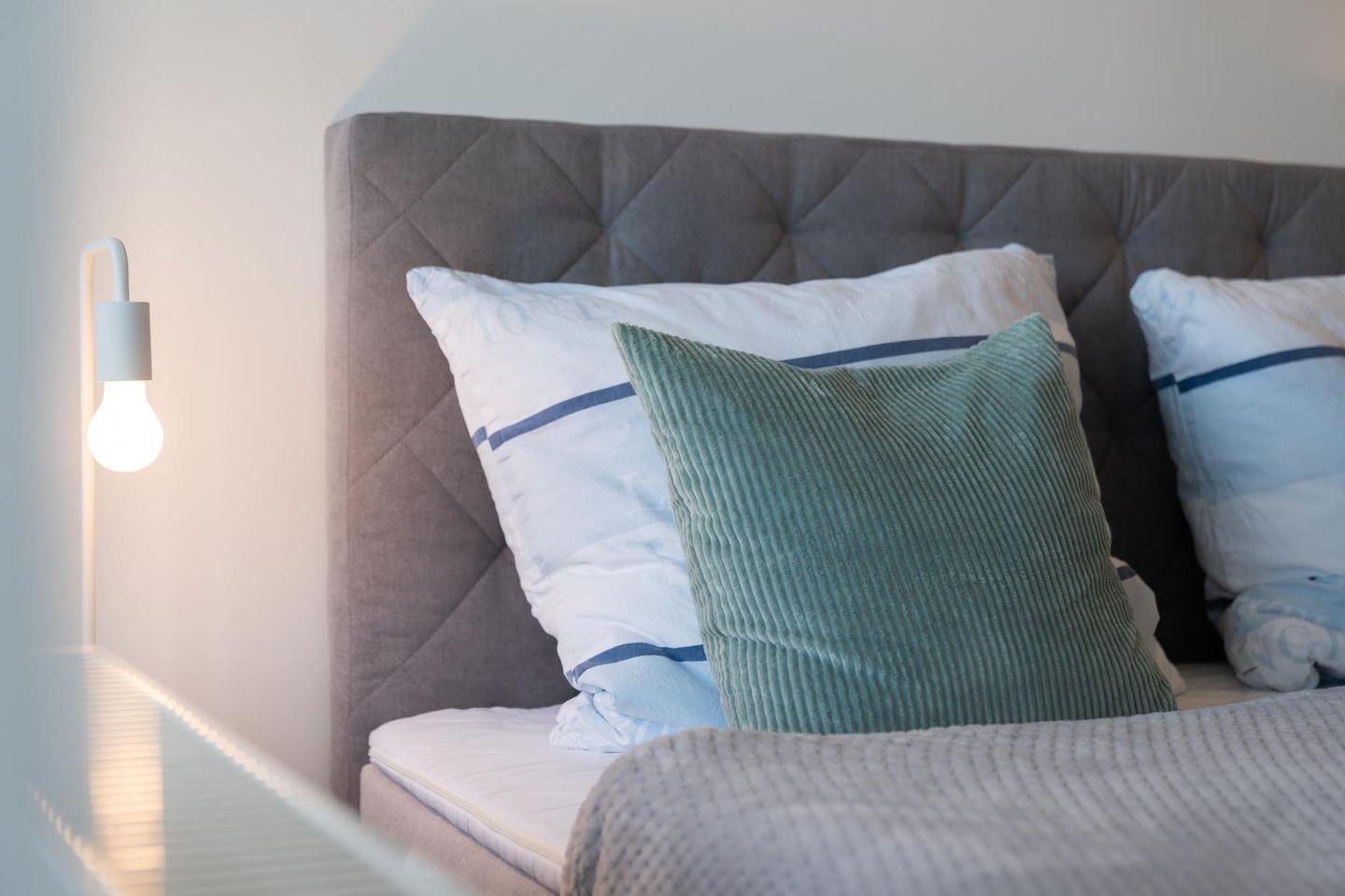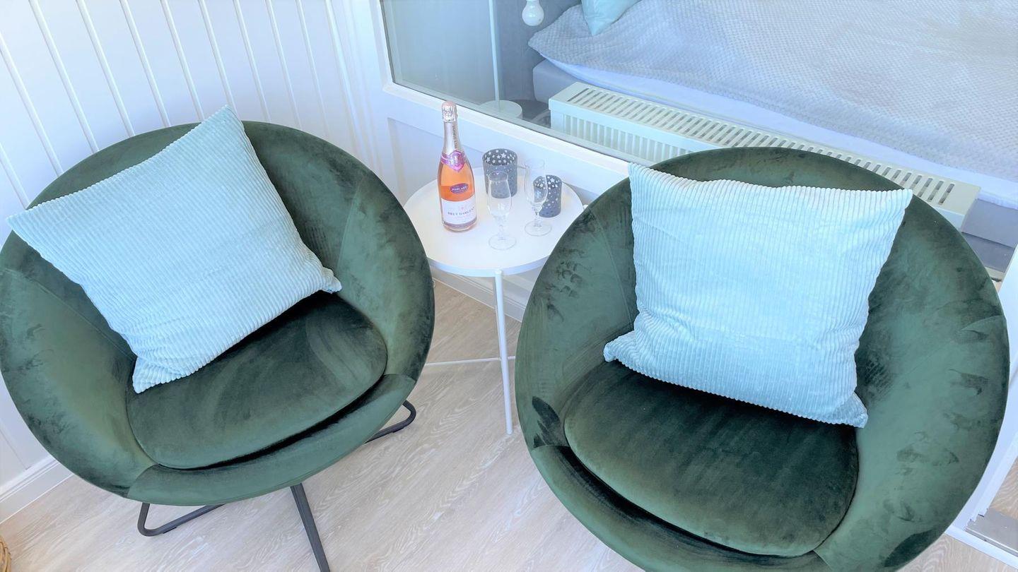 In der verglasten Loggia könnt Ihr auf bequemen Loungesesseln den Blick auf den Yachthafen genießen, die Kreuzfahrtschiffe auf der Kieler Förde beobachten und Euch von traumhaften Sonnenuntergängen verzaubern lassen. Vom 1,60 m breiten Boxspringbett werdet Ihr nach einer erholsamen Nacht den ersten Kaffee mit Meerblick genießen. Es steht eine Kaffee- sowie Nespresso-Maschine zur Verfügung.