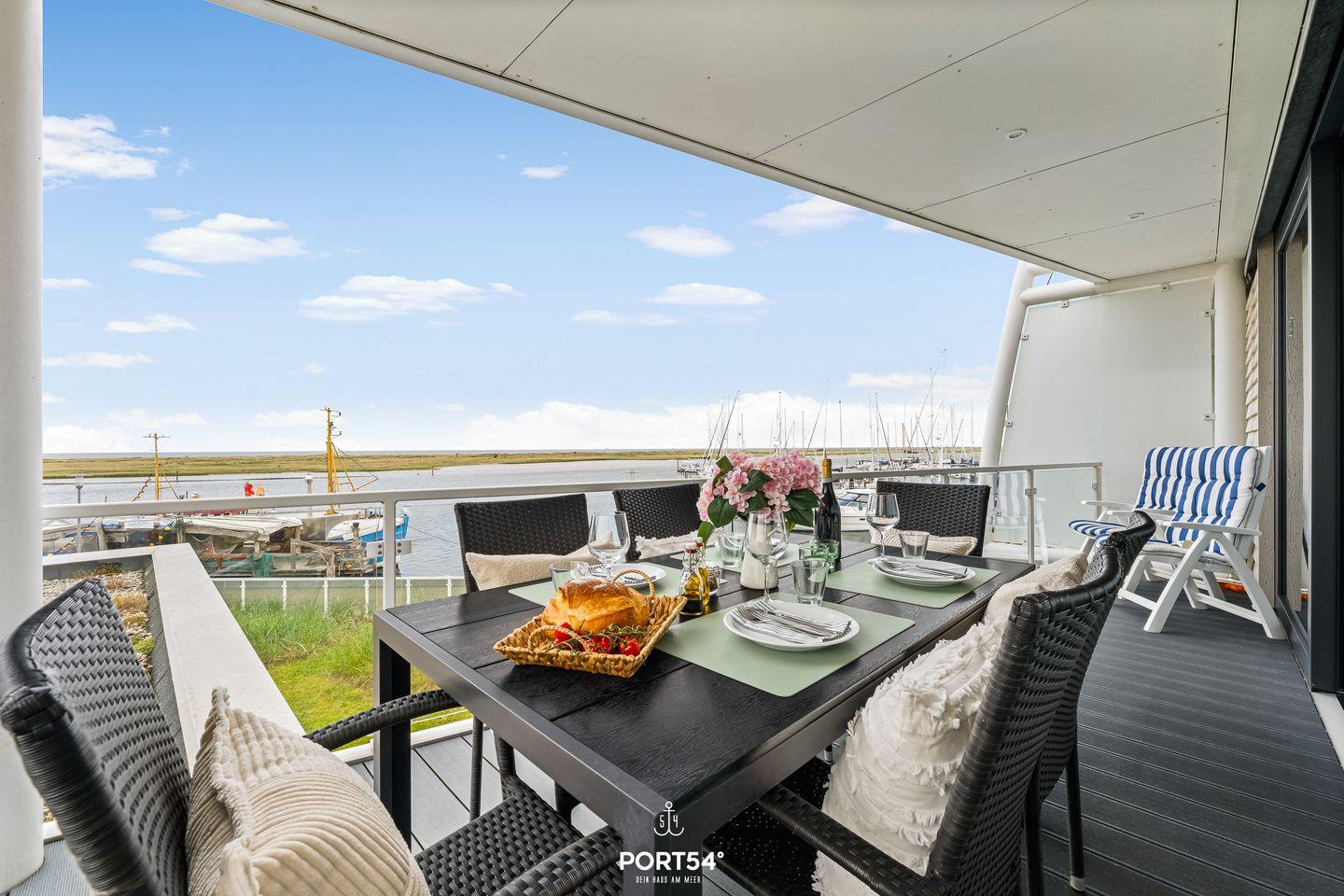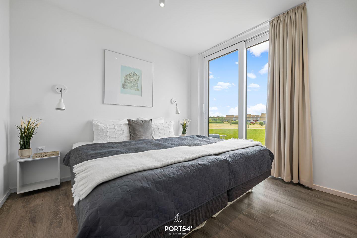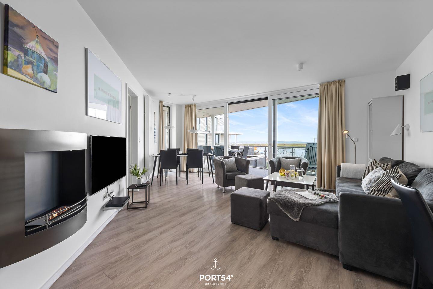 Das Herzstück der Wohnung bildet der offene Wohnbereich, der vom Wohn- und Esszimmer bis zur modernen Küche reicht. Hier kannst du gemeinsame Mahlzeiten zubereiten, während du die wunderschöne Aussicht auf das Meer durch die großen Fenster genießt. Ein besonderes Highlight stellt zudem die Terrasse dar, die mit 24 qm Größe umlaufend um die Wohnung verläuft und dir viele Möglichkeiten bietet, die frische Meeresluft im Freien zu genießen. Die voll ausgestattete Küche lässt keine Wünsche offen und bietet dir alles, was du für deinen Aufenthalt benötigst: von der Spülmaschine bis hin zur Espressomaschine, um deinen Morgen mit einer köstlichen Tasse Kaffee zu beginnen.