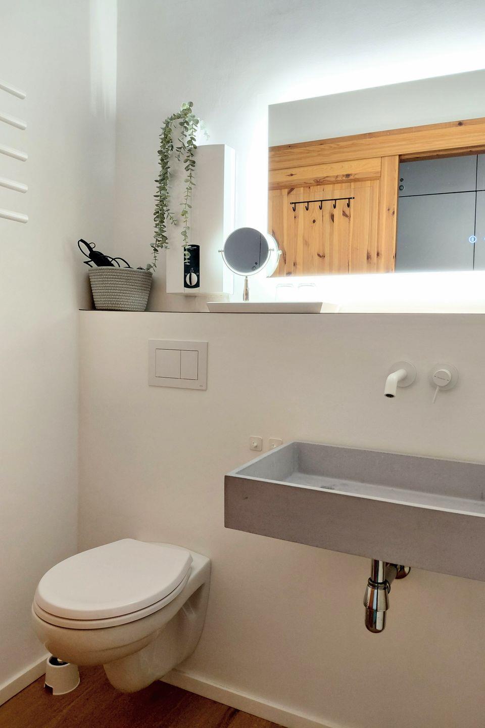 Das modernisierte Badezimmer verfügt über Dusche, WC, Waschbecken, Spiegel und Haartrockner. Rauchmelder sorgen für zusätzliche Sicherheit, und alle Fenster sind mit Sichtschutz versehen. Ein Staubsauger steht ebenfalls zur Verfügung.