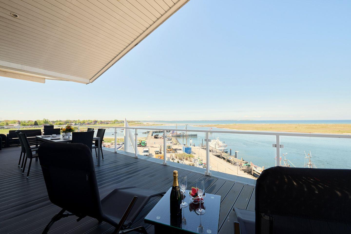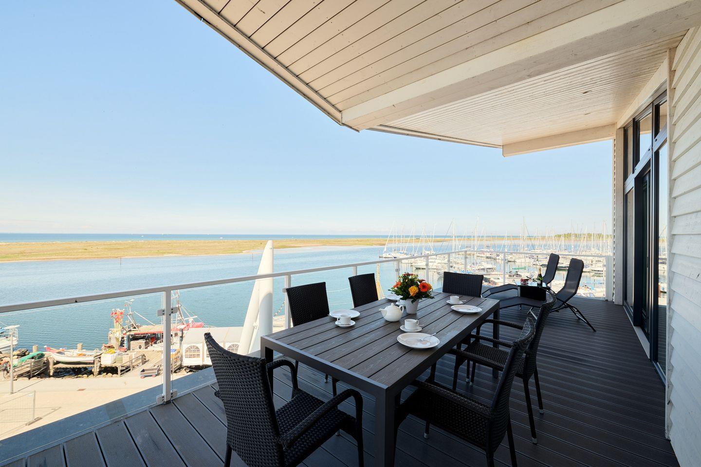 Entdecke die moderne Penthousewohnung **Kiek ut** in der Marina Wendtorf, nur 50 Meter vom feinen Sandstrand entfernt. Diese helle und moderne Unterkunft bietet Platz für bis zu sechs Personen in drei gemütlichen Schlafzimmern. Die Wohnung begeistert mit einer voll ausgestatteten offenen Küche, einer Dampfdusche, einer Sauna, einer Whirlwanne und einem komfortablen Wohnzimmer. Vom überdachten, umlaufenden Balkon hast du einen traumhaften Blick auf das Meer.