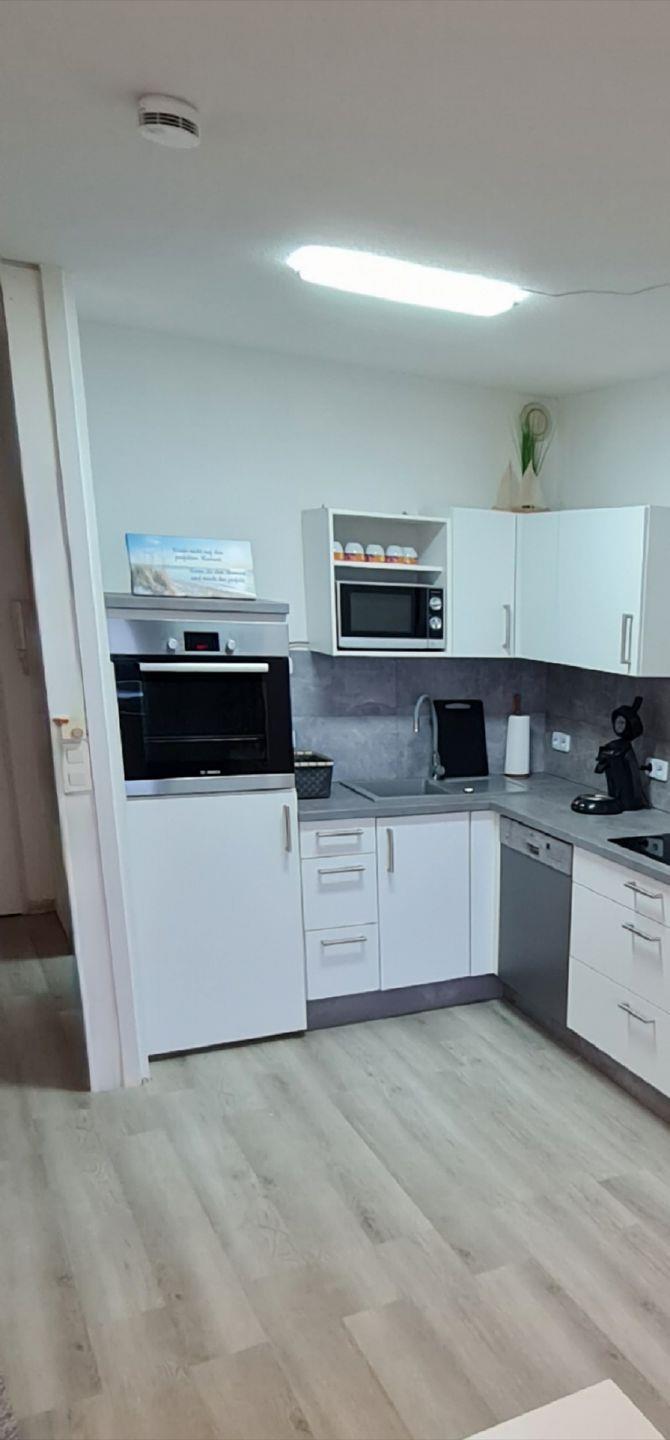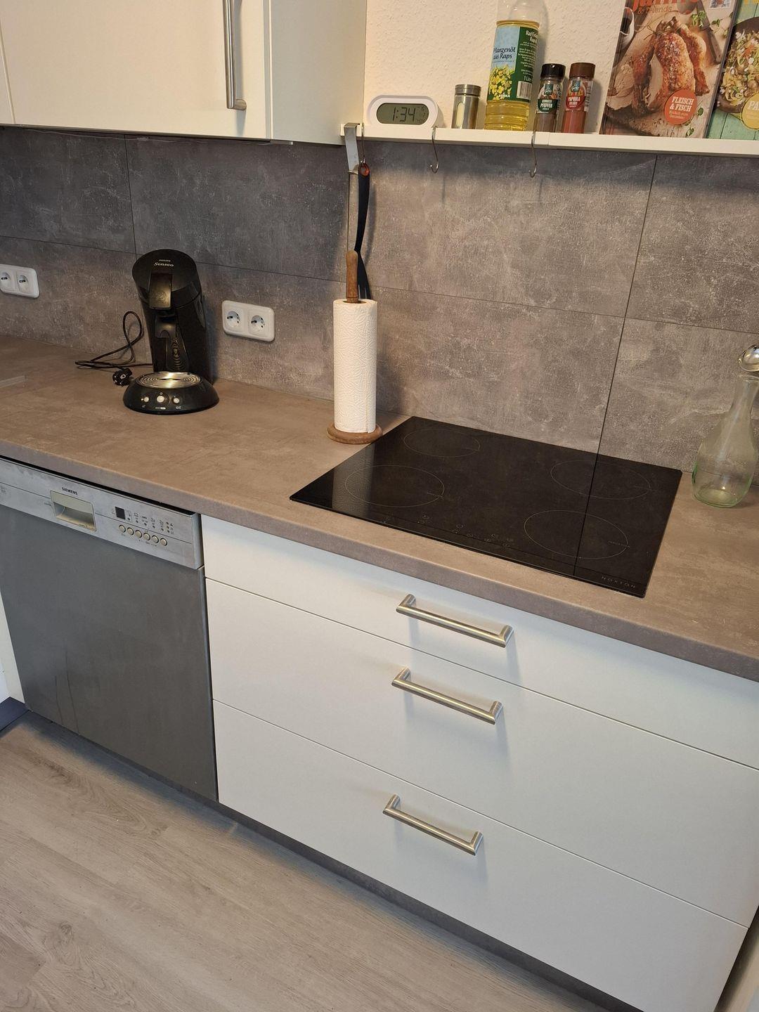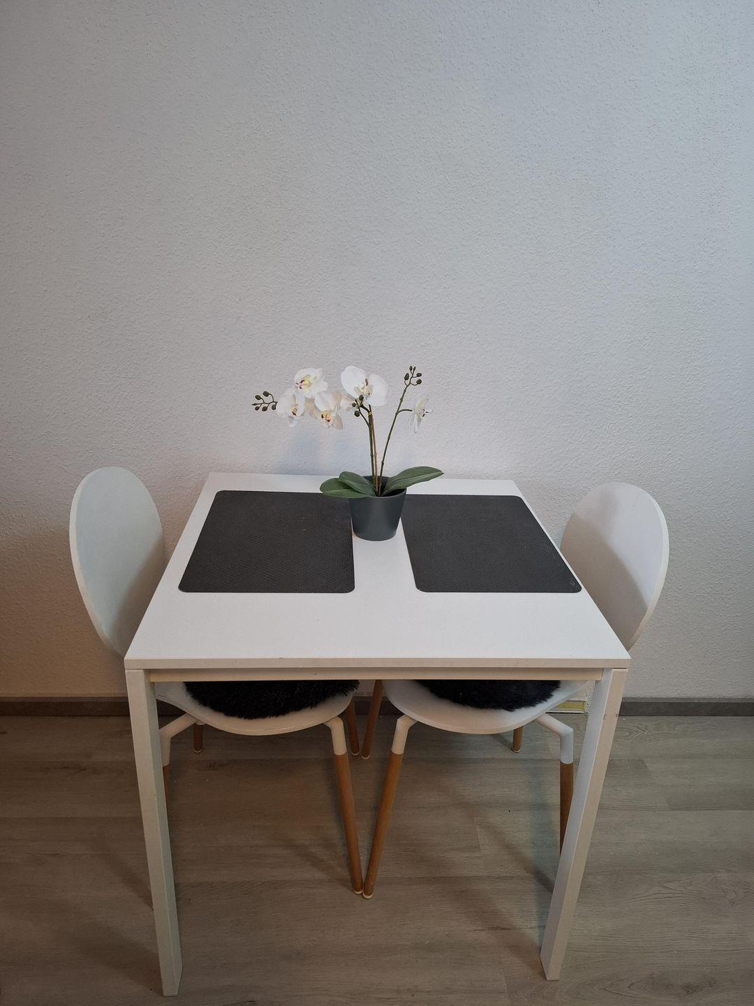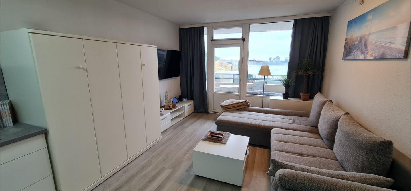 Die helle, offen gestaltete Ein-Raum-Ferienwohnung verfügt über ein großes Schlafsofa, ein Murphy-Schrankbett, einen Essbereich und eine moderne Küchenzeile. Diese ist offen zum Wohnraum und mit zahlreichen Annehmlichkeiten ausgestattet: Neben einem Induktionsherd, Backofen, Kühlschrank mit Gefrierfach, Mikrowelle und Spülmaschine sind auch eine Senseo-Espressomaschine, Toaster, Wasserkocher sowie Geschirr und Küchenutensilien vorhanden. Ein Esstisch bietet den perfekten Ort für gemeinsame Mahlzeiten.
