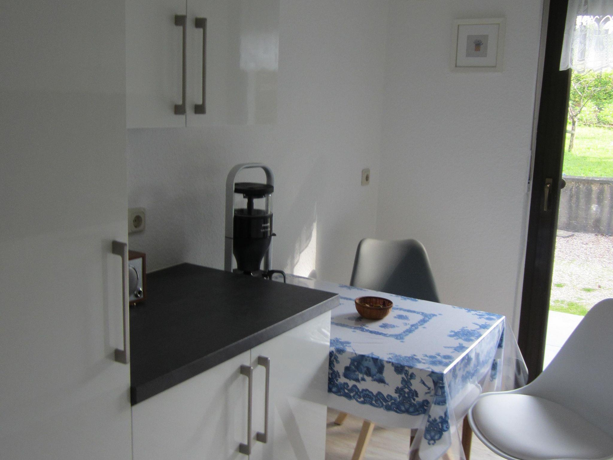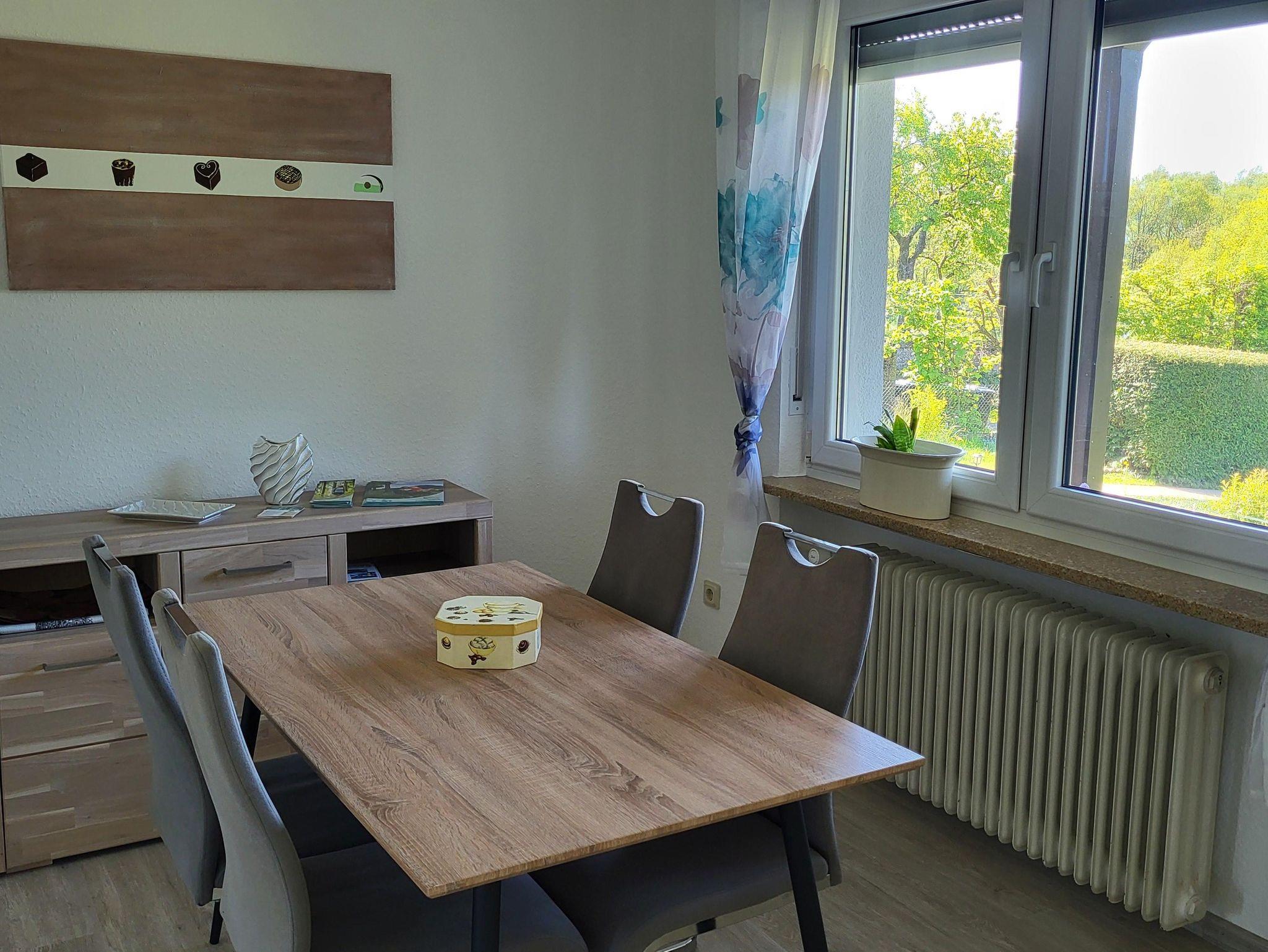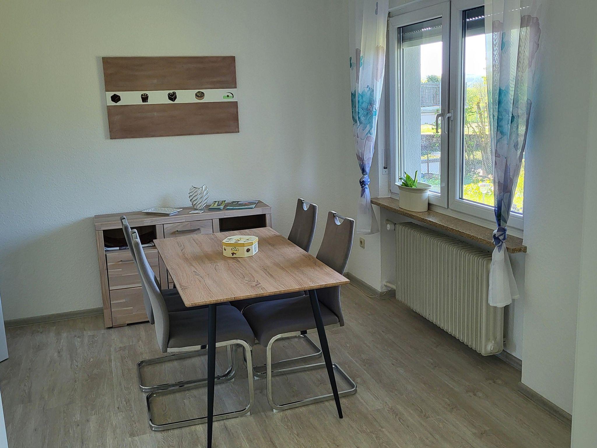 Die Ferienwohnung Kleyne Rore befindet sich im Erdgeschoss eines schönen Hauses, das umgeben ist von viel Grün, in direkter Anbindung an den Maare-Mosel-Radweg und fußläufiger Nähe zum idyllischen Sterenbachsee (2 km).