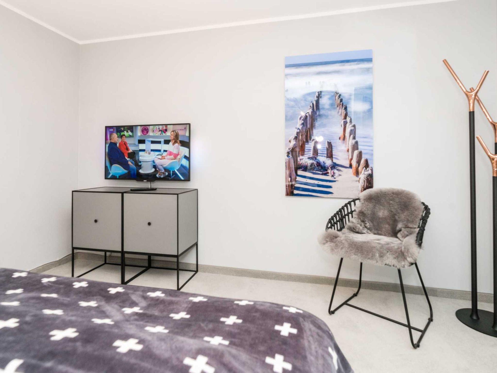 Im Zentrum von Wenningstedt-Braderup, nur wenige Gehminuten vom Strand entfernt, liegt diese kleine zwei Zimmerwohnung. Wohnraum mit Essbereich /Schlafcouch und separater Küche. Schlafzimmer und Duschbad befinden sich im Untergeschoss.