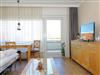 Ein helles Wohnzimmer mit großer Fensterfront und Zugang zum Balkon.TV SAT/Kabel, Kleiderschrank, Esstisch,Schlafsofa im Wohnzimmer (1,40mx2,00m)
