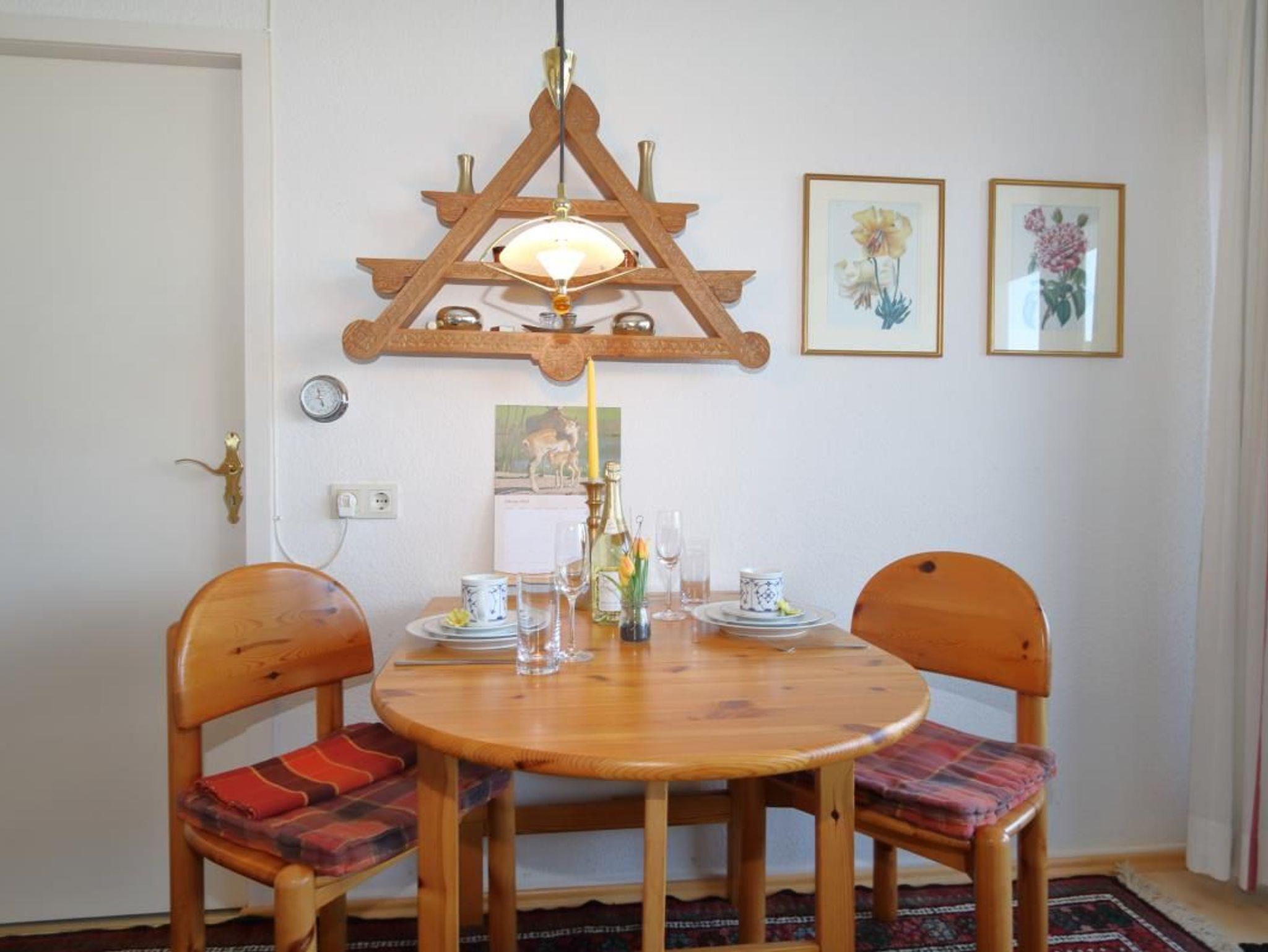 Dieses helle und sonnige Appartement ist gemütlich und komfortabel eingerichtet. Dazu gehört ein Schlafzimmer mit Doppelbett, ein Kleiderschrank und ein Schreibtisch. Das Bad ist wohnlich und zweckmäßig ausgestattet. Der Wohnraum ist lichtdurchflutet und modern eingerichtet mit Kabel-TV und Radio. Die Essecke lädt zum gemütlichen Verweilen am Spieleabend ein. In der Pantryküche findet der Hobbykoch alles was er braucht, um seine Lieben zu verwöhnen. Der große Balkon ist möbliert mit Tisch und Stühlen und lädt morgens schon zum Frühstück im Freien ein. Der dazugehörige Parkplatz befinden sich am Haus.