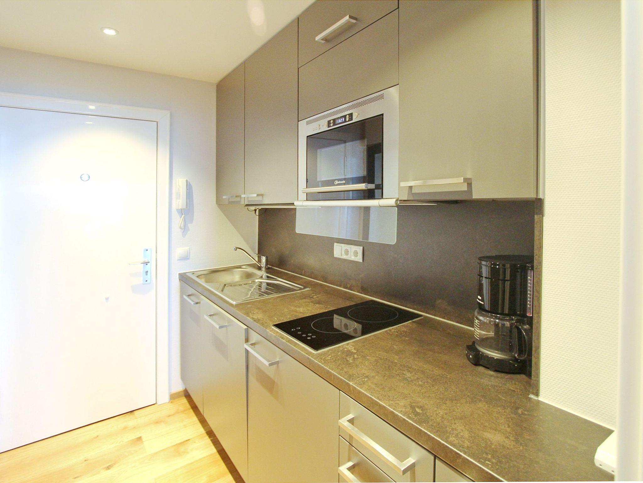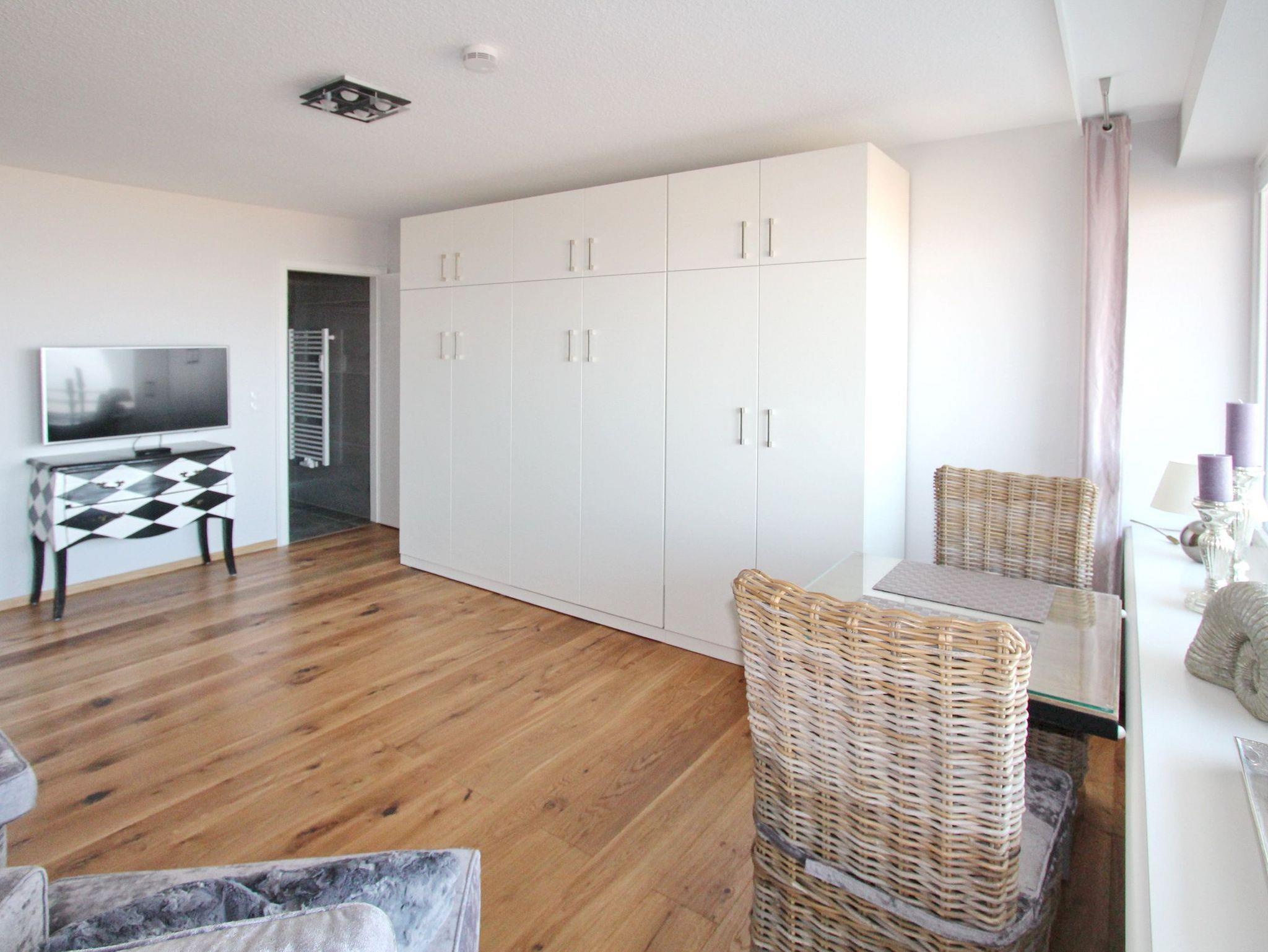 Hochwertig und modern eingerichtete 1 Zimmer Wohnung in der 1. Etage im Dünenhof zum Kronprinzen. Vom vorgelagerten Westbalkon mit Balkonmöbeln und Auflagen haben Sie einen einmaligen Blick auf die Nordsee. Der kombinierte Wohn-Schlafraum verfügt über ein gemütliches Sofa, einen Fernsehsessel, hochwertige Einzelschrankbetten und einen Essplatz mit 2 Stühlen am Fenster, von dem sie direkt aufs Wasser schauen können. Die Küchenzeile im Flur hat einen Geschirrspüler, eine Mikrowelle, eine zusätzliche Nespressomaschine und ein Cerankochfeld mit 2 Herdplatten und ist so ausgestattet, dass Sie kleine Mahlzeiten bequem zubereiten können. Das moderne Badezimmer hat eine Dusche mit flachem Einstieg, einen beheizten Handtuchhalter, sowie ausreichend Stauraum/Ablagefläche für ihre persönlichen Dinge. In der Wohnung wurde hochwertiger Designfussboden verlegt. Ein Flachbildfernseher und DVD Player sowie eine Sony HiFi Anlage mit CD ,USB und Bluetooth stehen ihnen ebenfalls zur Verfügung. Ein freier WLAN Hotspot (Duenenhof zum Kronprinzen - Passwort im Appartement - ohne Gewähr) steht ihnen kostenfrei zur Verfügung. Diese Nichtraucherwohnung ist ca. 34 m² groß.