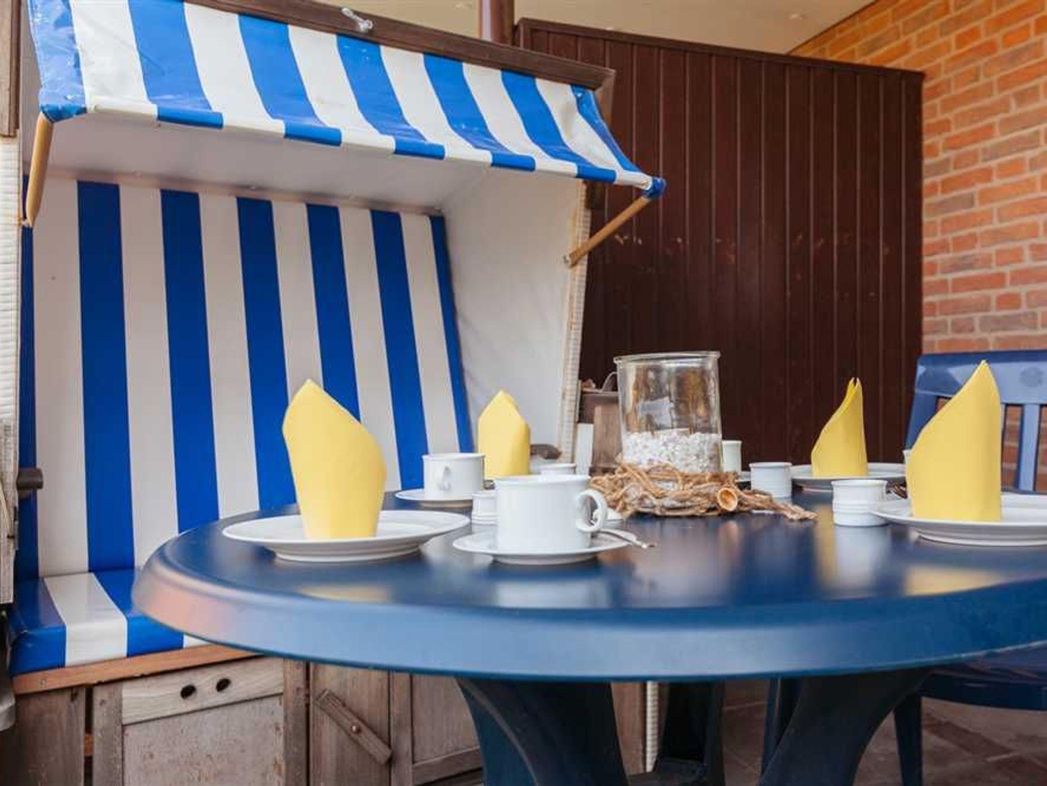 Die Unterkunft verteilt sich über 2 Etagen Die moderne und gemütliche Einrichtung beschert Ihnen vom ersten Moment an das passende Urlaubsgefühl. Im Erdgeschoss befindet sich neben Küche und Wohnzimmer auch eine sehr schöne Terrasse mit Strandkorb und Gartenmöbeln. Das Bad wartet neben Dusche und WC mit einer Waschmaschine auf Sie. Dieses befindet sich, ebenso wie die beiden Schlafzimmer, im Untergeschoss des Hauses.