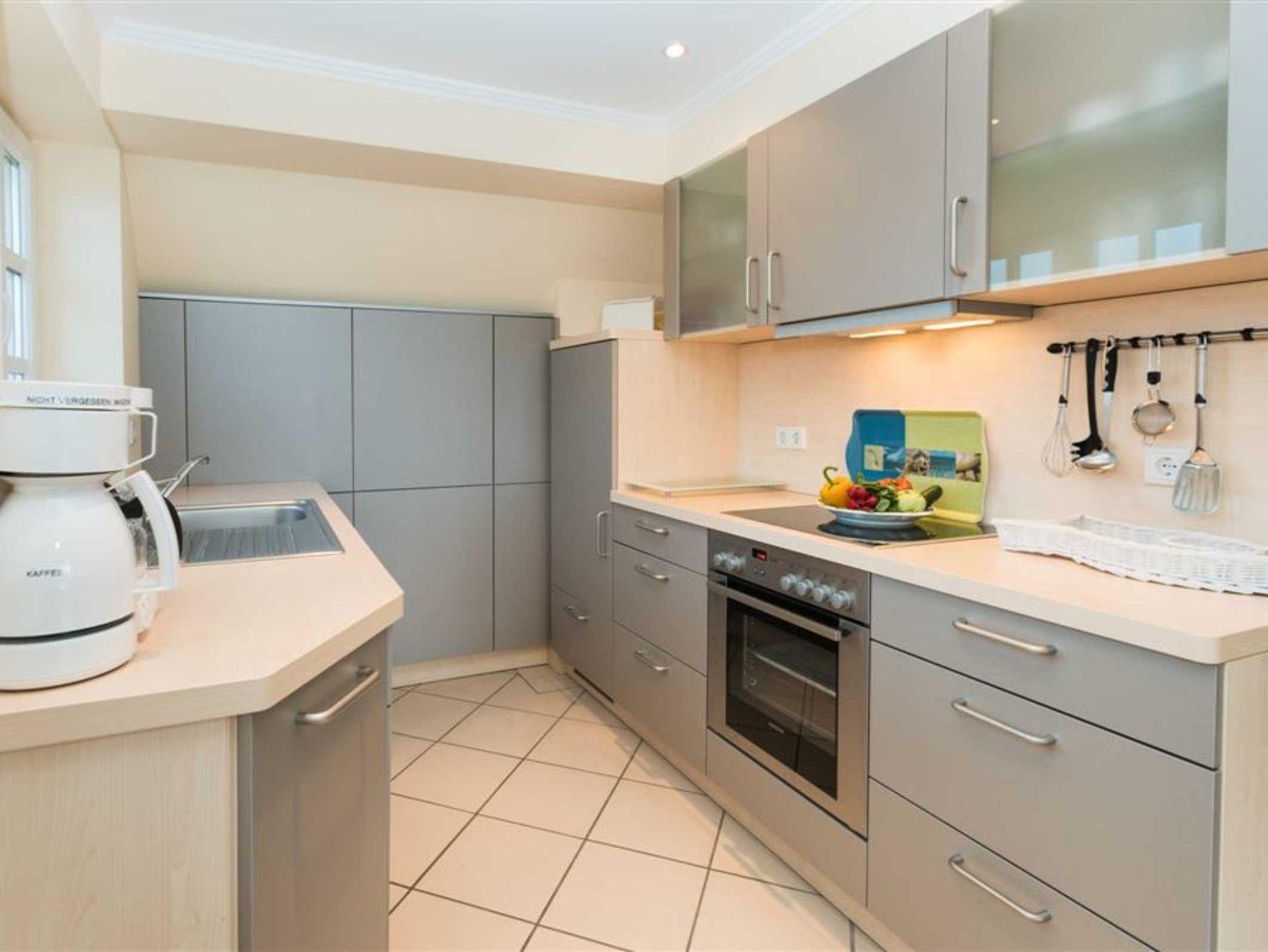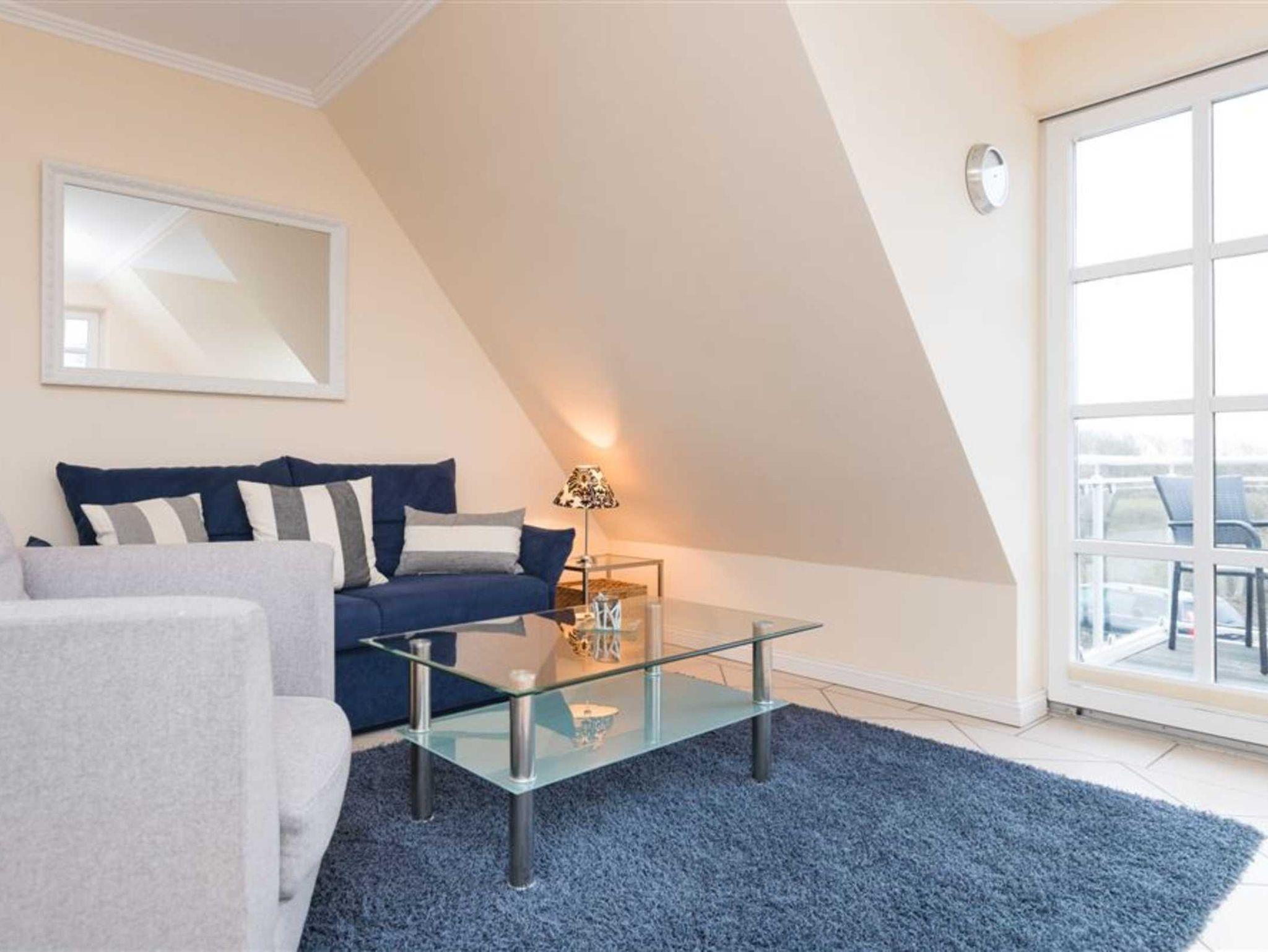 Die Ferienwohnung verteilt sich über das 1. OG /DG und verfügt über ein schönes Wohnzimmer mit einer jungen und frischen Möblierung, einer integrierten, sehr modernen Küche mit Geschirrspüler und Backofen. im 1. OG befindet sich ebenfalls das Wohlfühlduschbad/WC. Im Badezimmer befindet sich zudem eine Waschmaschine. Im Dachgeschoß finden Sie das gemütliche Schlafzimmer mit bequemen Doppelbett und Flachbildfernseher. Der sonnige, möblierte Südbalkon vervollständigt dieses tolle Appartement.