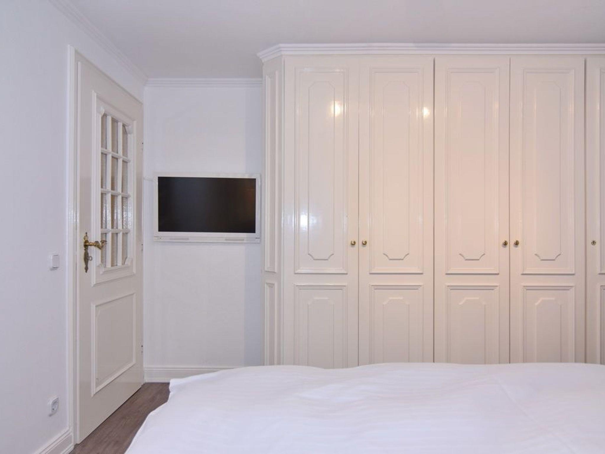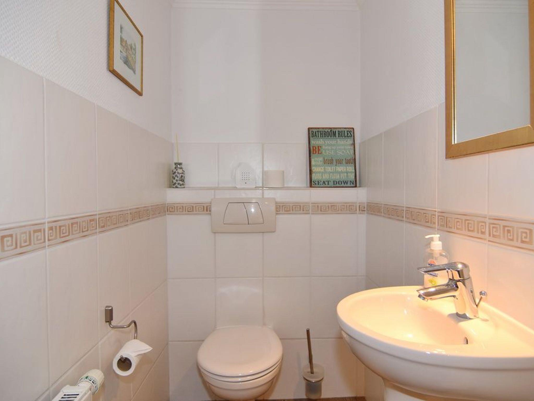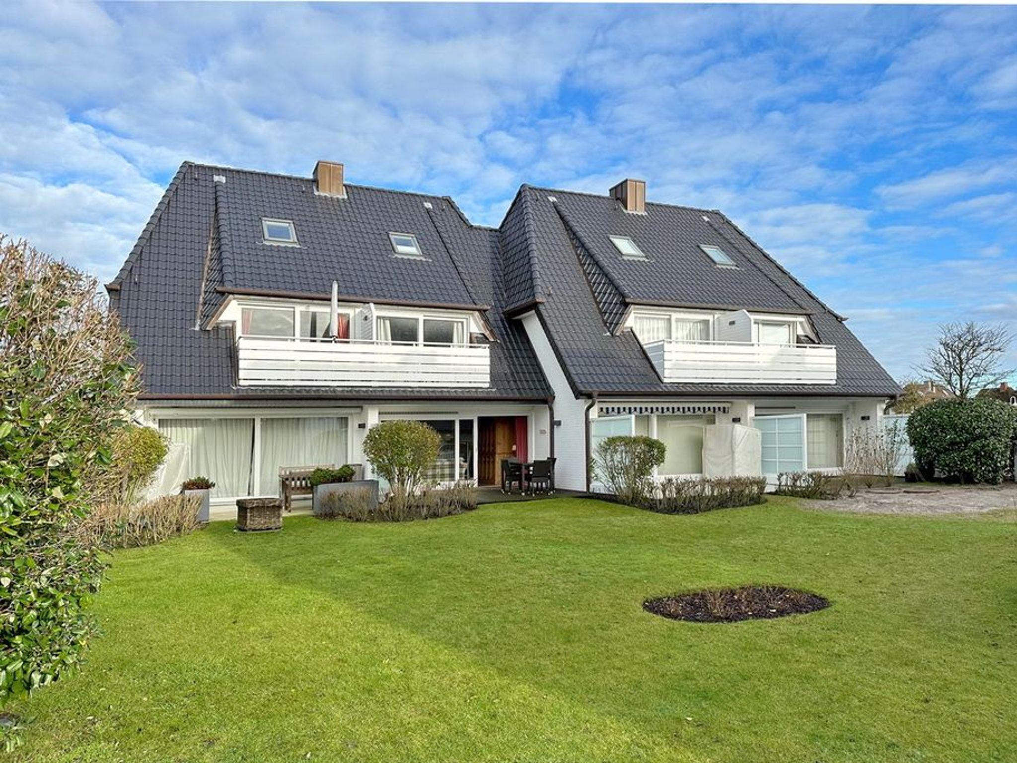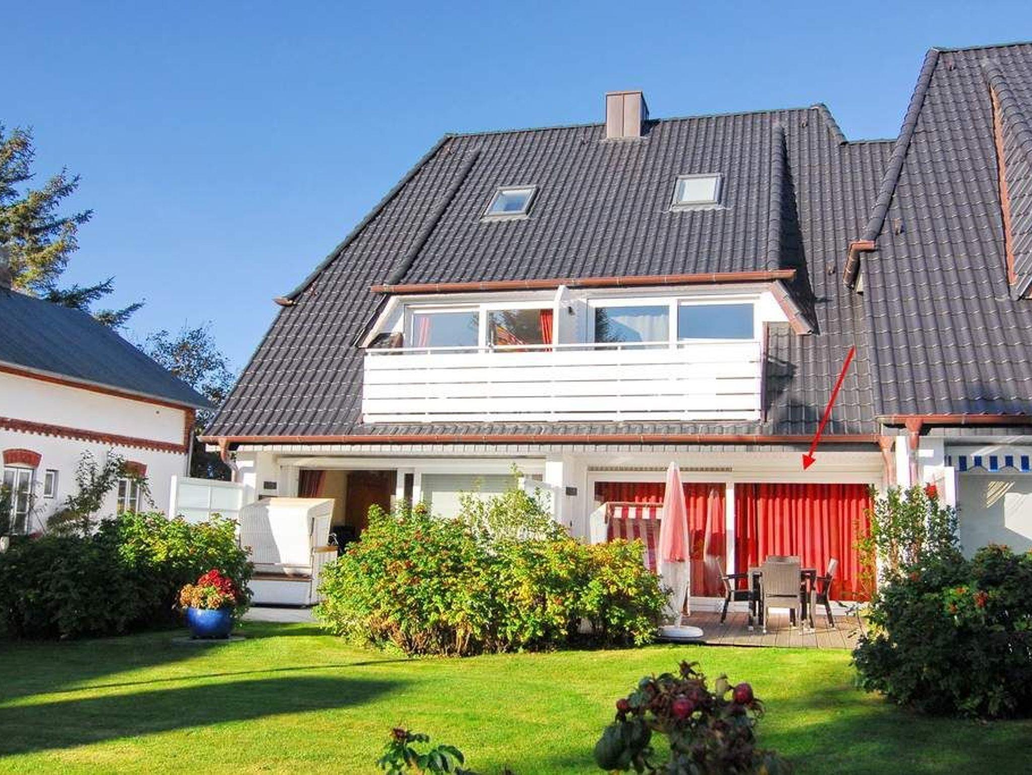 Im Erdgeschoss befindet sich das ca. 30?m² große Wohnzimmer mit zwei Sofas, Esstisch für vier Personen und offener Küche. Die Küche ist zusätzlich mit Mikrowelle, Geschirrspüler, Heißluftfritteuse und Nespresso-Maschine ausgestattet. Ein Smart-TV mit Bose Soundbar, DVD-Player, Stereoanlage mit Bluetooth sowie WLAN mit 175?Mbit/s stehen zur Verfügung. Die nach Süden ausgerichtete Terrasse ist vollständig möbliert und bietet einen Esstisch mit vier Stühlen, einen Strandkorb für zwei Personen sowie einen Sonnenschirm. Im Außenbereich stehen mehrere Fahrradständer zur Verfügung. Auf derselben Etage liegt ein kleines Schlafzimmer mit ausziehbarem Doppelbett und Kleiderschrank. Alle Räume verfügen über Verdunkelungsmöglichkeiten. Über eine Treppe gelangt man ins Untergeschoss mit einem großen Schlafzimmer (Doppelbett, Einbauschrank, TV), einem Duschbad und separatem WC. Im gesamten Untergeschoss sorgt eine Fußbodenheizung für angenehmen Komfort. Ein kostenfreier Pkw-Stellplatz (Nr.?5) befindet sich direkt am Haus. Haustiere sind nicht erlaubt. Eine gemeinschaftliche Waschküche mit Waschmaschine und Trockner steht gegen Gebühr zur Verfügung.