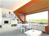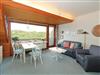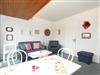 Ein gemütlicher Einrichtungsstiel in maritimen Farben erwartet Sie. Wohnzimmer mit bequemer Sitzgarnitur und Esstisch. Flachbildschirm und Radio.