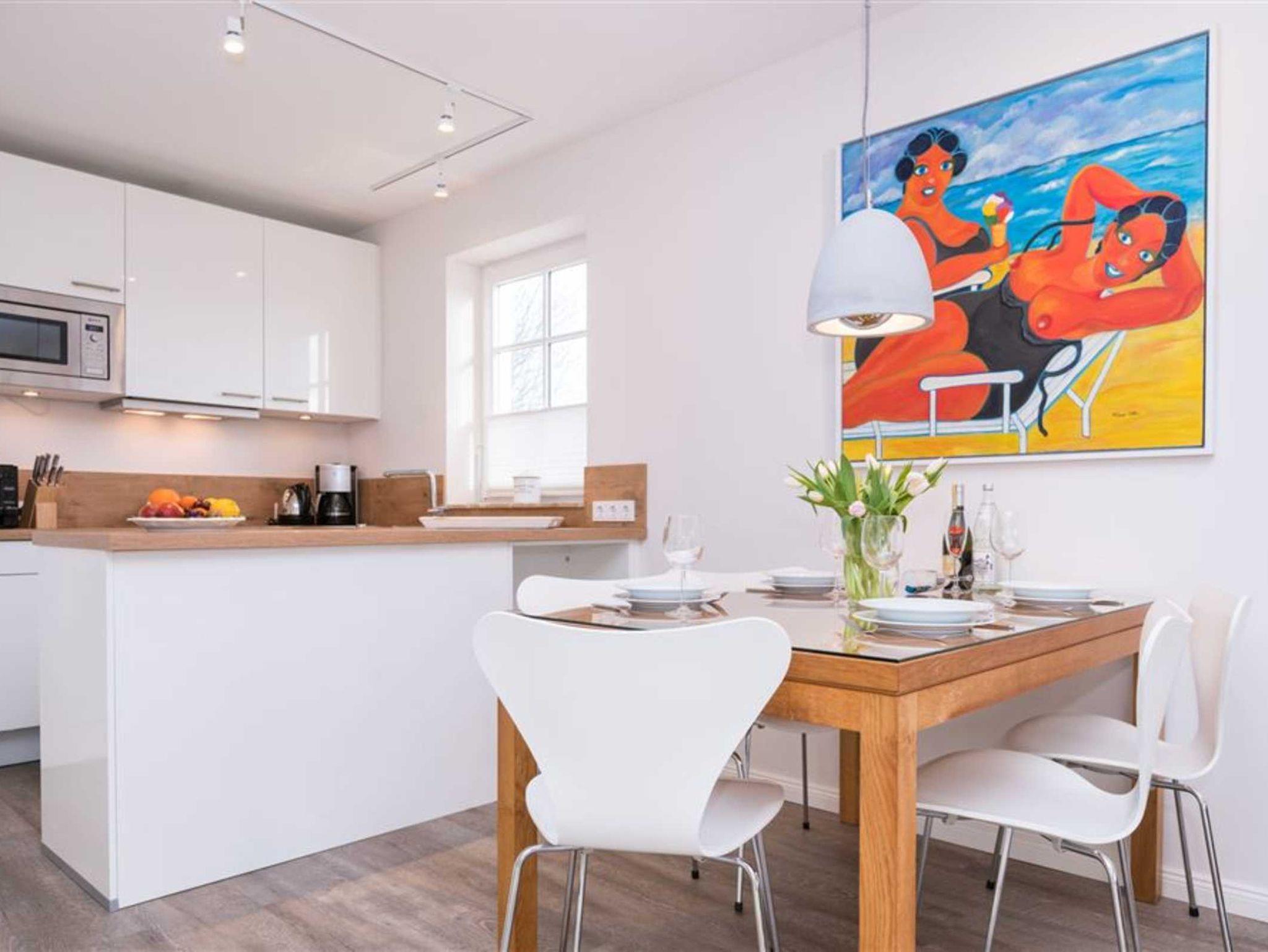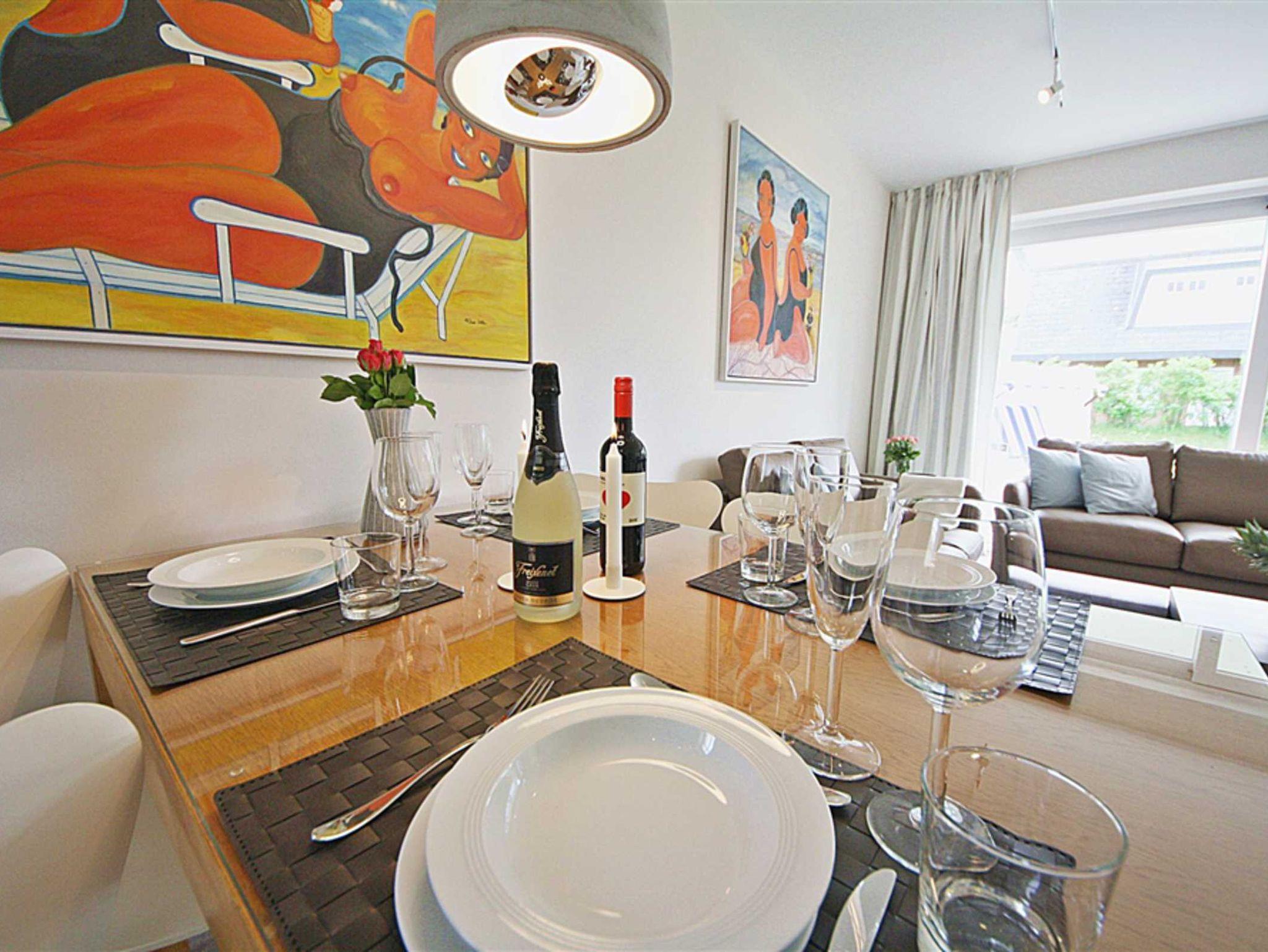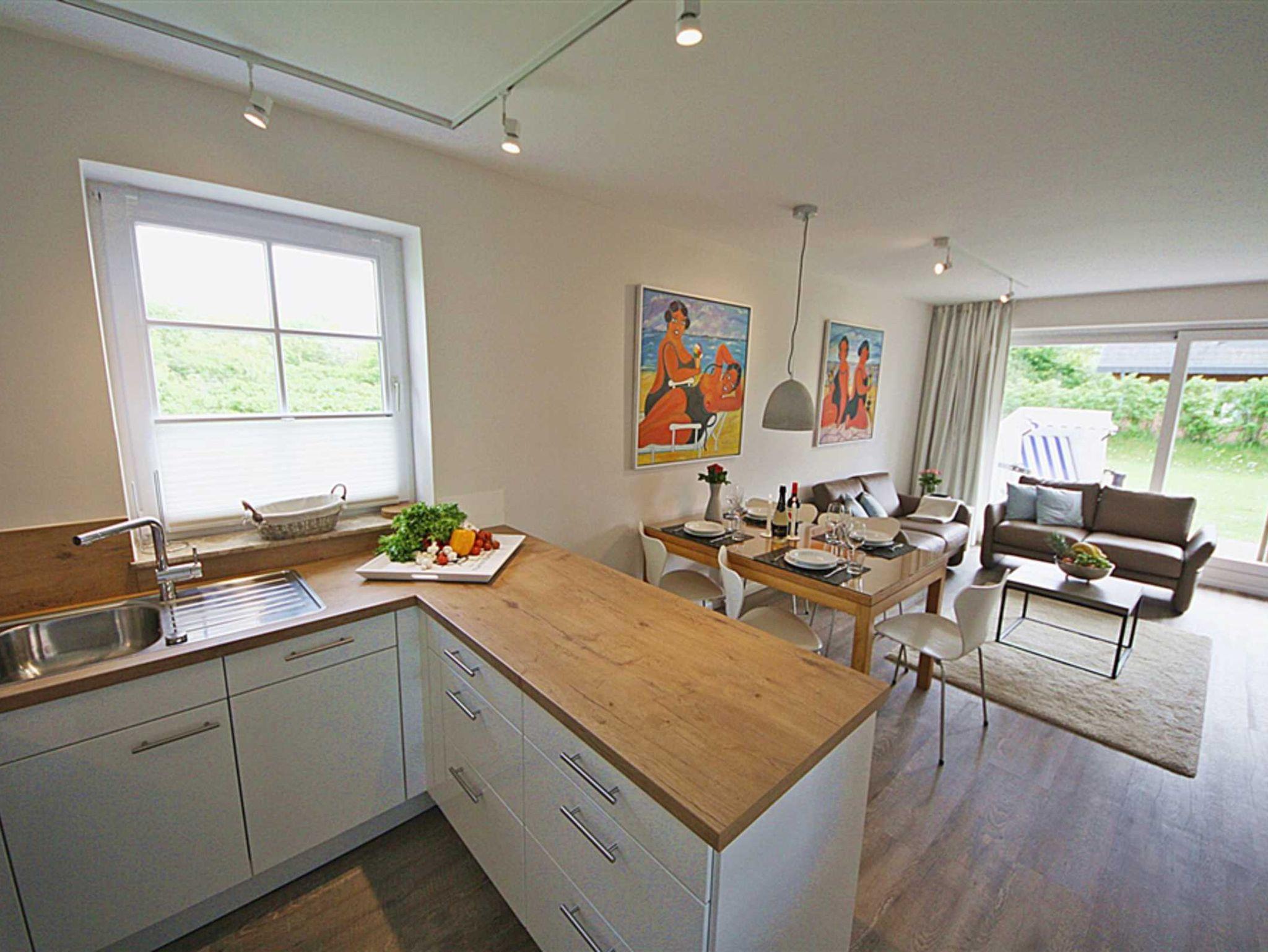 Diese wunderschöne, sonnendurchflutete Wohnung verteilt sich über 2 Etagen und lädt zum entspannten Urlauben ein. Im großzügigen und freundlich gestalteten Wohnraum werden Sie sich wohlfühlen. Die offene Küche lässt das Herz der Hobbyköche unter Ihnen höher schlagen. Behaglich relaxen können Sie in den zwei gemütlichen Schlafzimmern im Untergeschoss. Im EG befindet sich ein Gäste WC, im Untergeschoss erwartet Sie Ihr neues Duschbad. Die nach Süden ausgerichtete Terrasse mit anschließendem großen Garten lädt mit Strandkorb und Gartenmöbeln zum Verweilen ein.