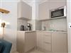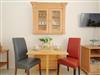 Gemütliches, helles Wohn-/Esszimmer mit offener Pantryküche mit Spülmaschine, Balkon in Süd-West-Ausrichtung mit Gartenmöbeln, 1 Schlafzimmer mit Doppelbett im Obergeschoß. modernes Duschbad.
