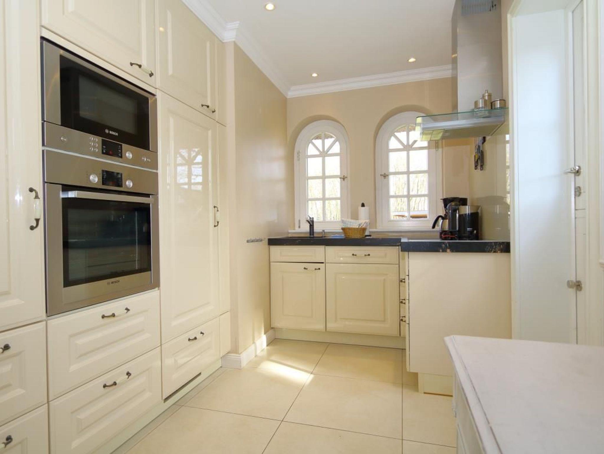 Mikrowelle, Backofen, Kühlschrank, Geschirrspüler, Gefrierfach, Wasserkocher, Kaffeemaschine, Toaster, Ceran-Kochfeld, Geschirr, Küchenmaschine