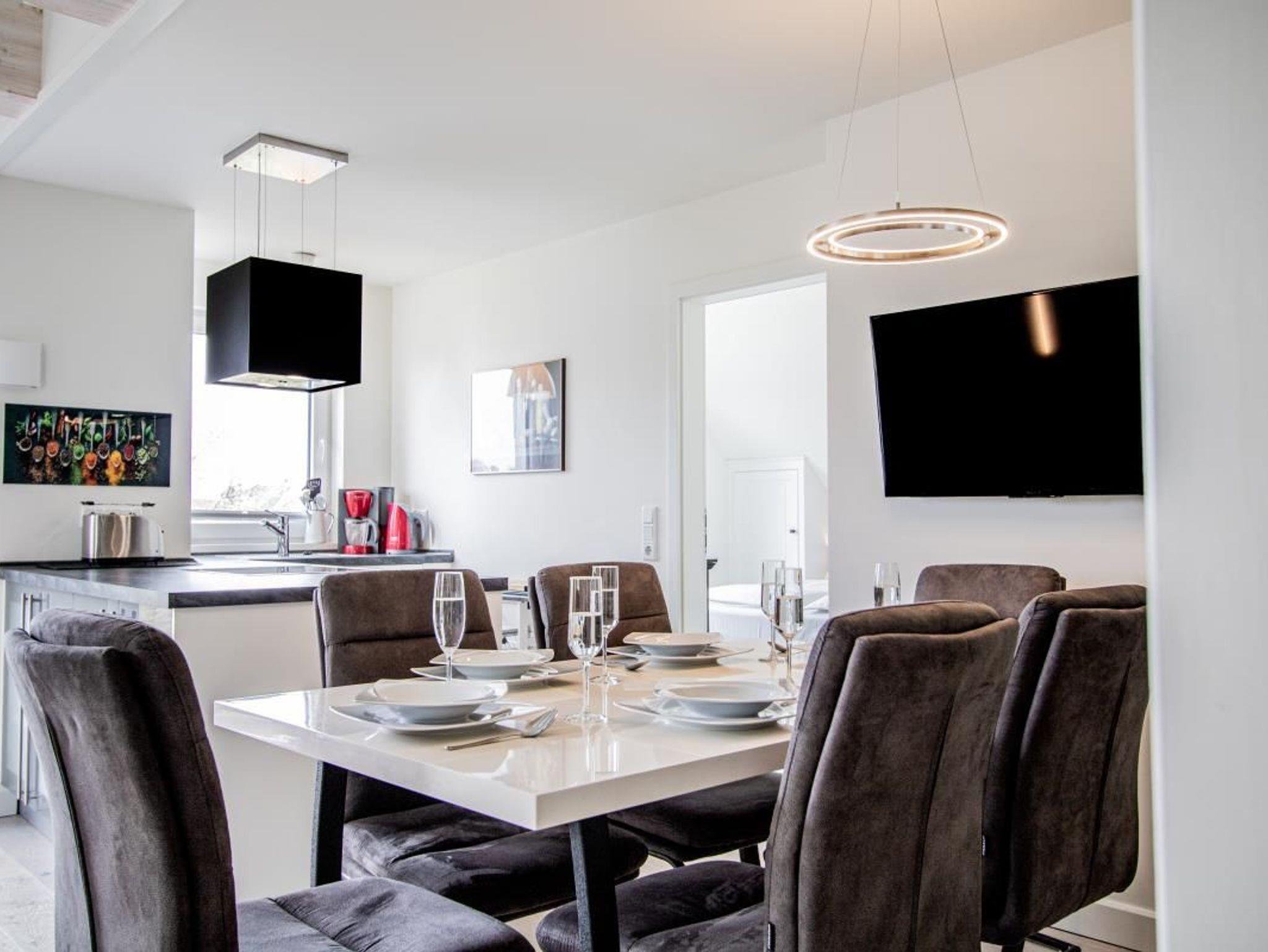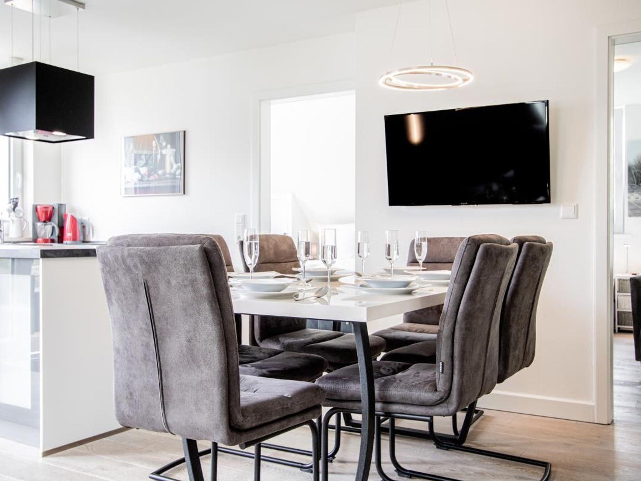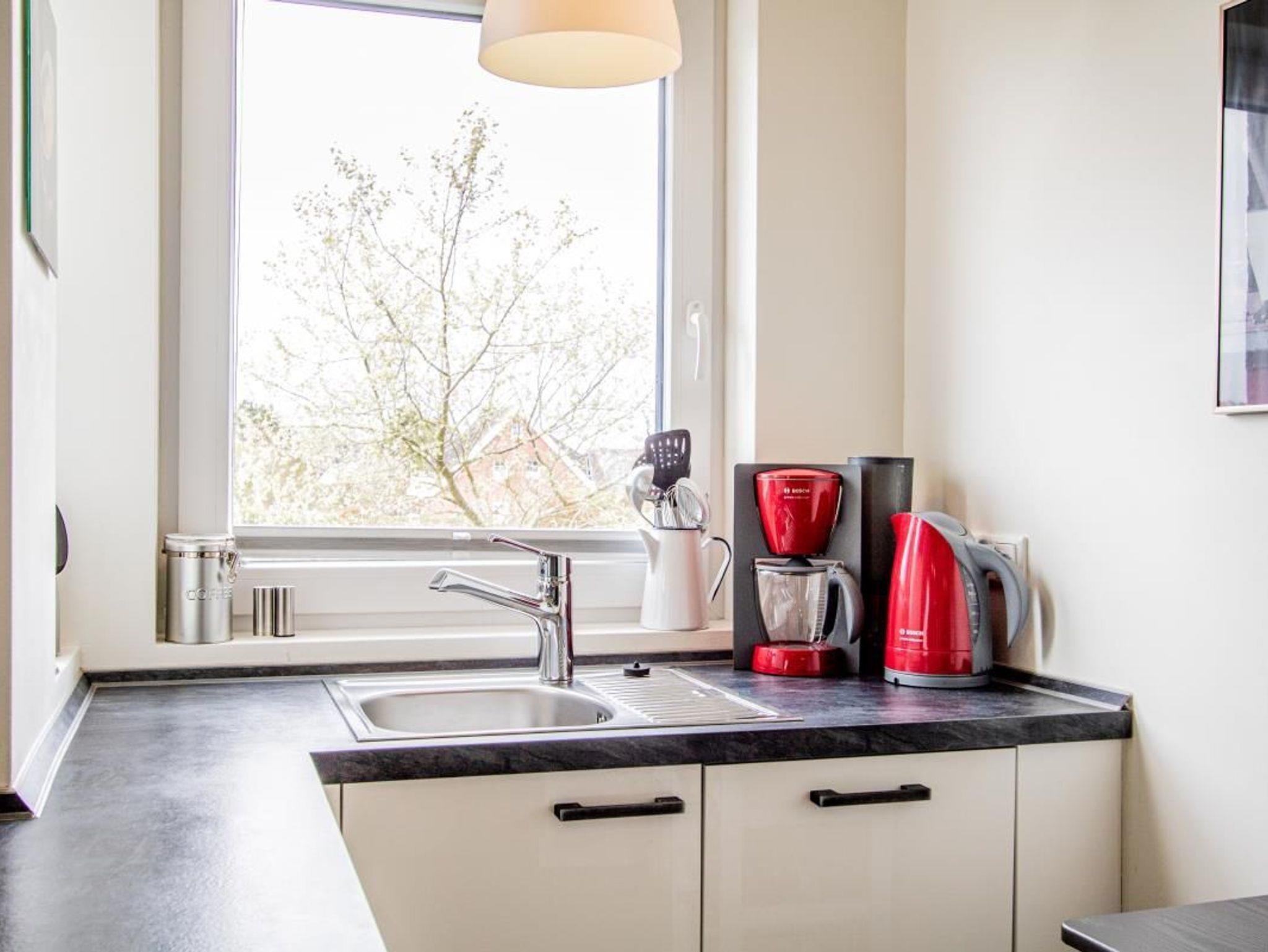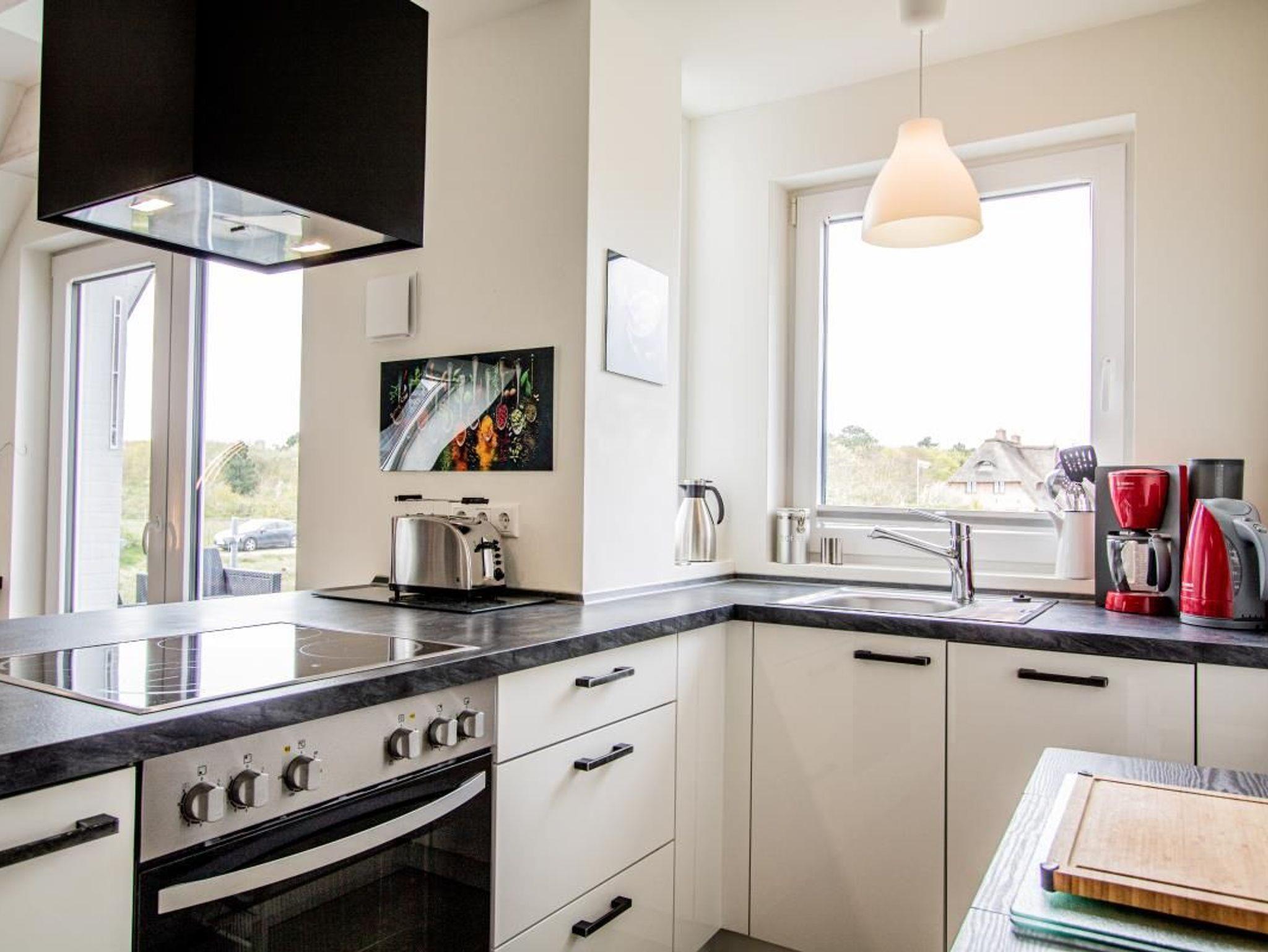Mikrowelle, Backofen, Kühlschrank, Geschirrspüler, Gefrierfach, Wasserkocher, Kaffeemaschine, Toaster, Küchenzeile, Ofen, Induktionskochfeld, Geschirr, Fußbodenheizung, Esstisch,