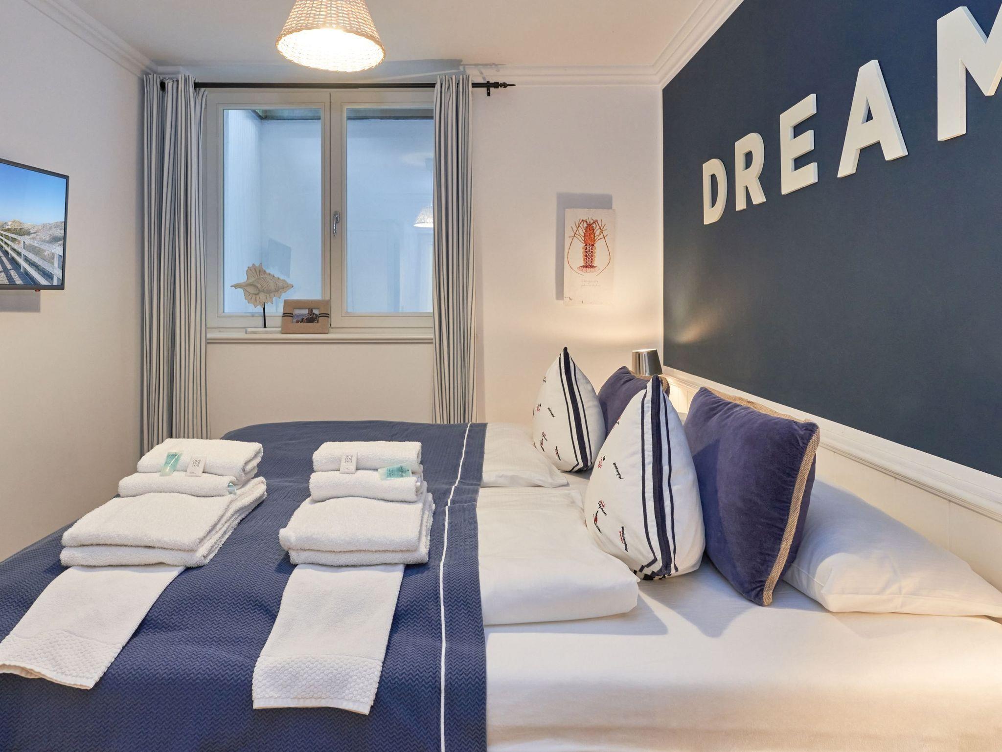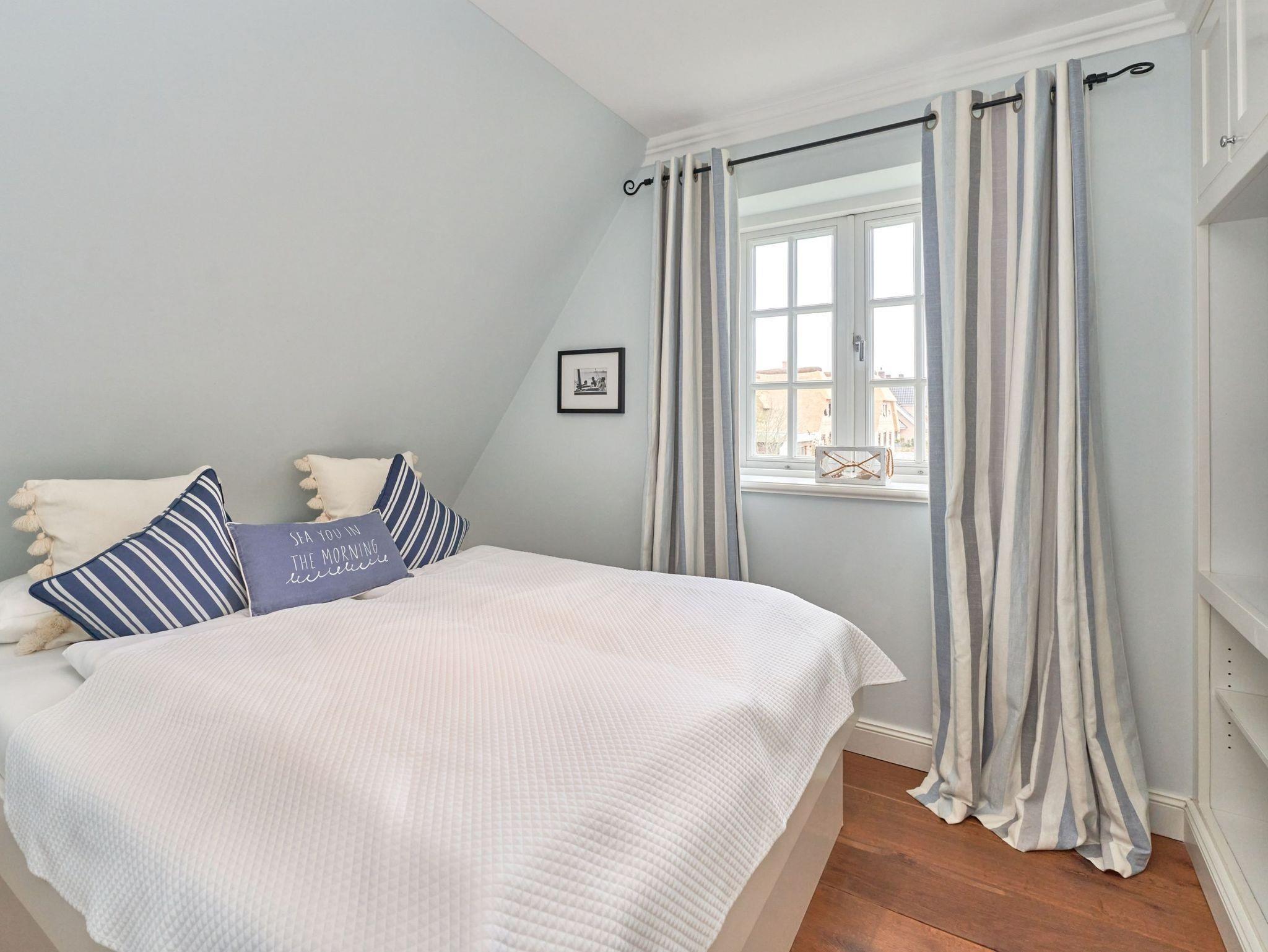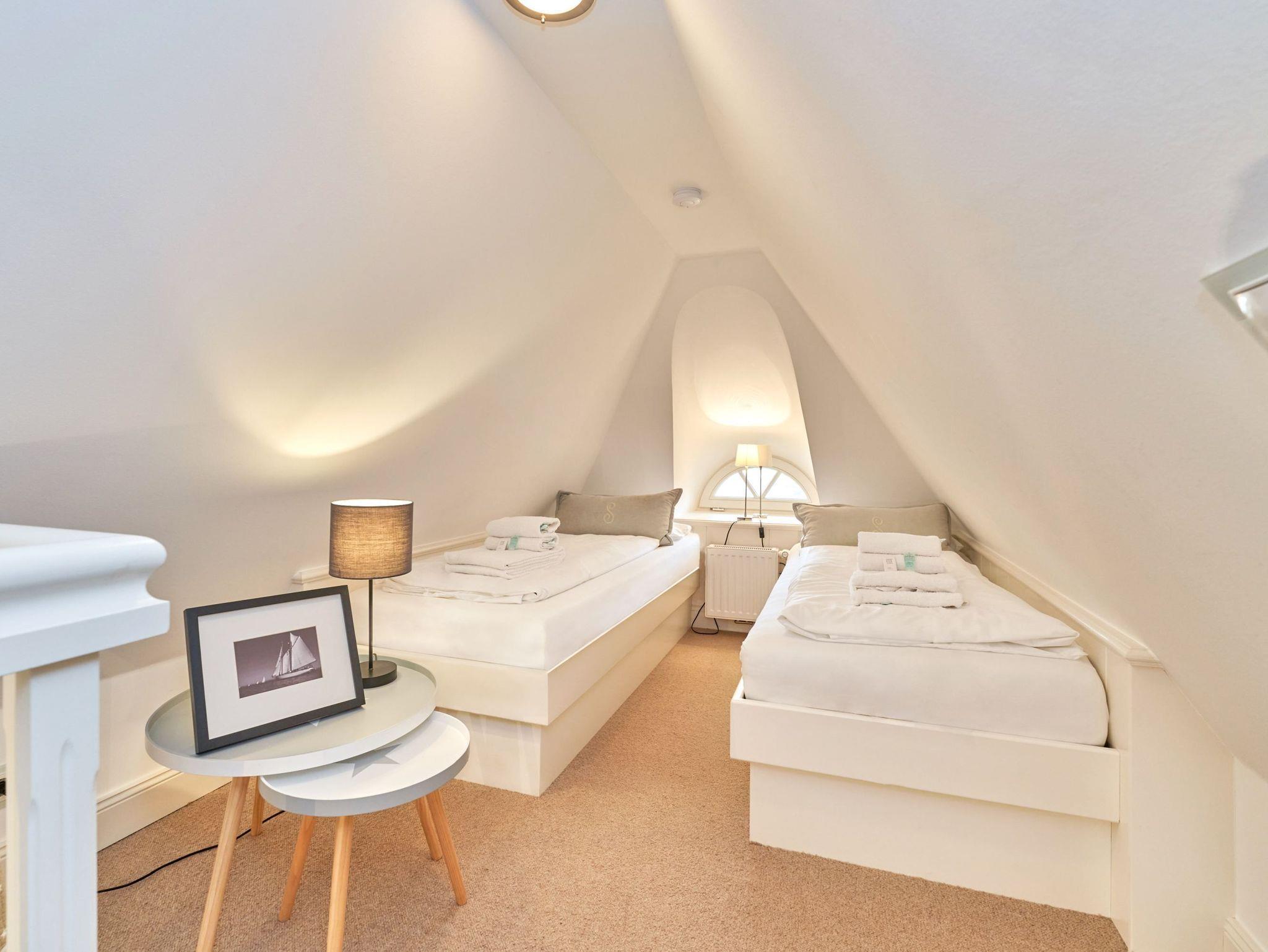 Exklusive Doppelhaushälfte unter Reet im Hampton Style für bis zu 8 Personen. Außen Sylt , innen Hamptons. Über einen kleinen Vorflur mit Garderobe gelangt man in das großzügige Wohnzimmer mit seiner offenen Küche mit den angrenzenden Essplatz für gemütliche Abende. Auffällig und besonders neben der hochwertigen Ausstattung ist das Beleuchtungskonzept sowie die Holzeinbauten mit IPhone - Ladestationen. Im Obergeschoss verfügt über zwei Schlafzimmer und ein Badezimmer mit bodengleicher Dusche. Der ausgebaute Spitzboden verfügt über zwei weitere Einzelbetten. Im Untergeschoss befindet ein Schlafzimmer mit Doppelbett und Schrankeinbauten sowie ein weiteres Wohn und Schlafzimmer. Eine Sauna mit großzügigen Bad ist ebenfalls vorhanden. Der Technik und Hauswirtschafsraum verfügt über eine Waschmaschine und Trockner.