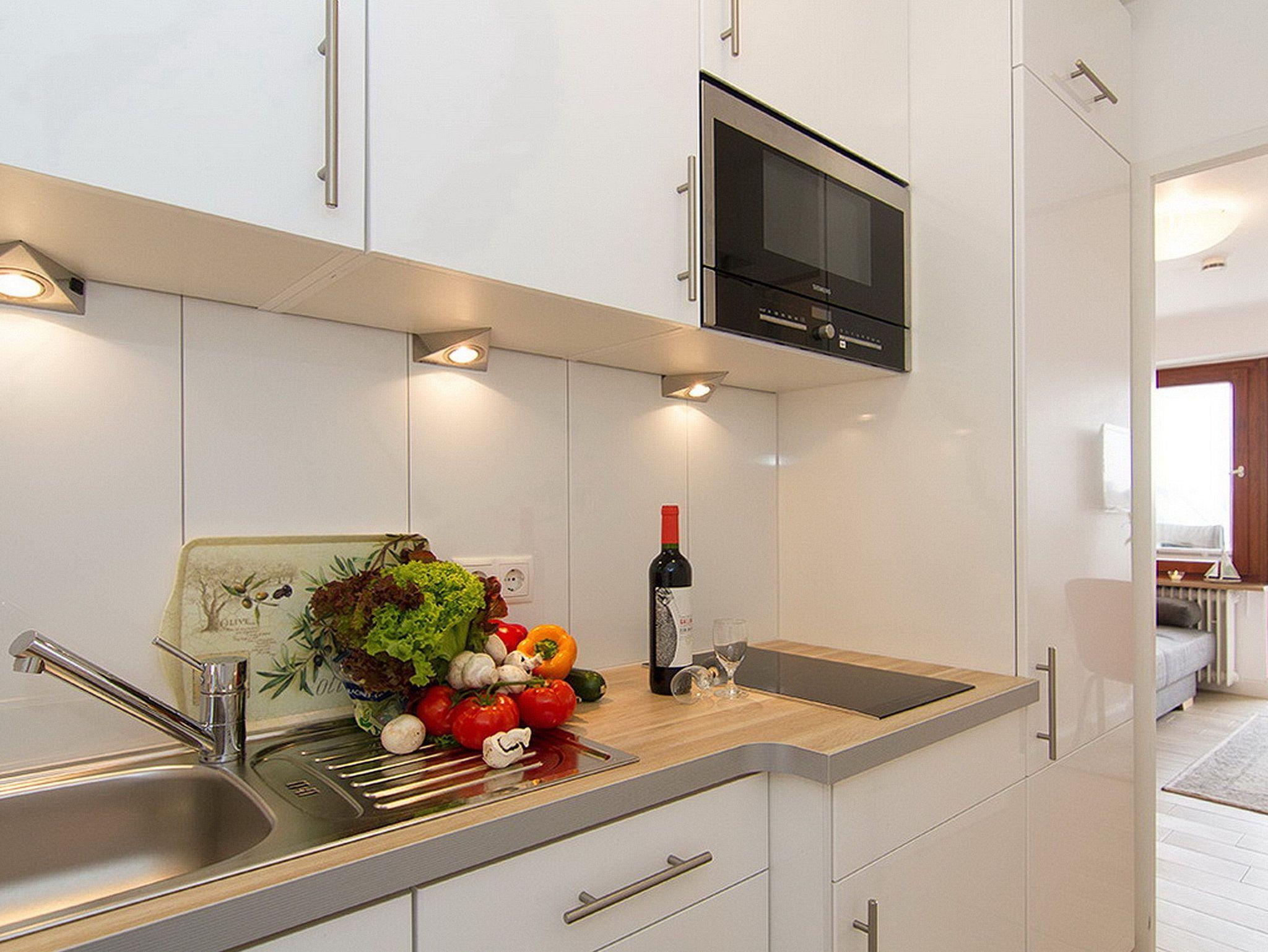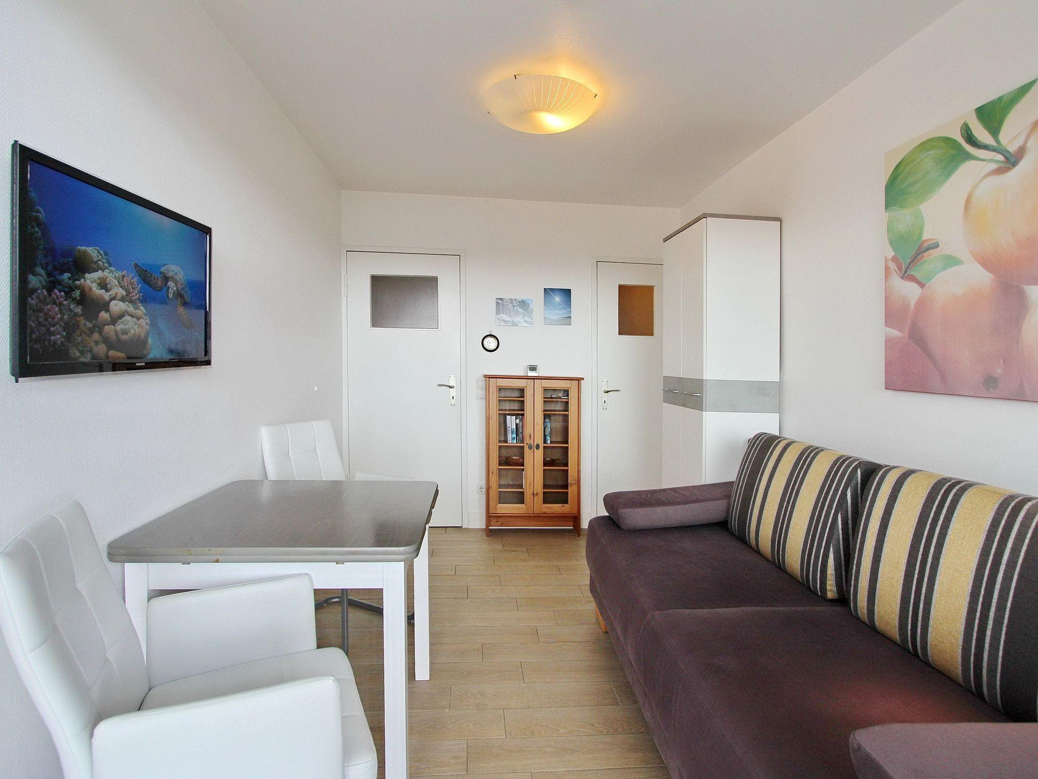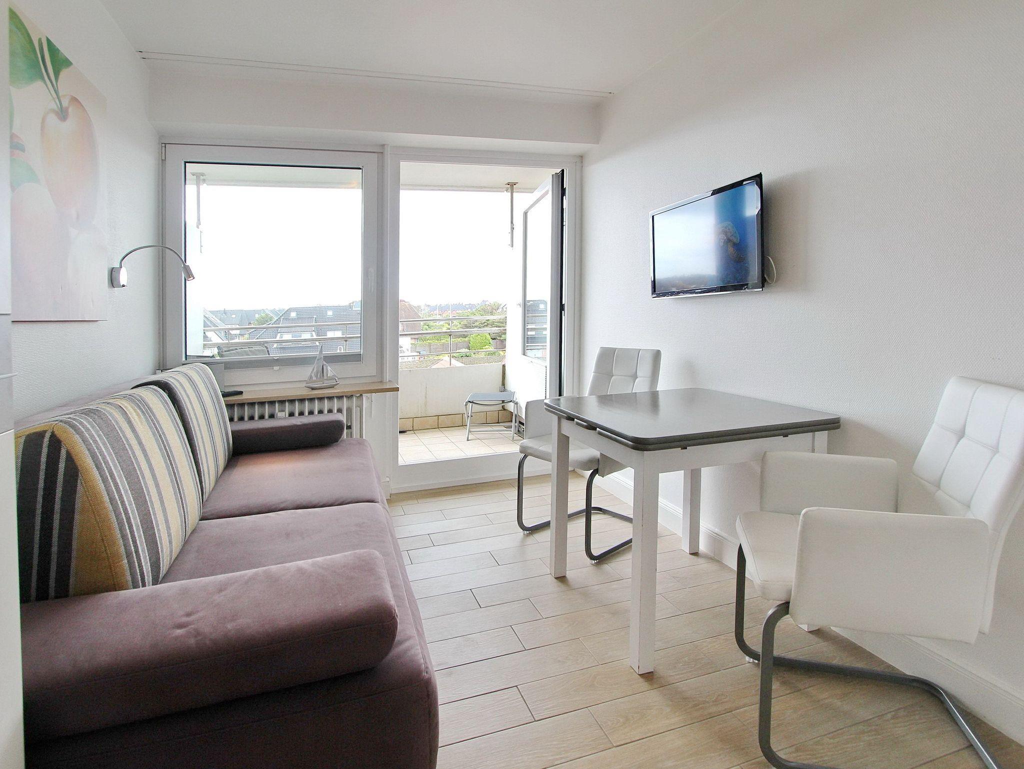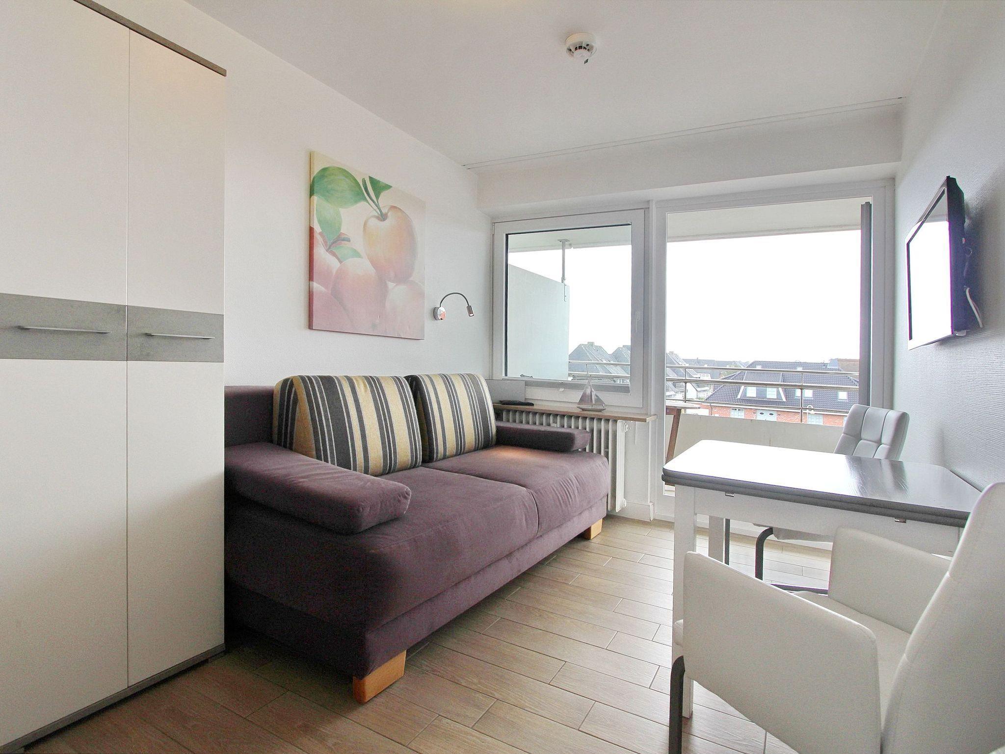 Diese hell und freundlich eingerichtete 1 Zimmer Wohnung in der 2. Etage im Dünenhof zum Kronprinzen zur Landseite liegt nur wenige Schritte vom Strand und Meer entfernt. Der liebevoll, neu renovierte Wohn-/Schlafraum mit vorgelagertem Ostbalkon verfügt über eine bequeme Schlafcouch mit Lattenrost. Am gemütlichen Essplatz für 2 Personen können sie die täglichen Mahlzeiten einnehmen oder auch einen Spieleabend verbringen. Das Badezimmer ist mit Dusche und beheiztem Handtuchtrockner ausgestattet. Die moderne Einbauküche im Flur verfügt über eine Mikrowelle. Ein Flachbildfernseher rundet das Angebot dieser kleinen aber feinen Nichtraucherwohnung ab. Ein freier WLAN Hotspot (Duenenhof zum Kronprinzen ? Passwort im Appartemet - ohne Gewähr) steht ihnen kostenfrei zur Verfügung. Wohnungsgröße: ca. 23 m².