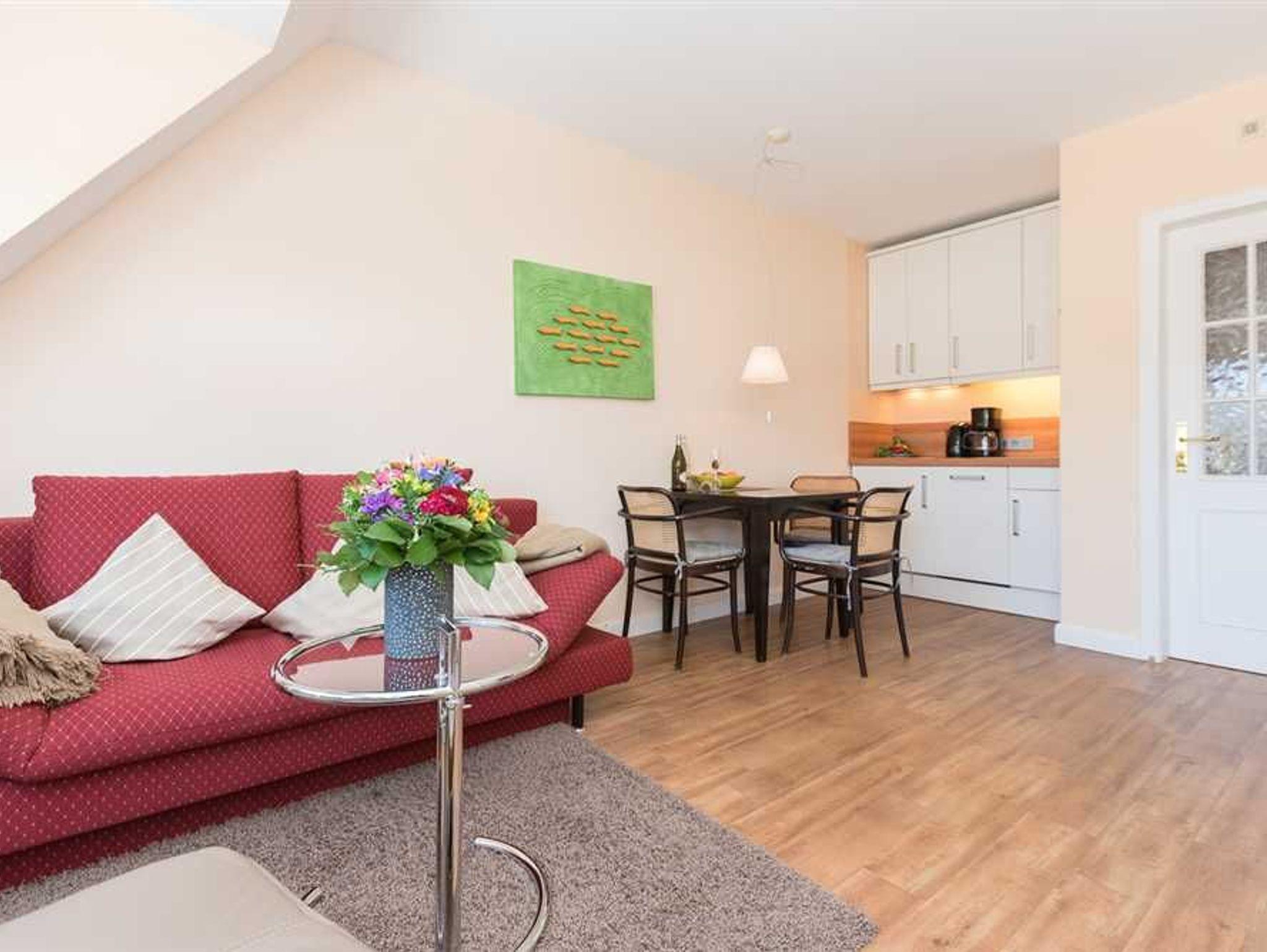 Im Zentrum von Wenningstedt-Braderup, nur wenige Minuten vom Strand entfernt, liegt dieses Kleinod. Mittendrin statt nur dabei. In dieser Wohnung werden Sie erholsame Tage unweit des Wenningstedter Dorflebens verbringen. Die 2 Zimmer Wohnung erstreckt sich über 2 Etagen, 1. OG & DG. Im 1. Obergeschoss ist die offene Küchenzeile sehr gut in den Wohn-/Essbereich integriert. Vom Wohnbereich gelangen Sie auf den nach Westen liegenden Balkon. Das moderne Duschbad ist ebenso auf dieser Ebene untergebracht.